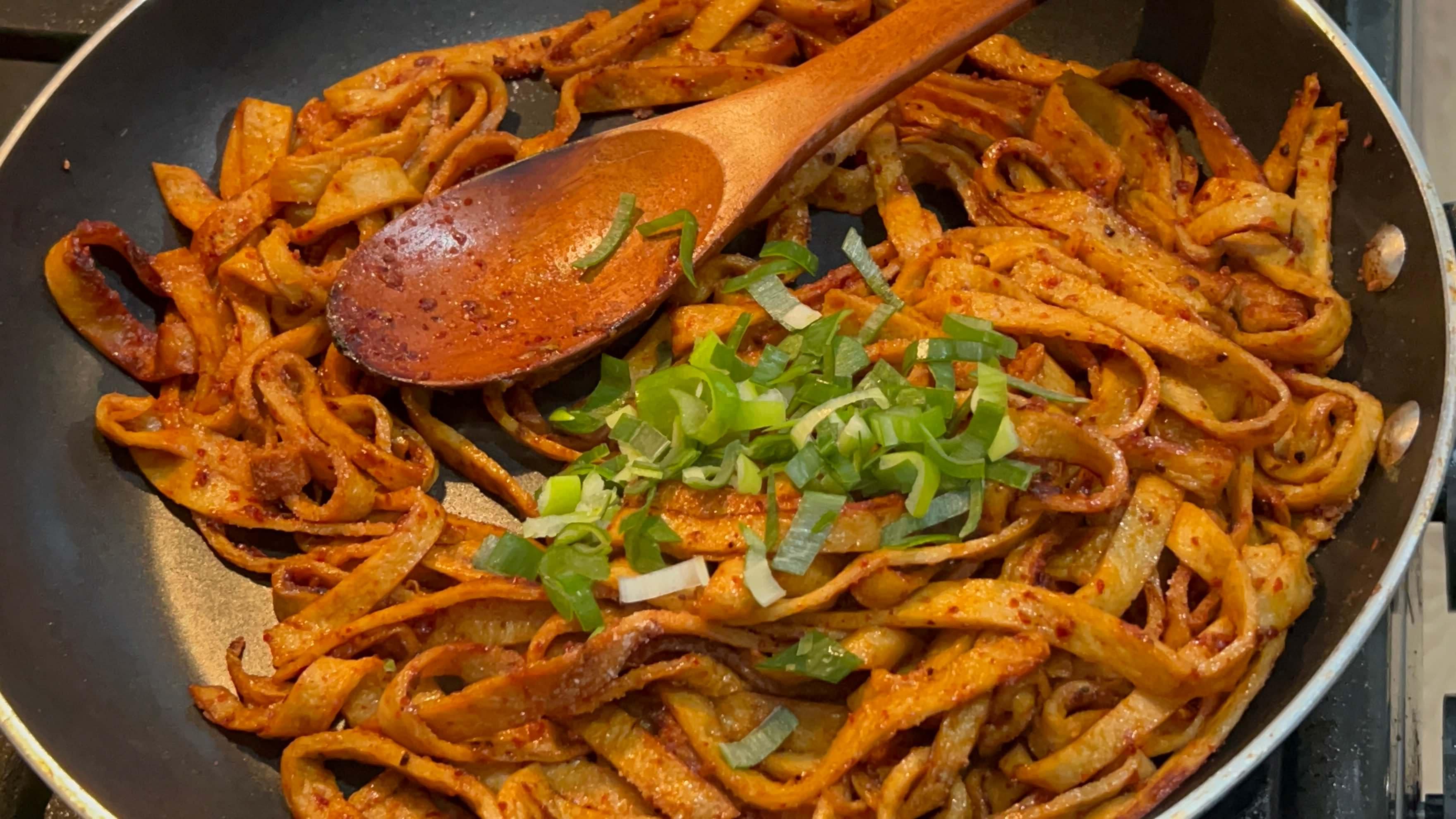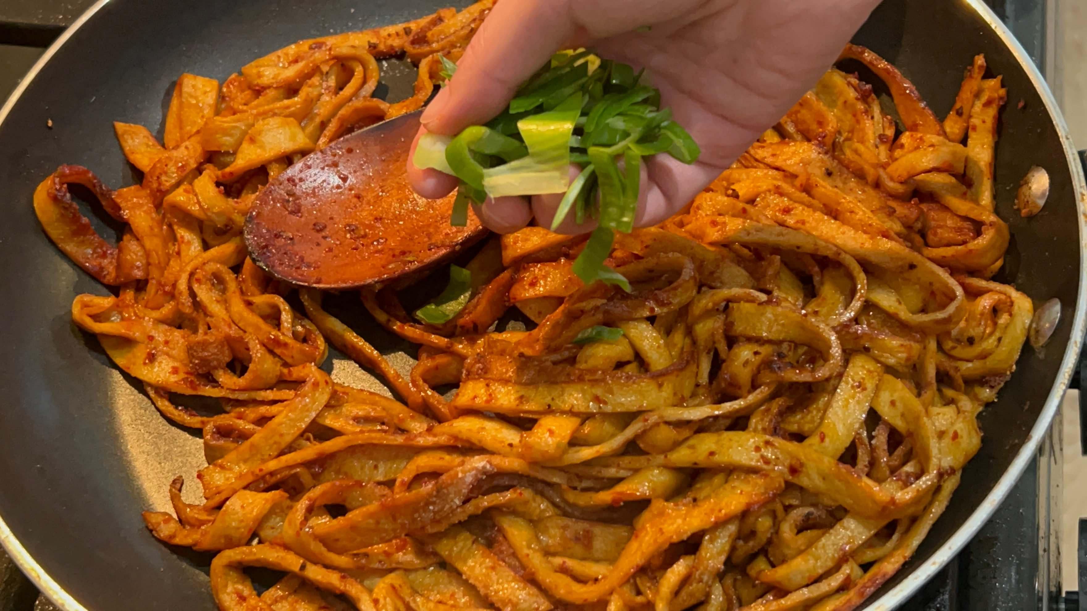 9. 마지막으로 대파를 종종 썰어서 같이 볶아줍니다.