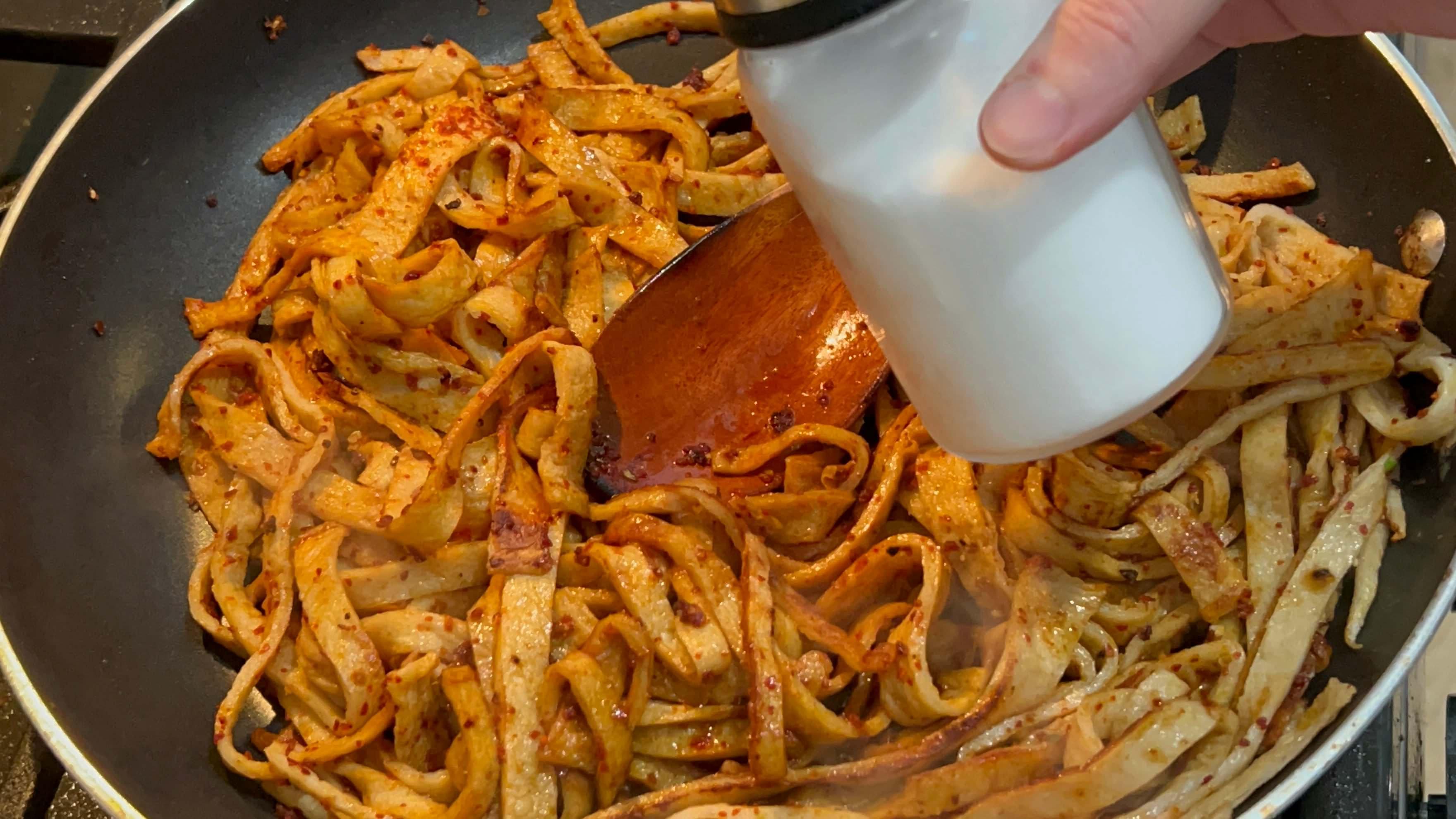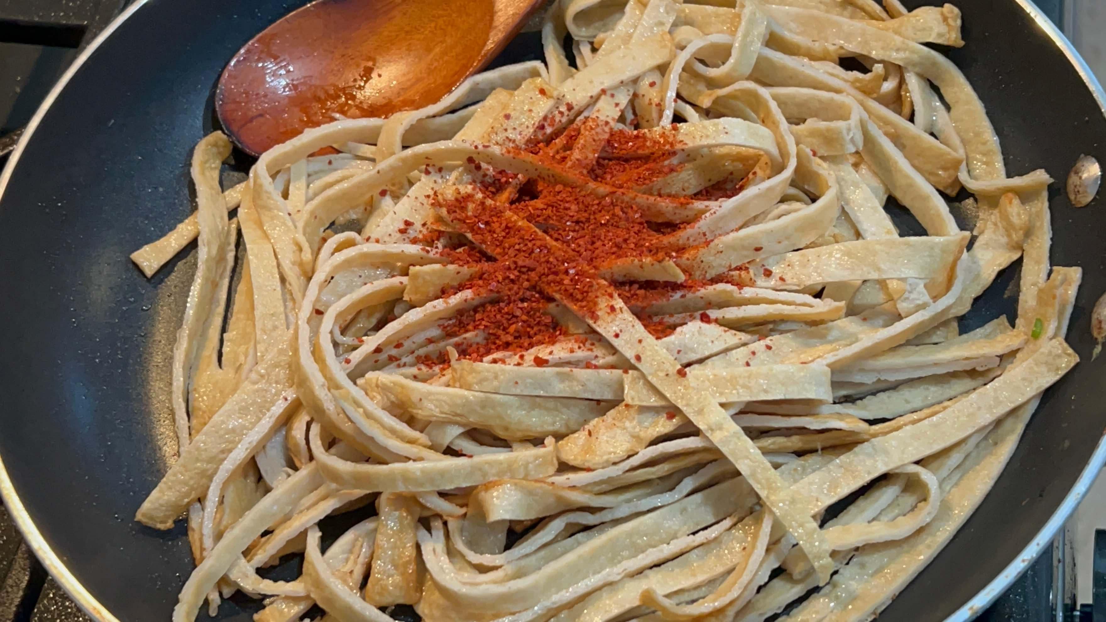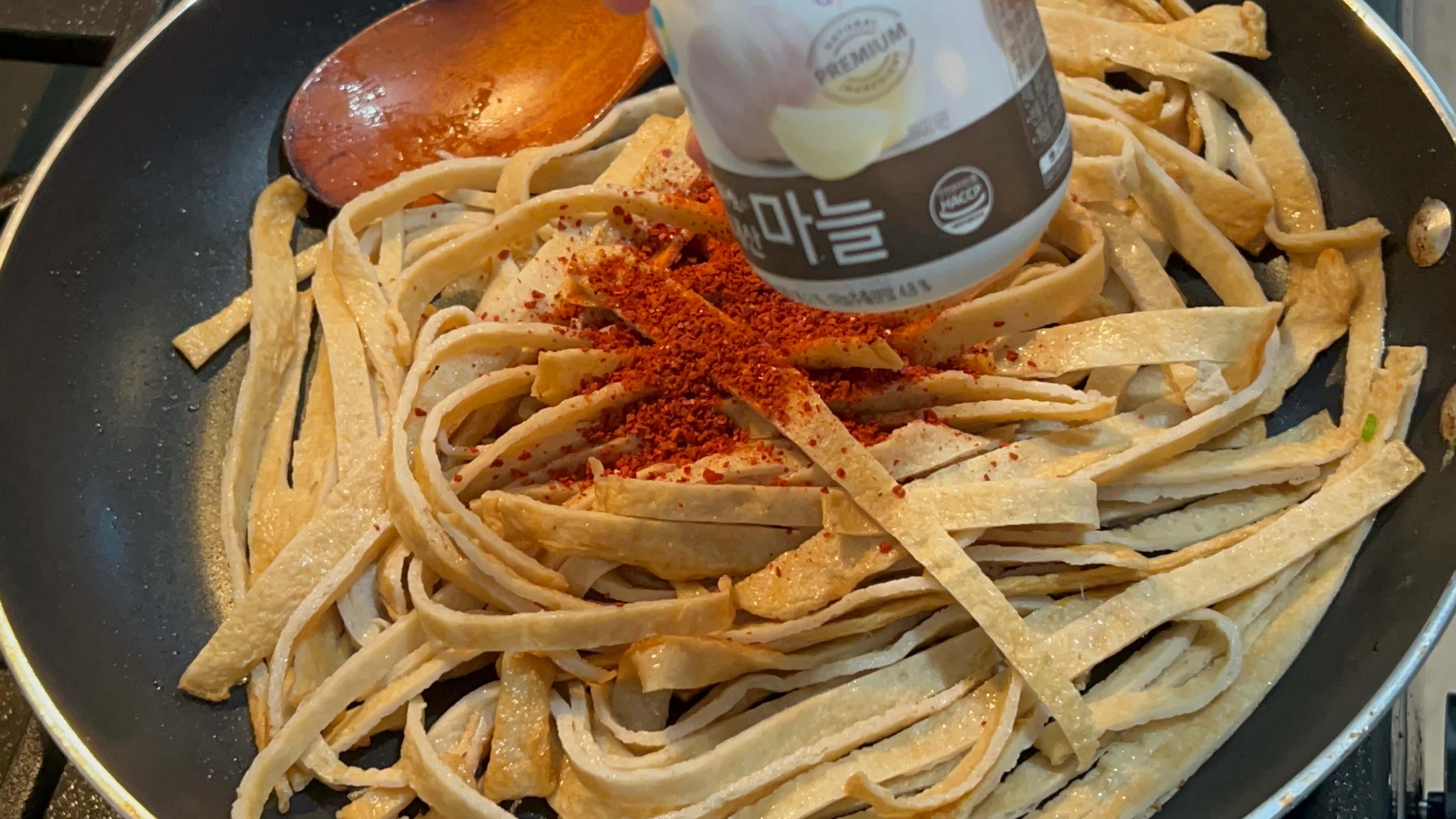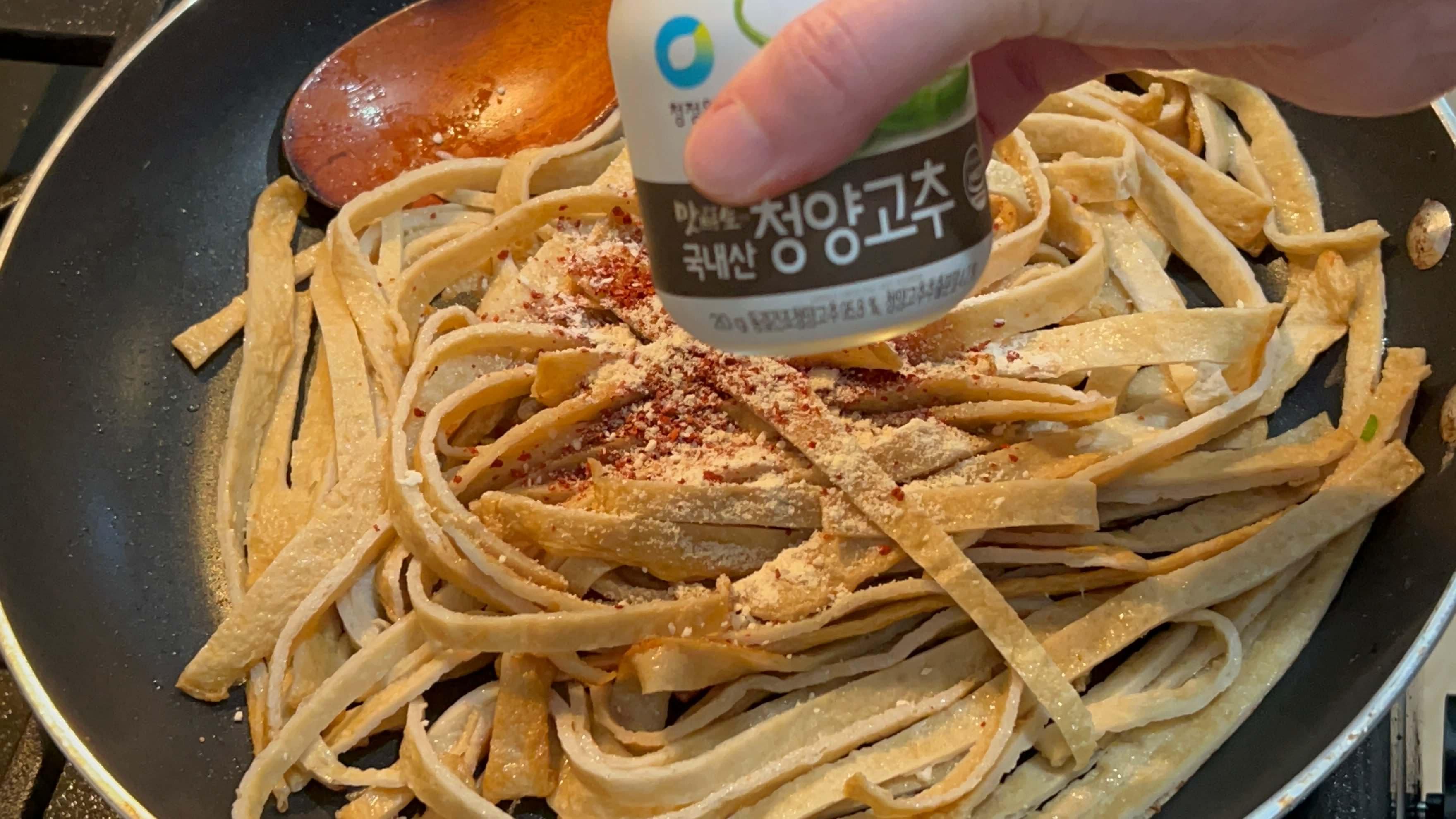 4. 매운 어묵의 포인트~! 고춧가루를 뿌려줍니다.