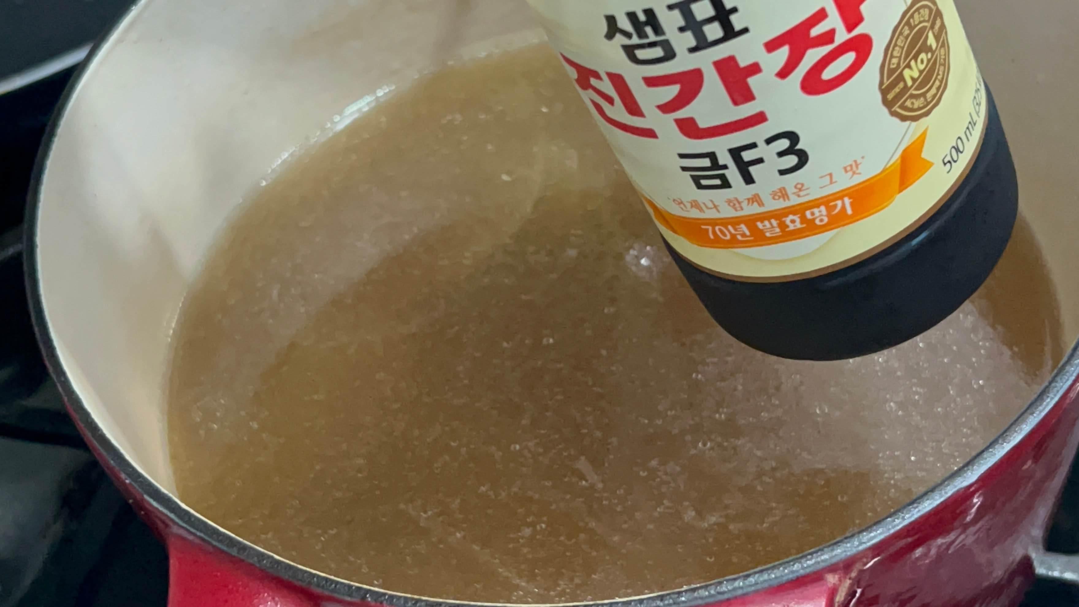 3. 진간장을 넣어 간을 맞추어 줍니다.