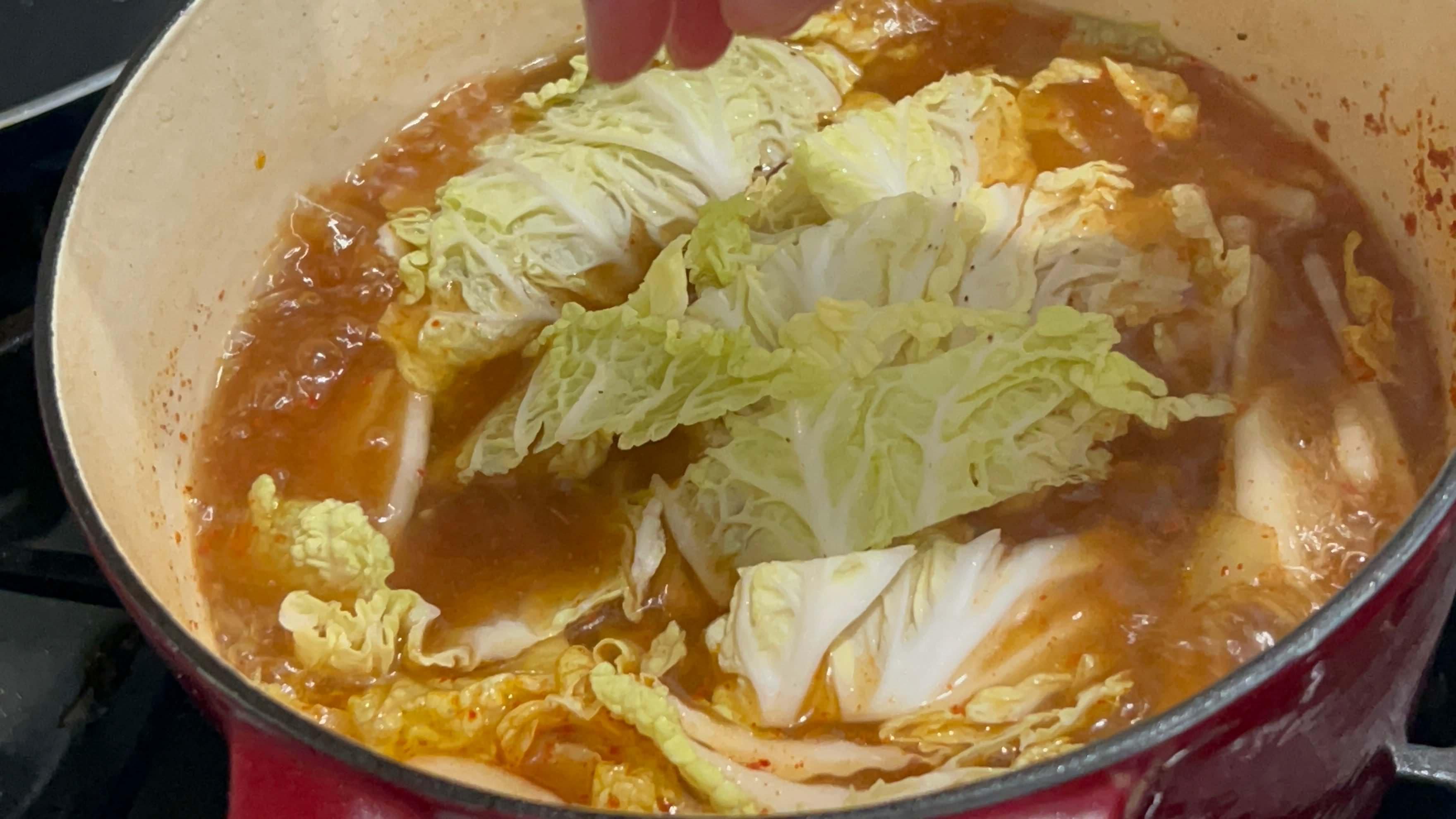7. 배추도 넣어 푹 끓여줍니다.