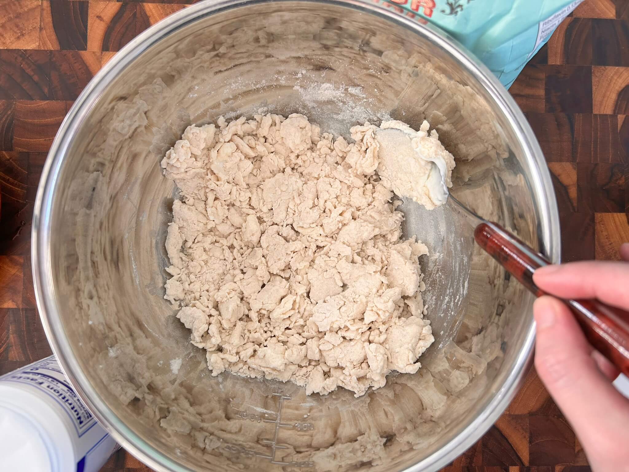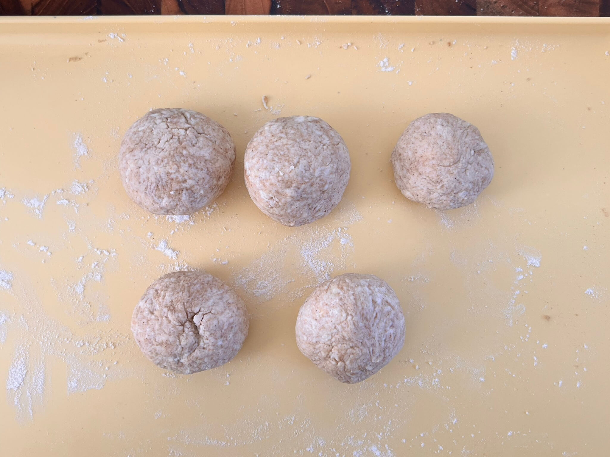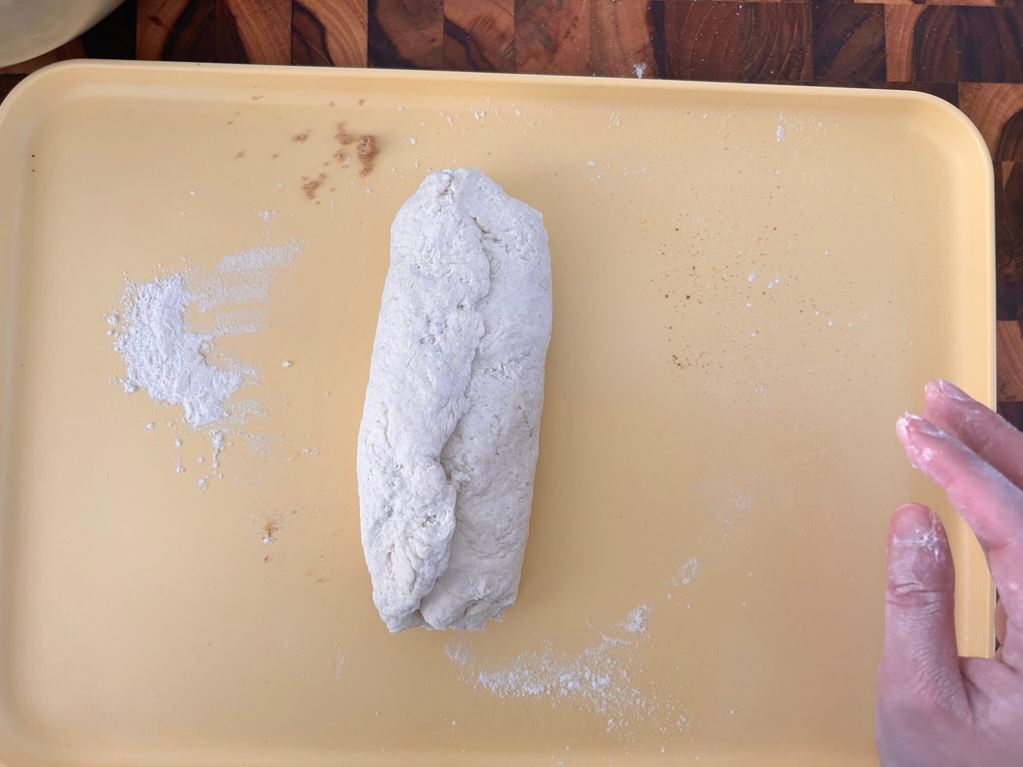 5. 시나몬가루와 황설탕이 섞이도록 반죽을 한두 번 정도 반죽해 줍니다.