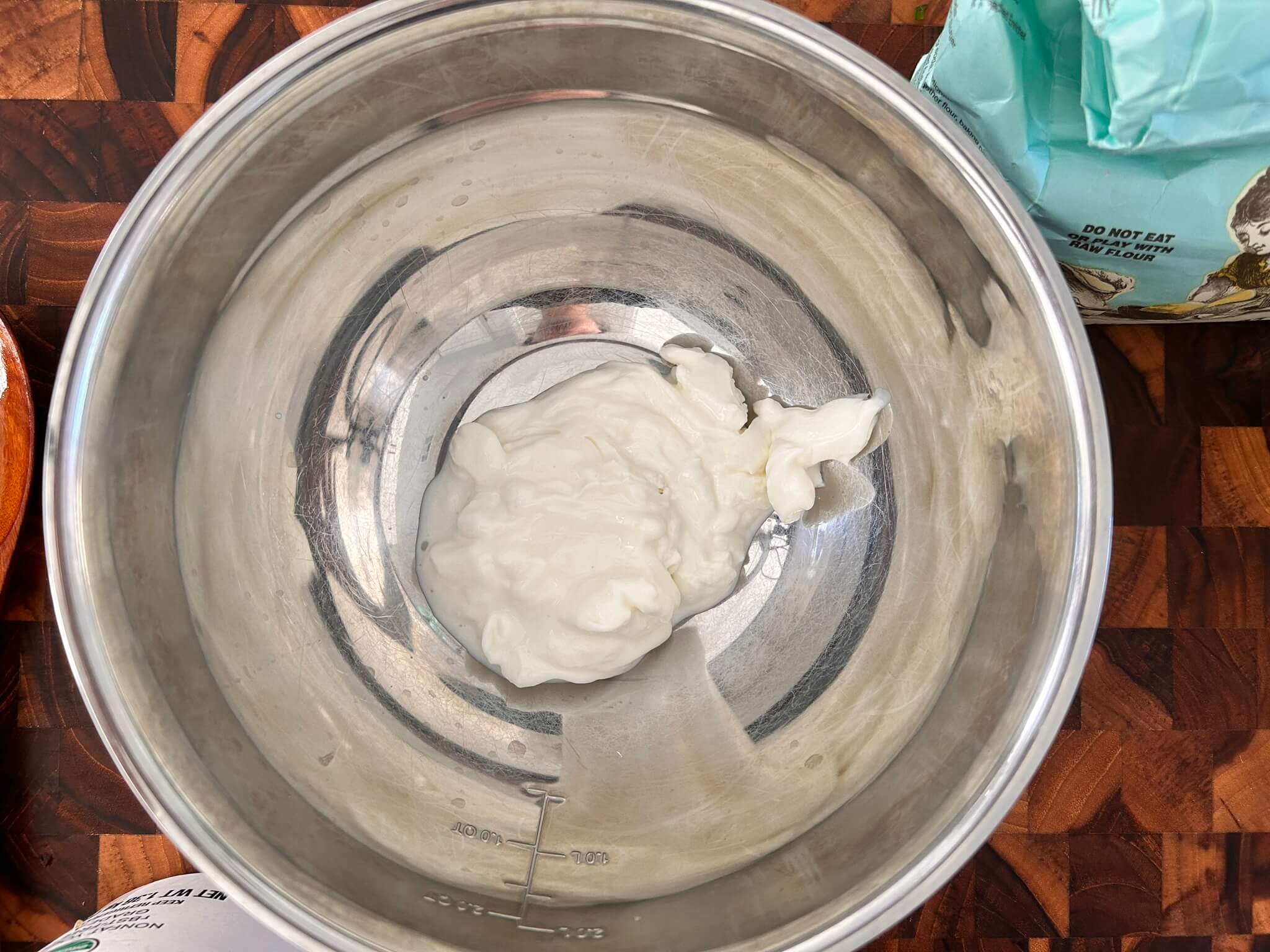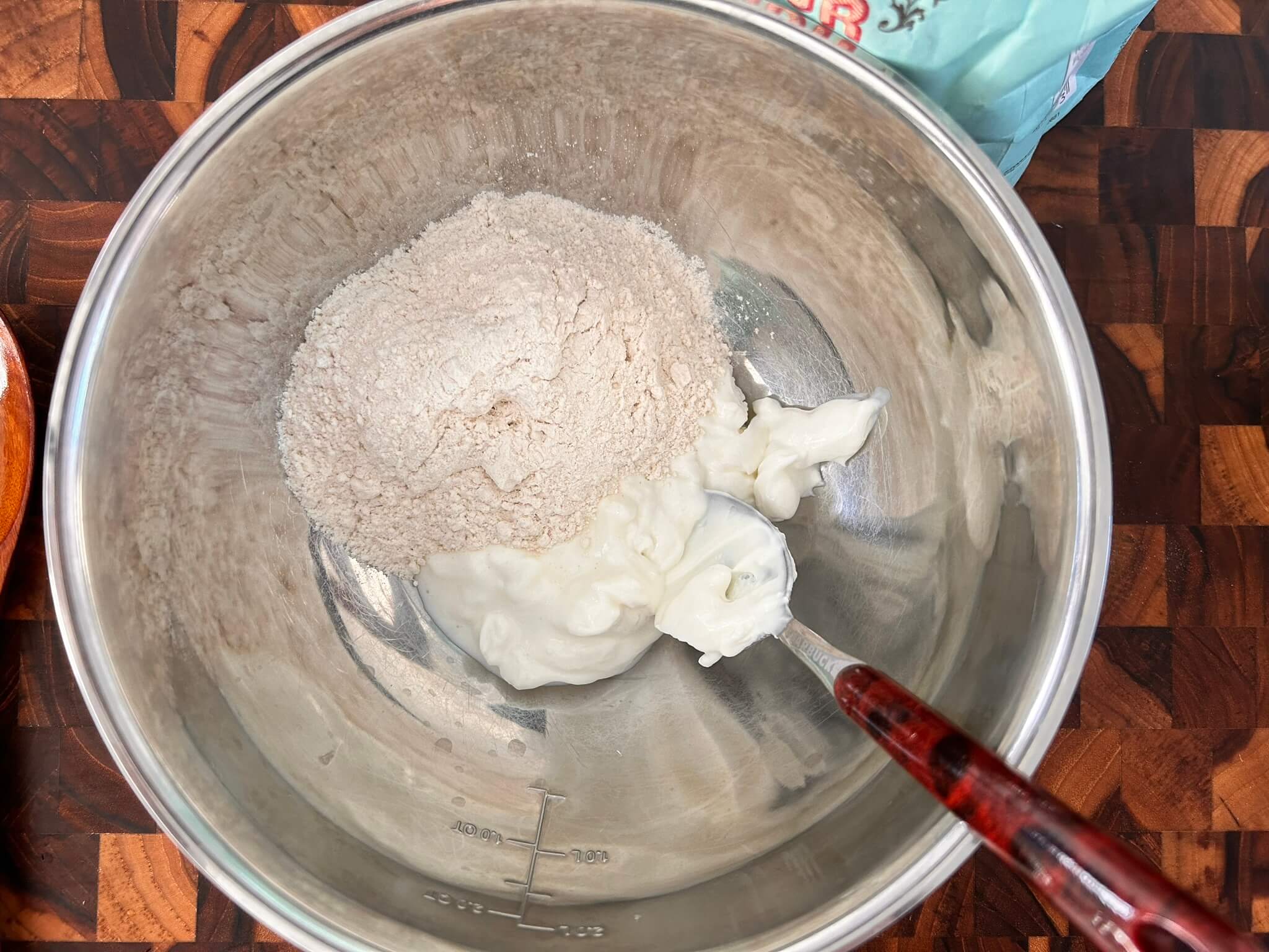 1. 밀가루와 요거트를 1:1 비율로 넣어줍니다.