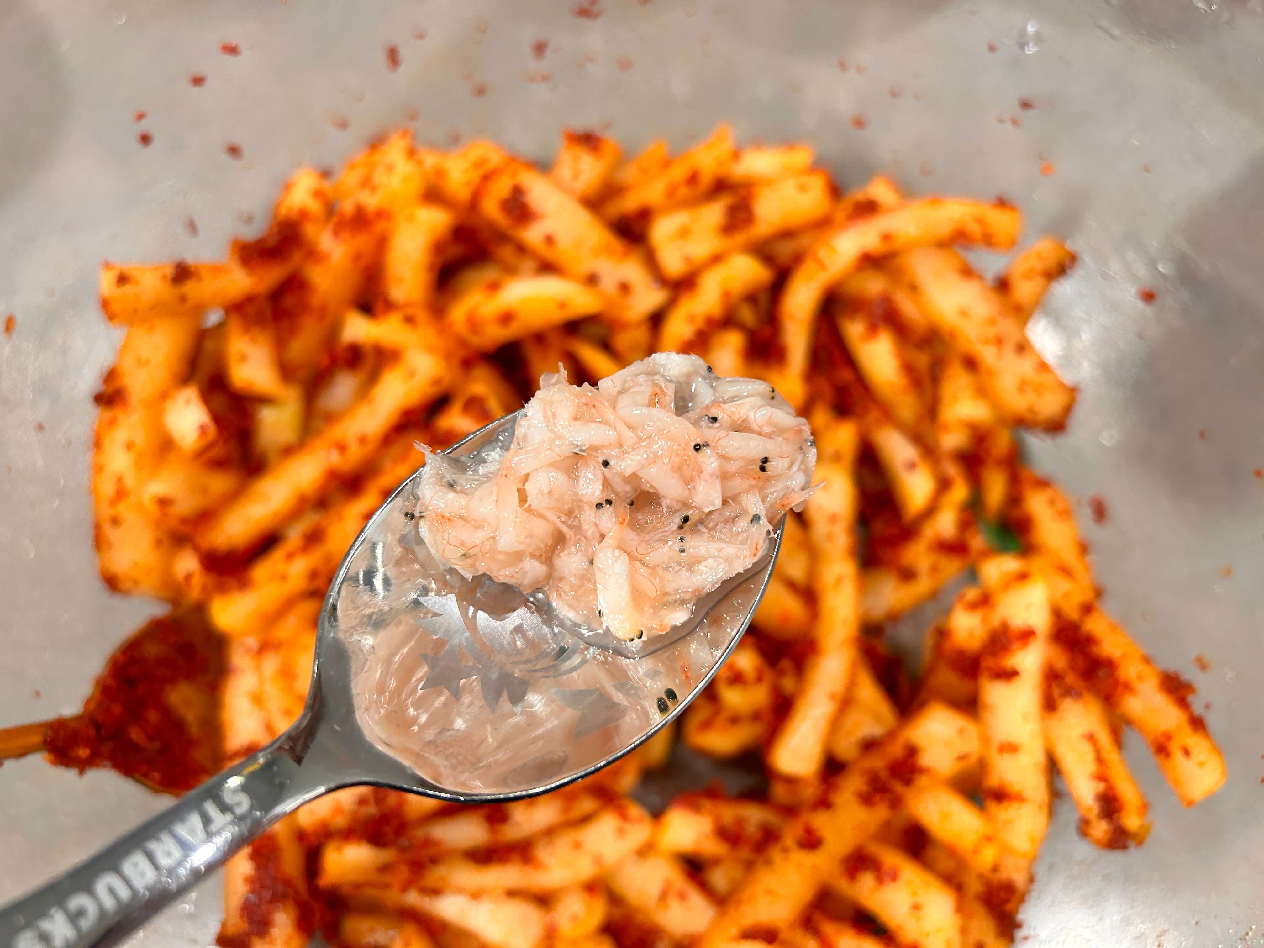 7. 멸치액젓 (3), 새우젓(1/2)을 넣어줍니다.