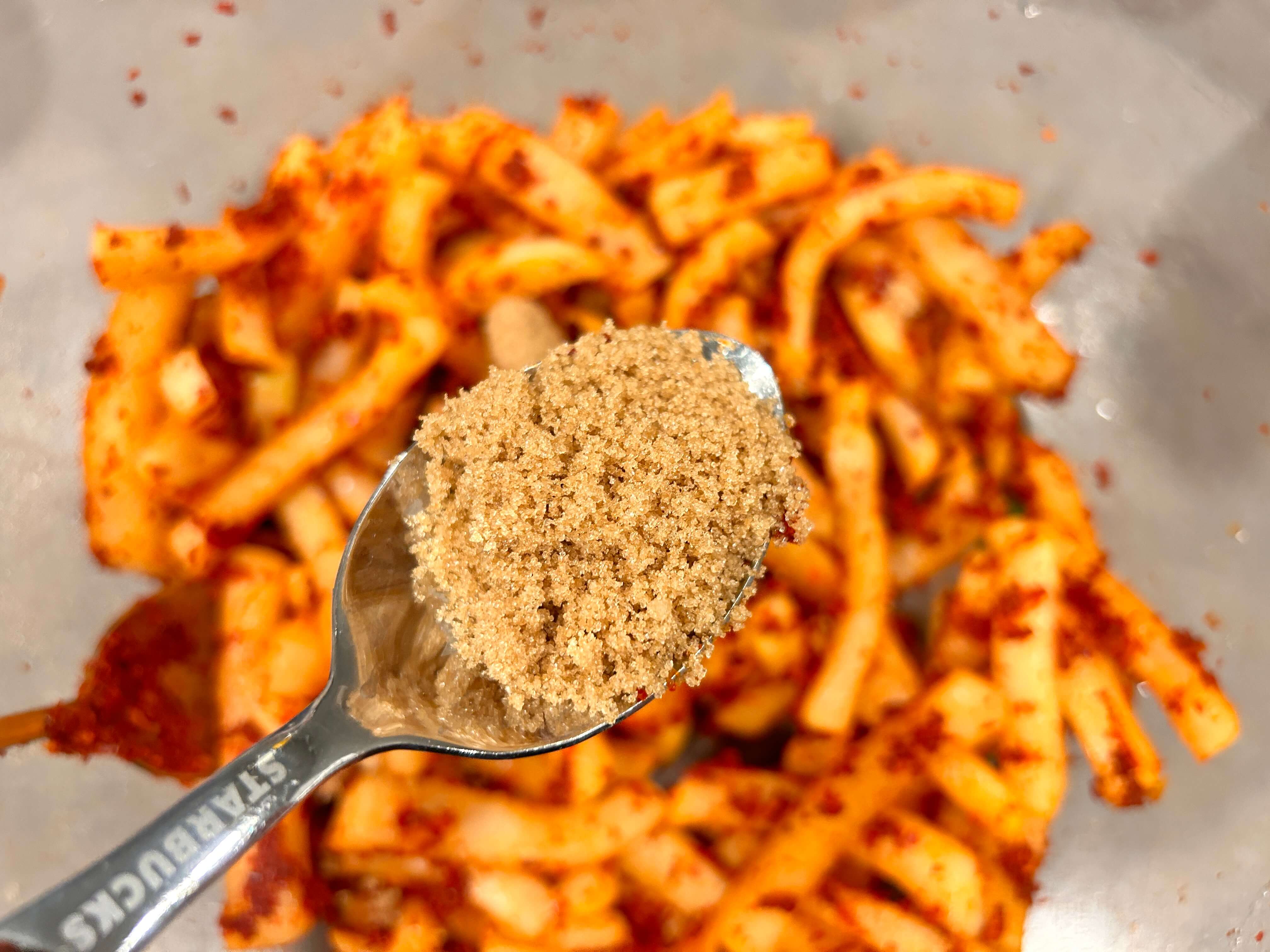 8. 설탕(2), 물엿(3)을 넣어줍니다.