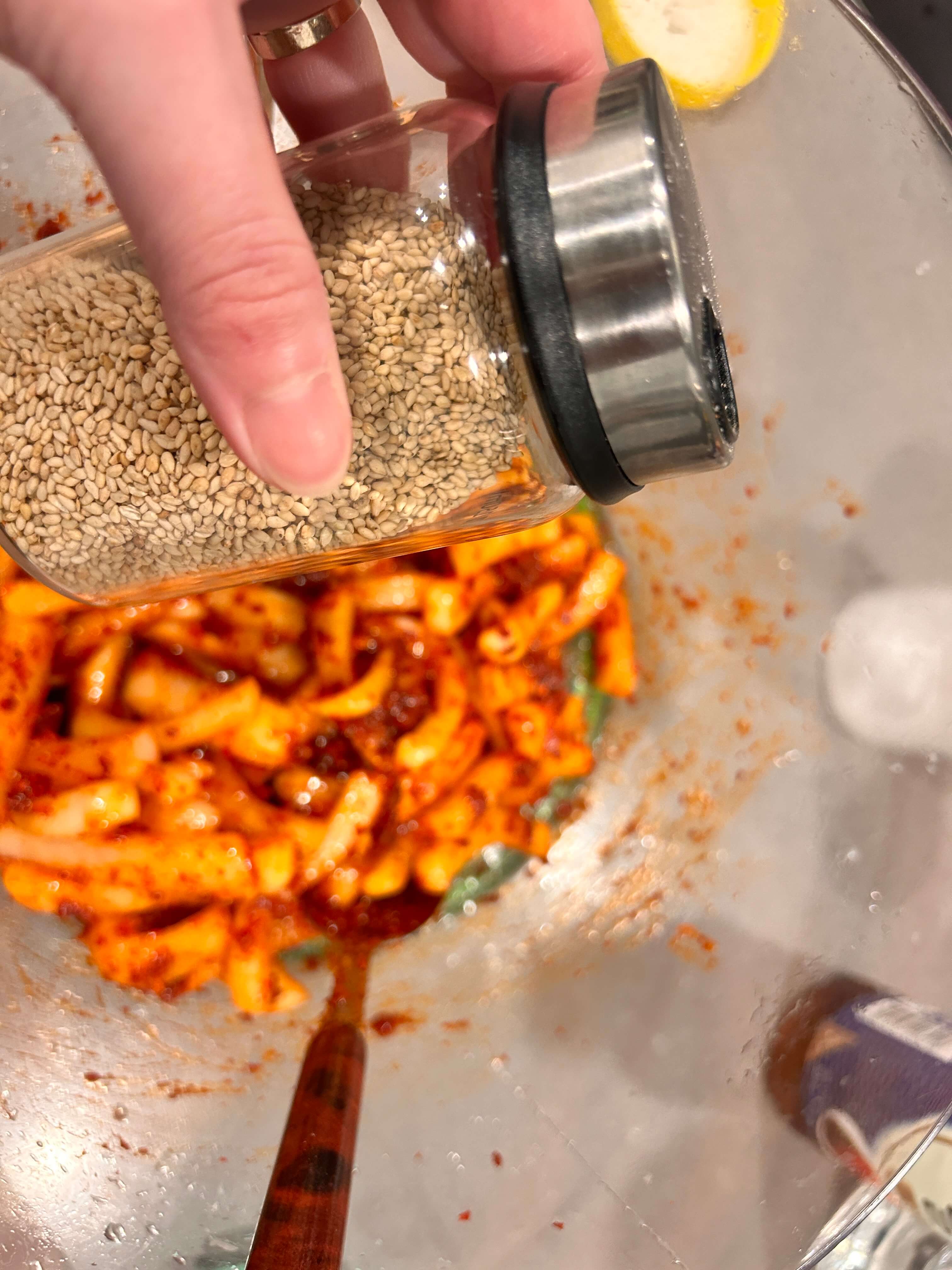 9. 깨를 넣어 잘 버무려줍니다.