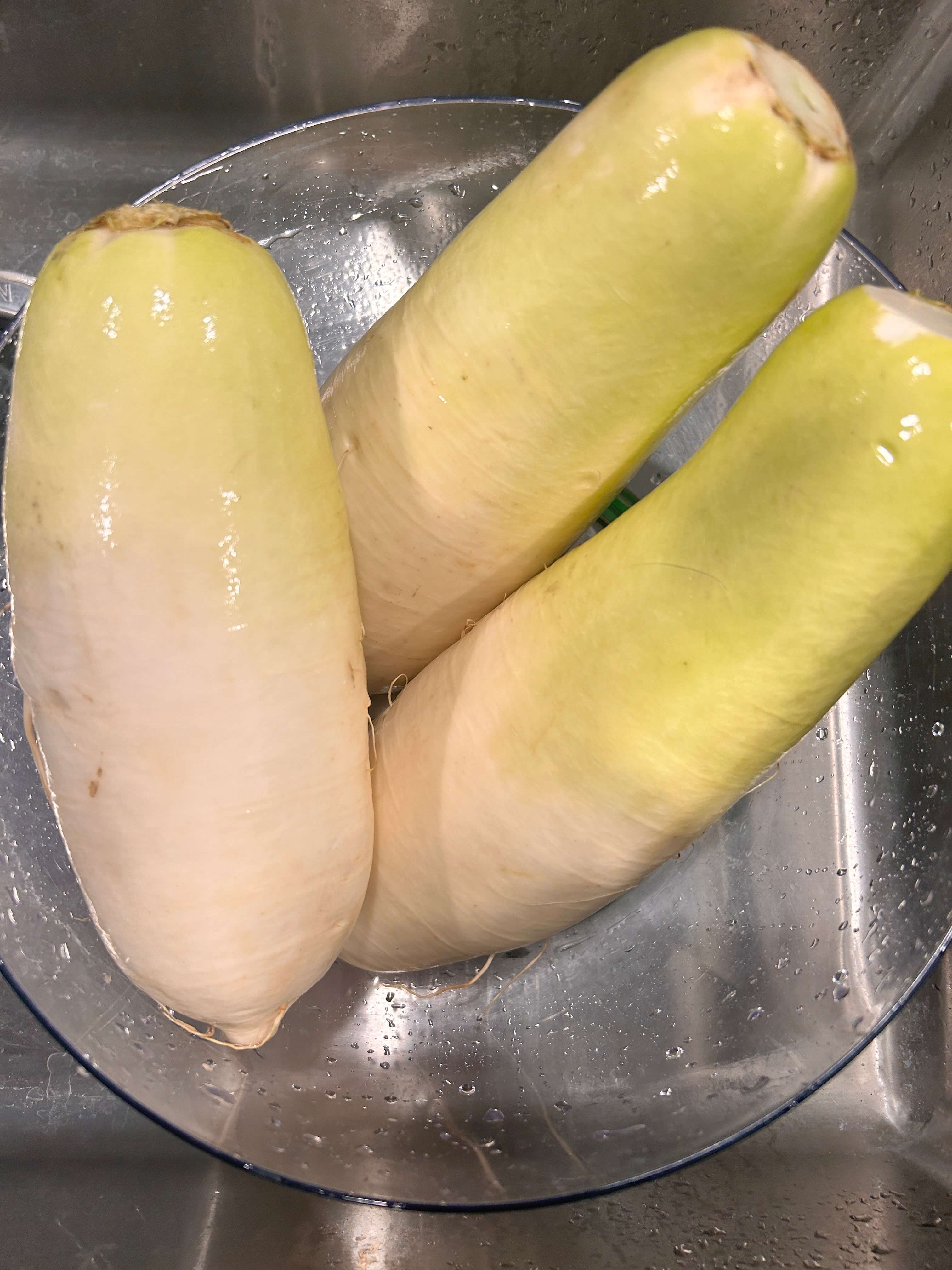 무생채 (한국산 무) 지난번에는 whole food marker에서 산 radish 무로 무생채를 만들어보았었는데요. 이번에 아시안마트에 가니 한국산 무를 팔더라고요. 익숙한 모습의 무!! 하나 사 와서 무생채를 만