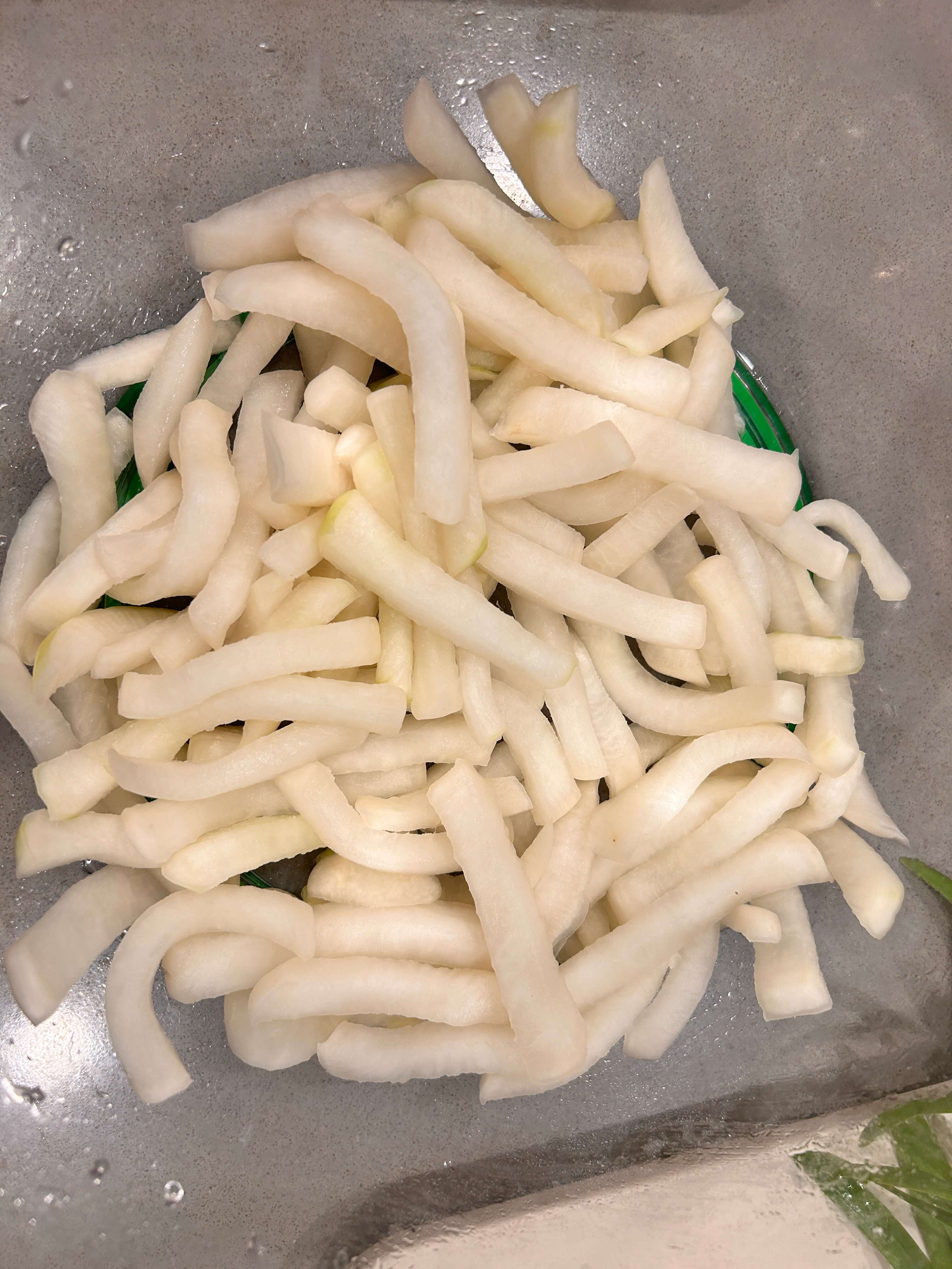 3. 절이는 시간은 사진에 보이는 것처럼 무가 휘어질 때까지 절여주시면 됩니다.