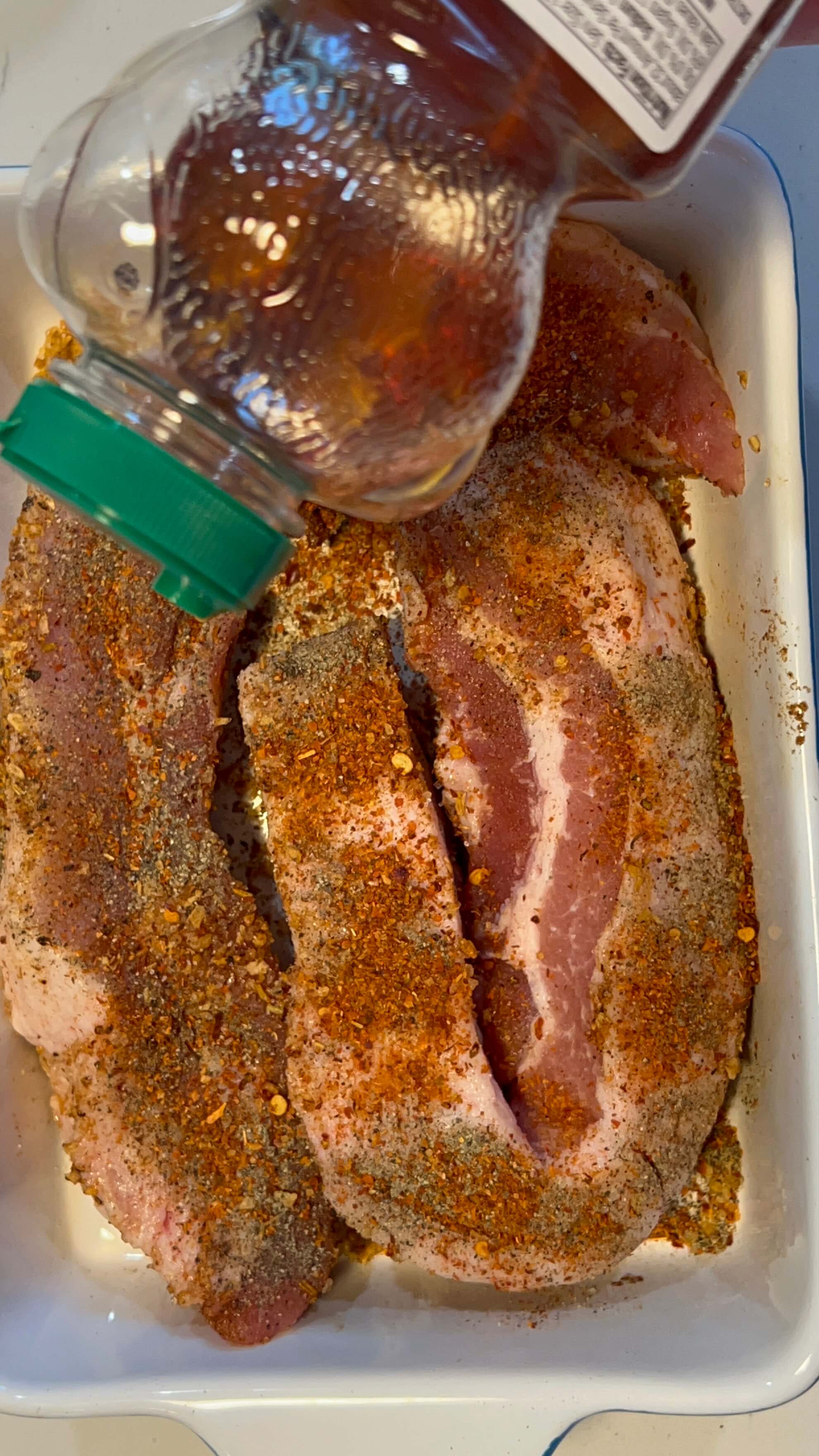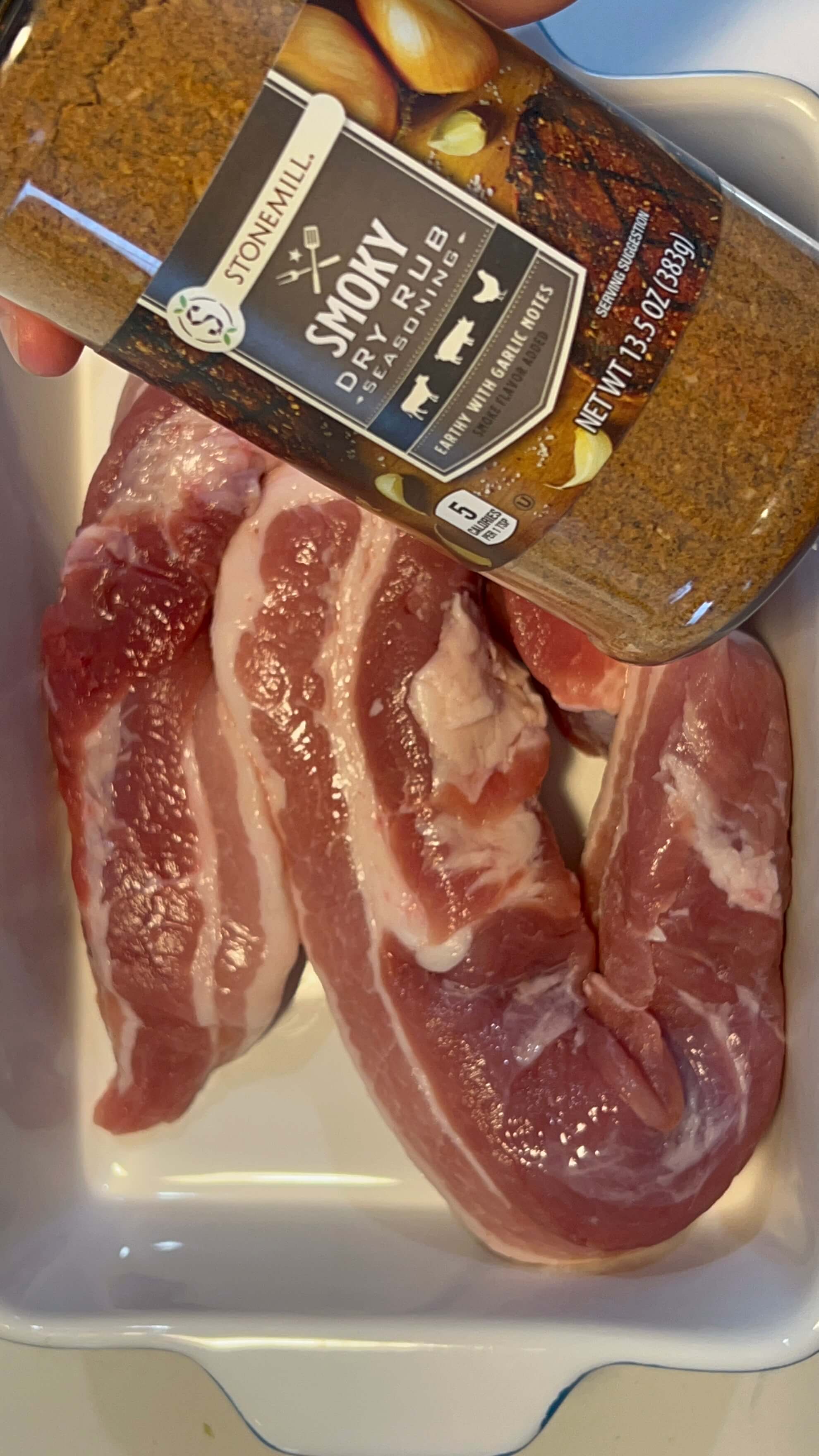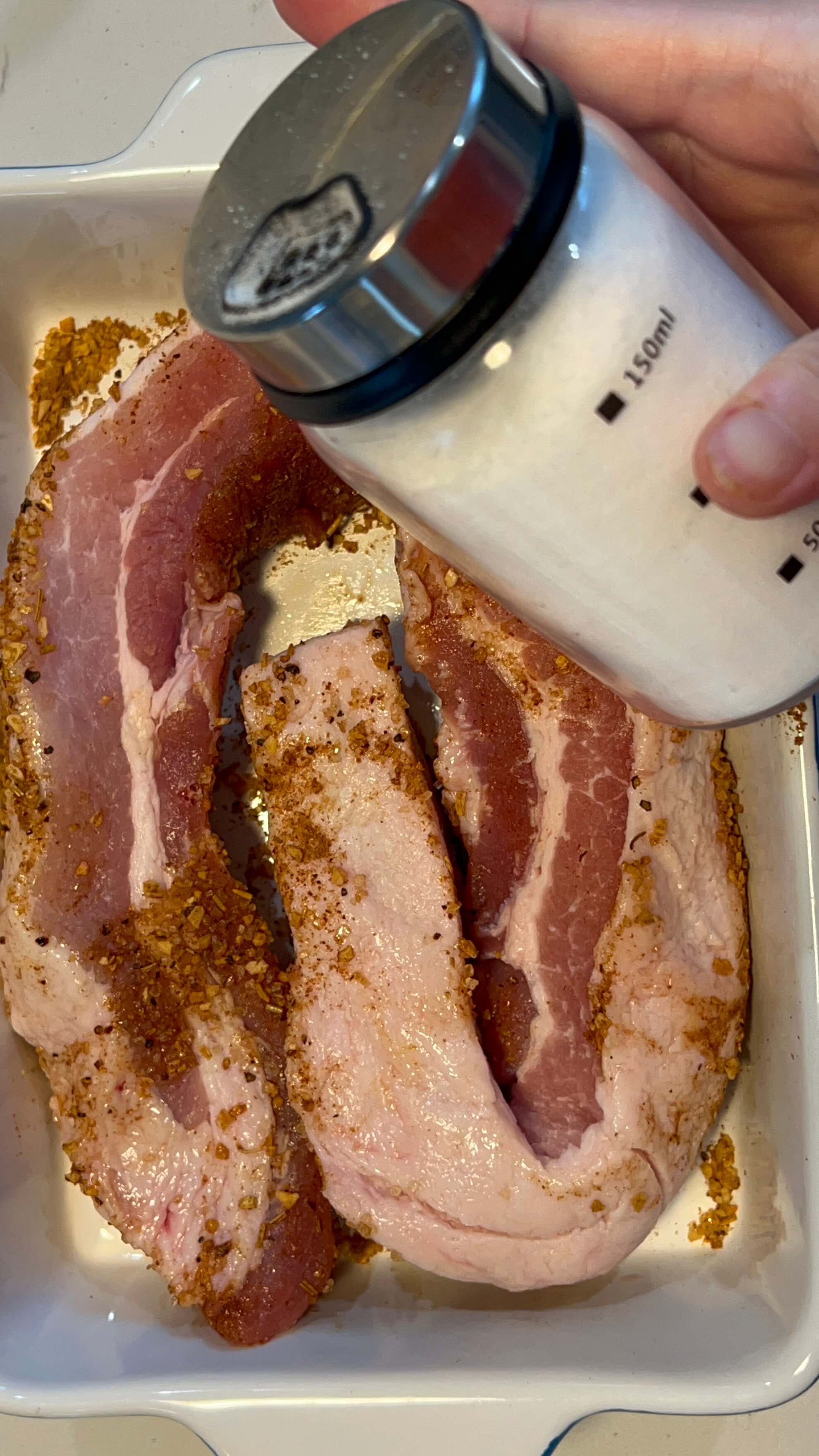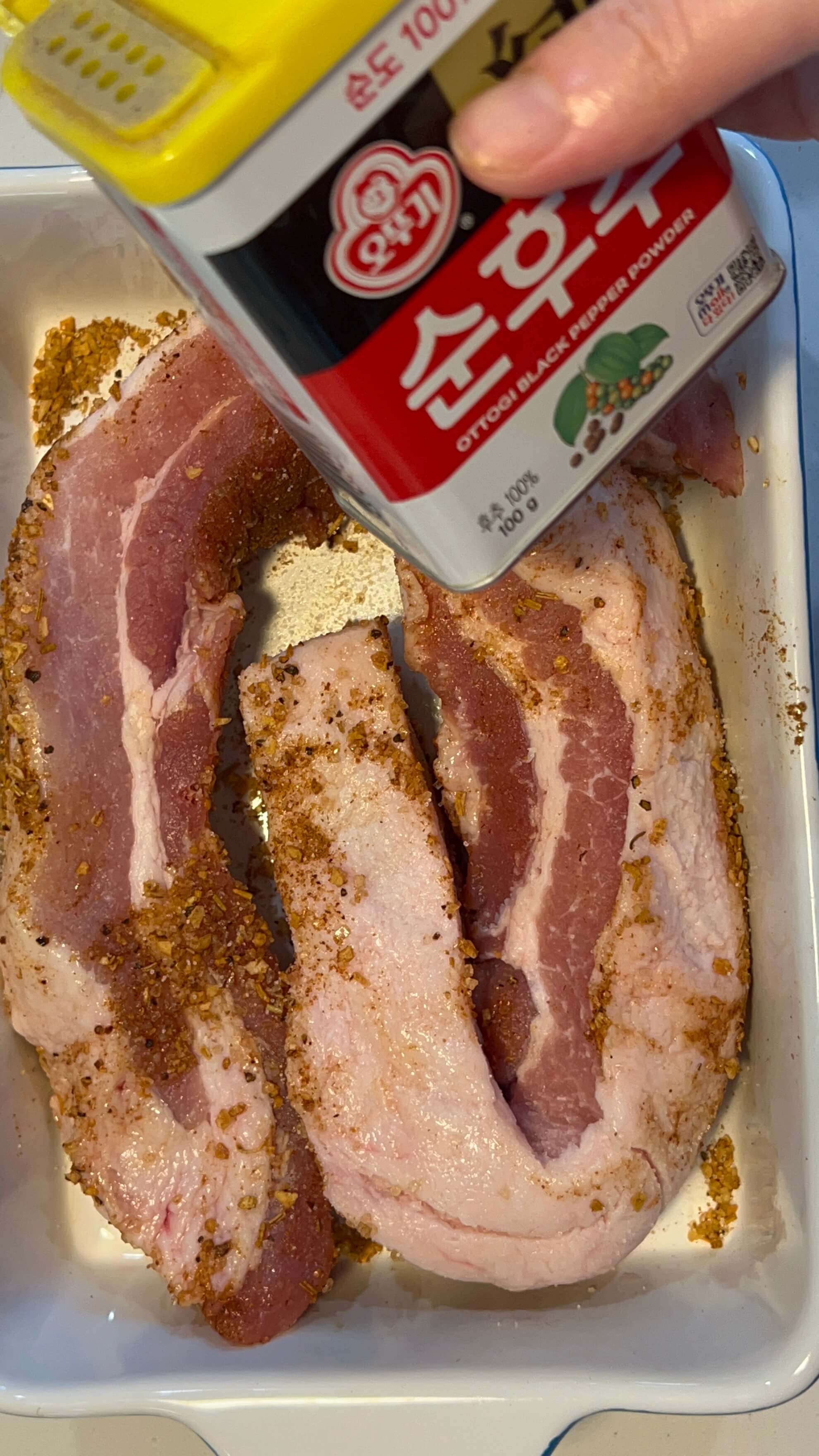 스모크향이 나는 시즈닝이라 바베큐를 더 맛있게 해 줄 거라는 기대로 삼겹살 앞뒤로 잘 발라주었습니다.