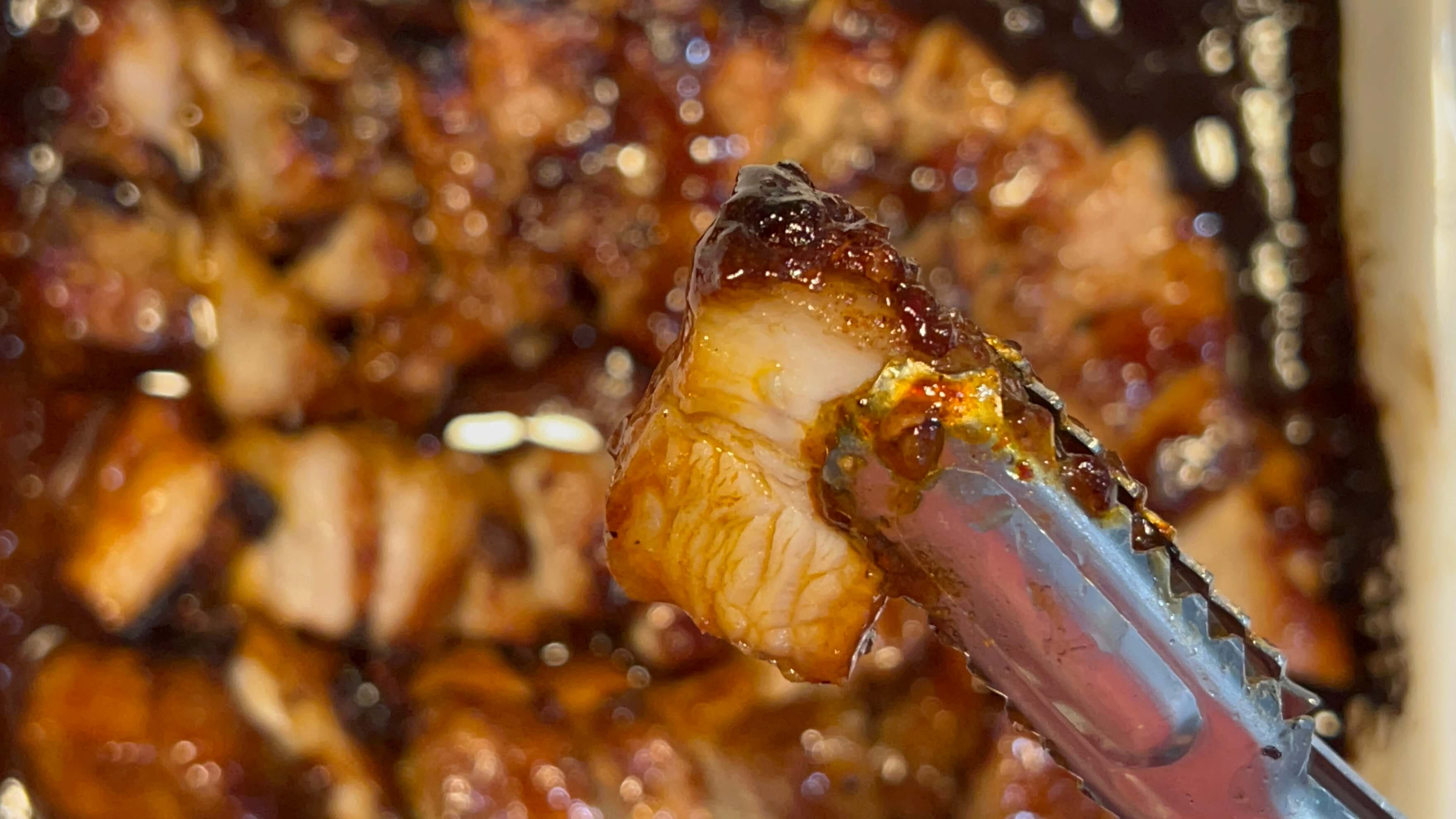 두 번째 사진과 세 번째 사진을 비교해 보시면, 꿀이 고기가 흡수한 것을 확인하실 수 있습니다.
