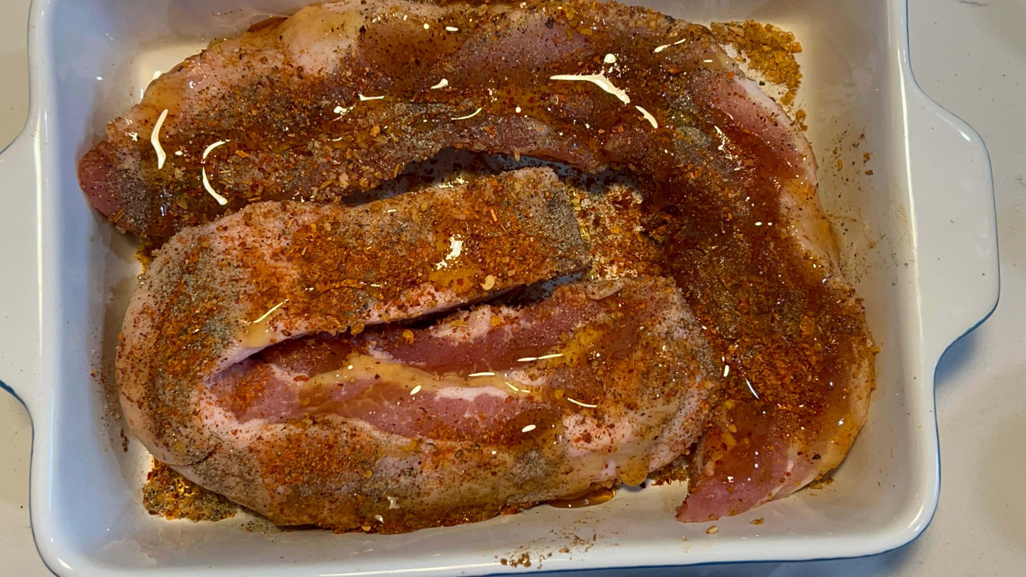 2. 삼겹살에 시즈닝을 합니다.