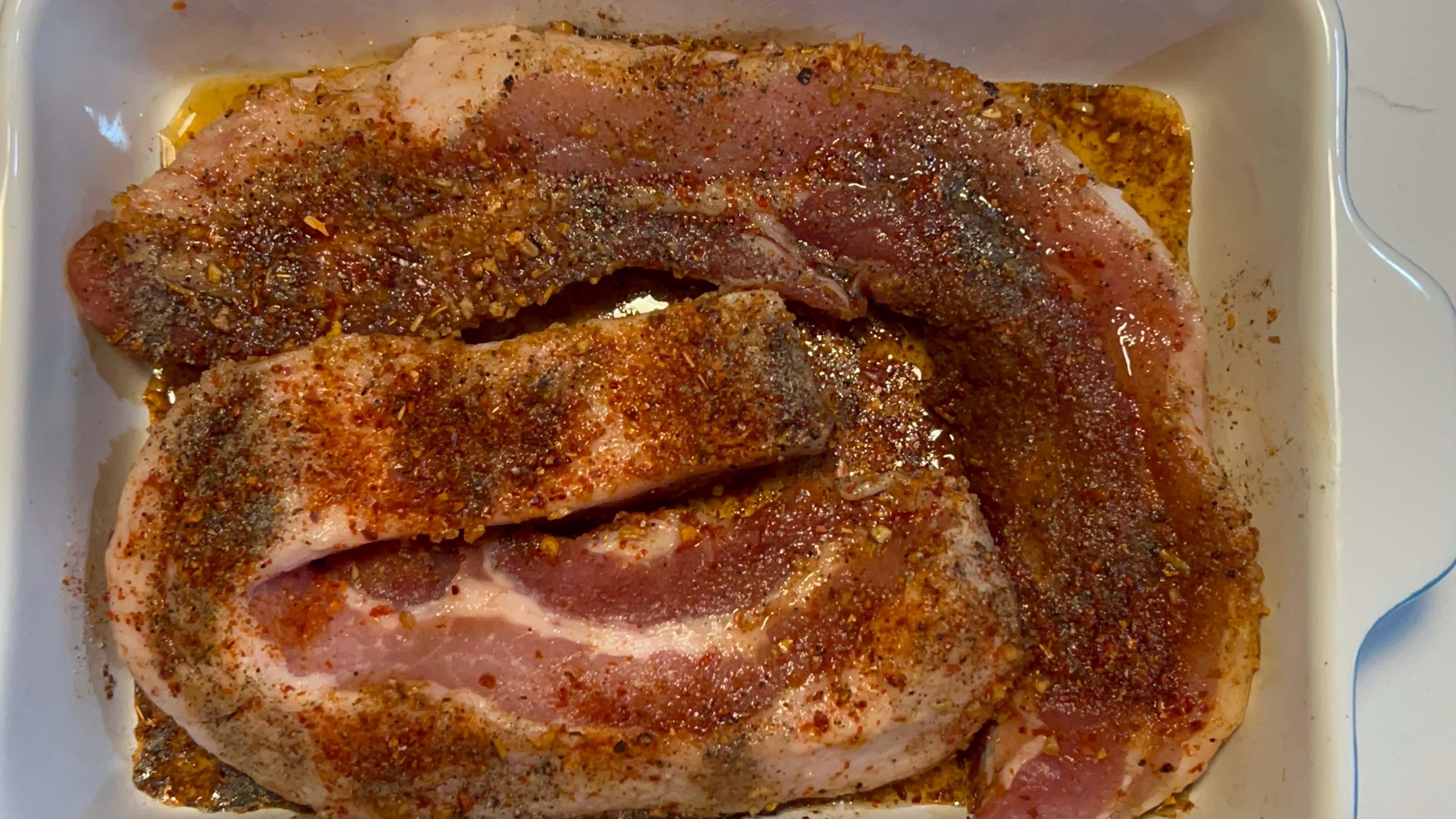 2. 삼겹살에 시즈닝을 합니다.