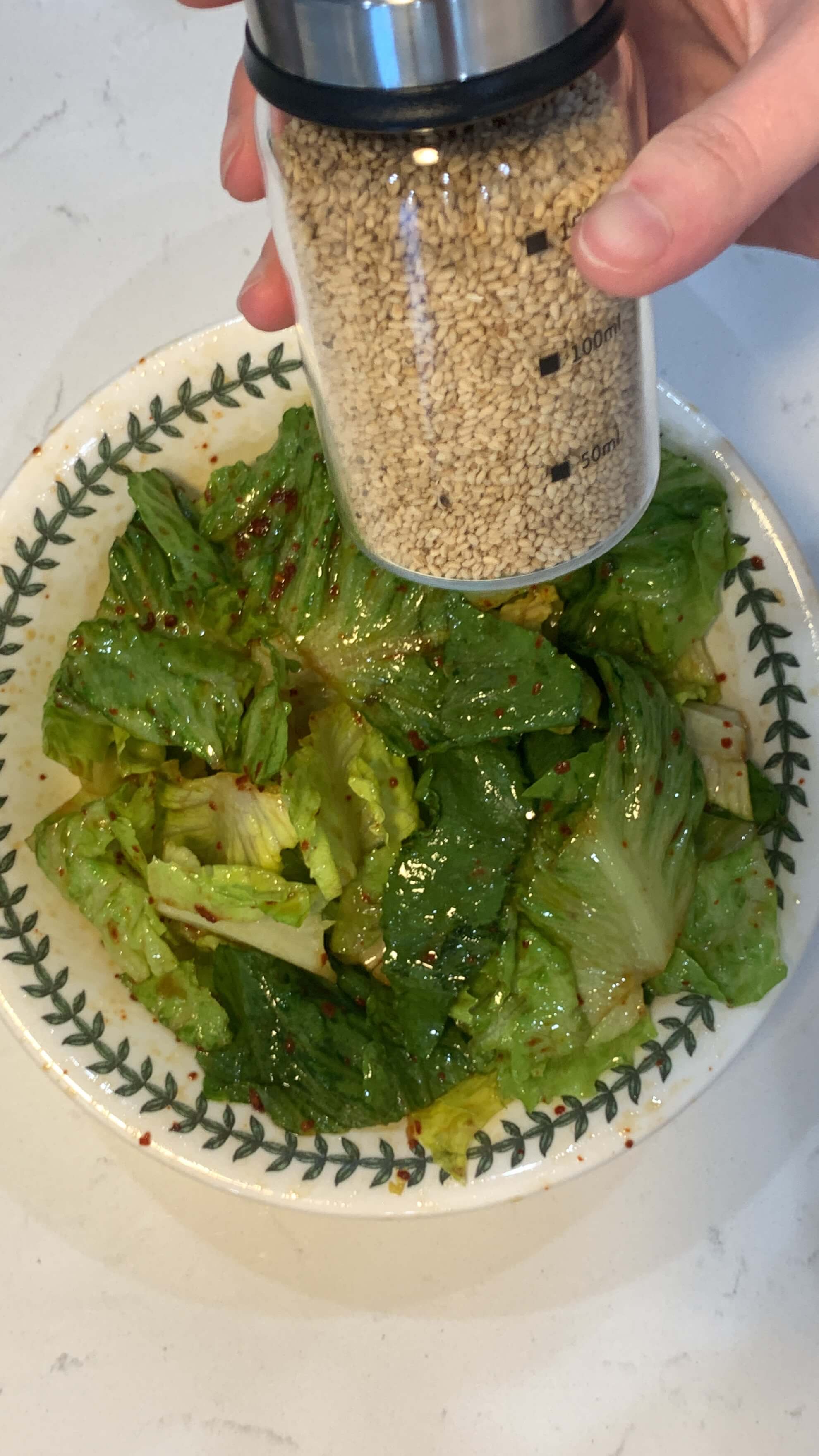 미국에서는 묵은 쉽게 구하지 못하고, 저도 아직 묵은 직접 만들어 본 적이 없어서 묵무침은 못하지만 아쉬운 대로 묵 없이 이렇게 상추무침만 해 먹어도 얼추 비슷합니다.