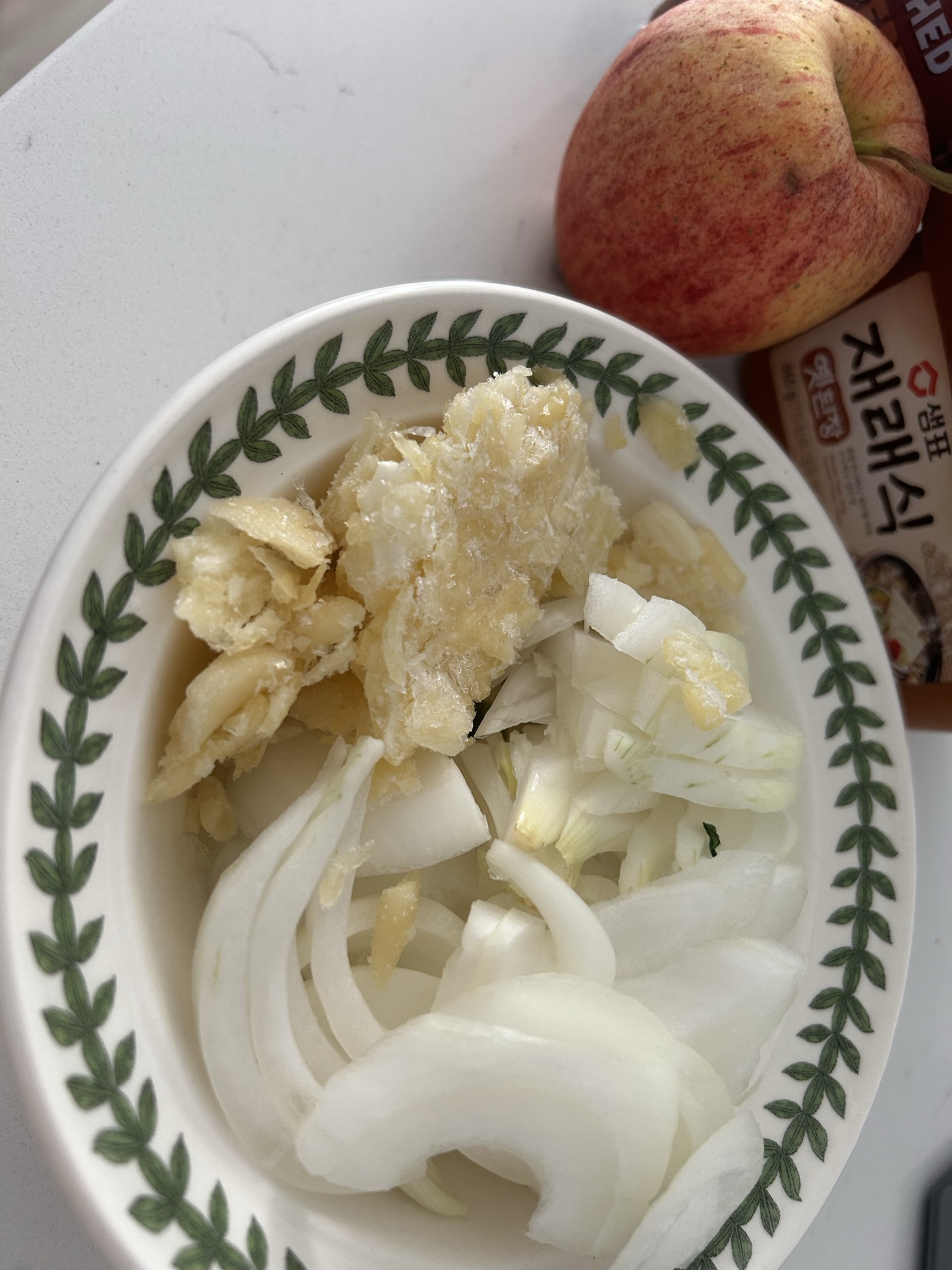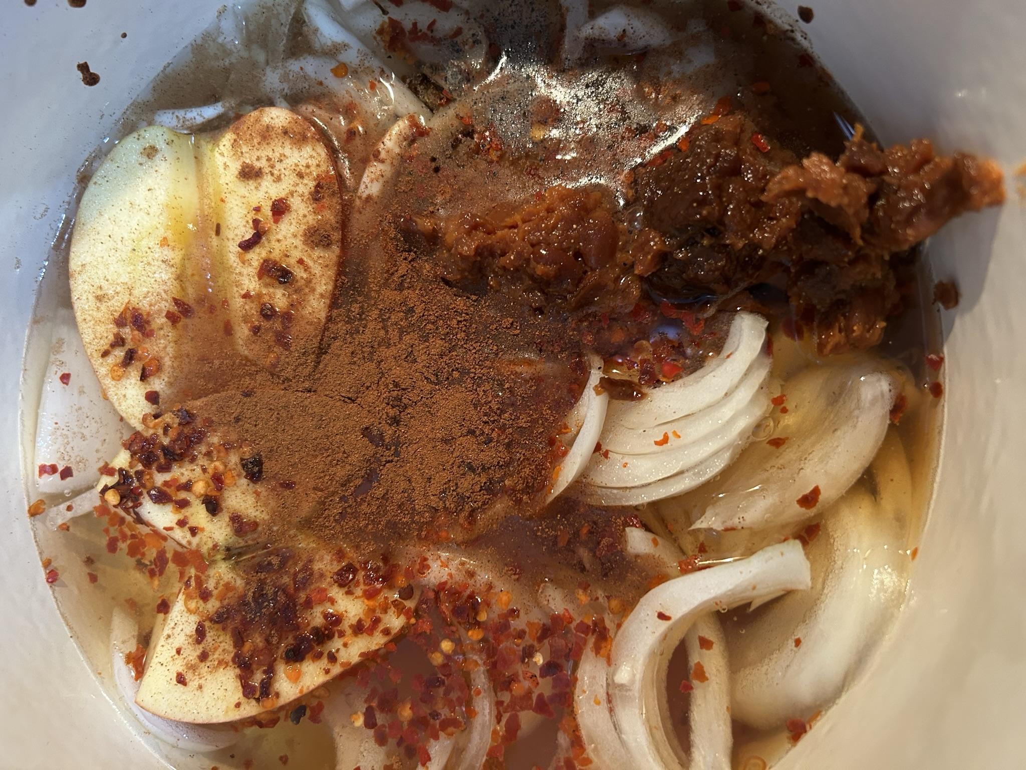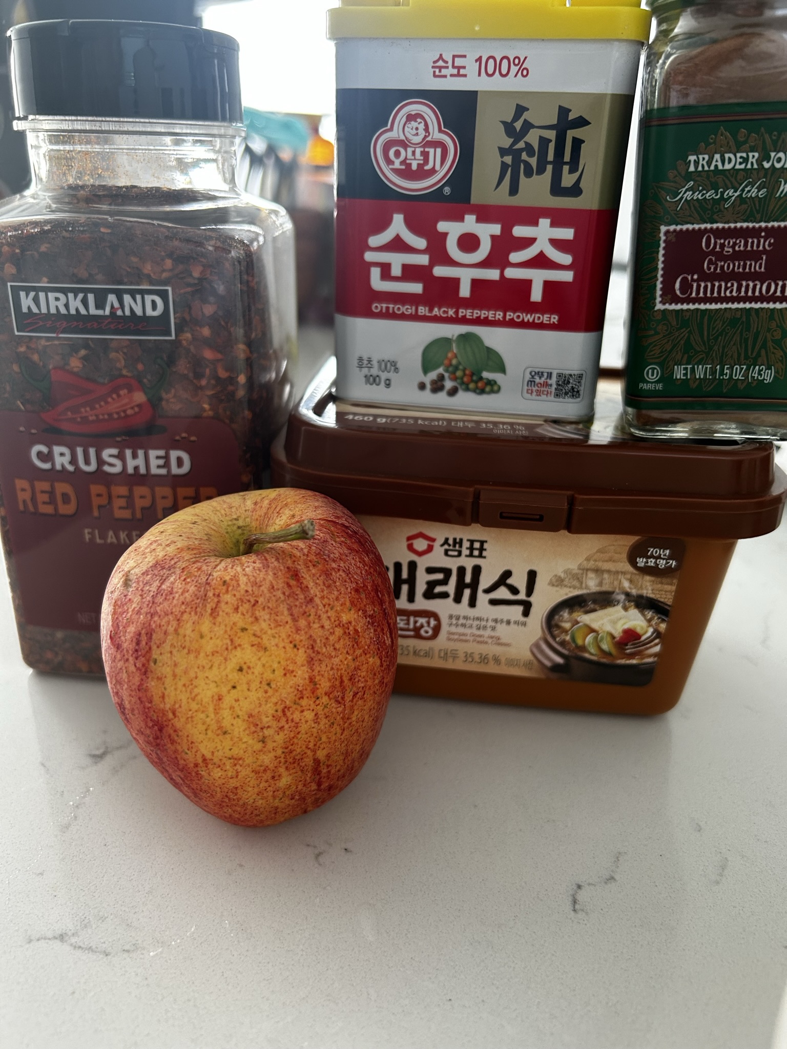 (된장, 후추, 고춧가루, 시나몬가루, 사과, 마늘, 양파)
