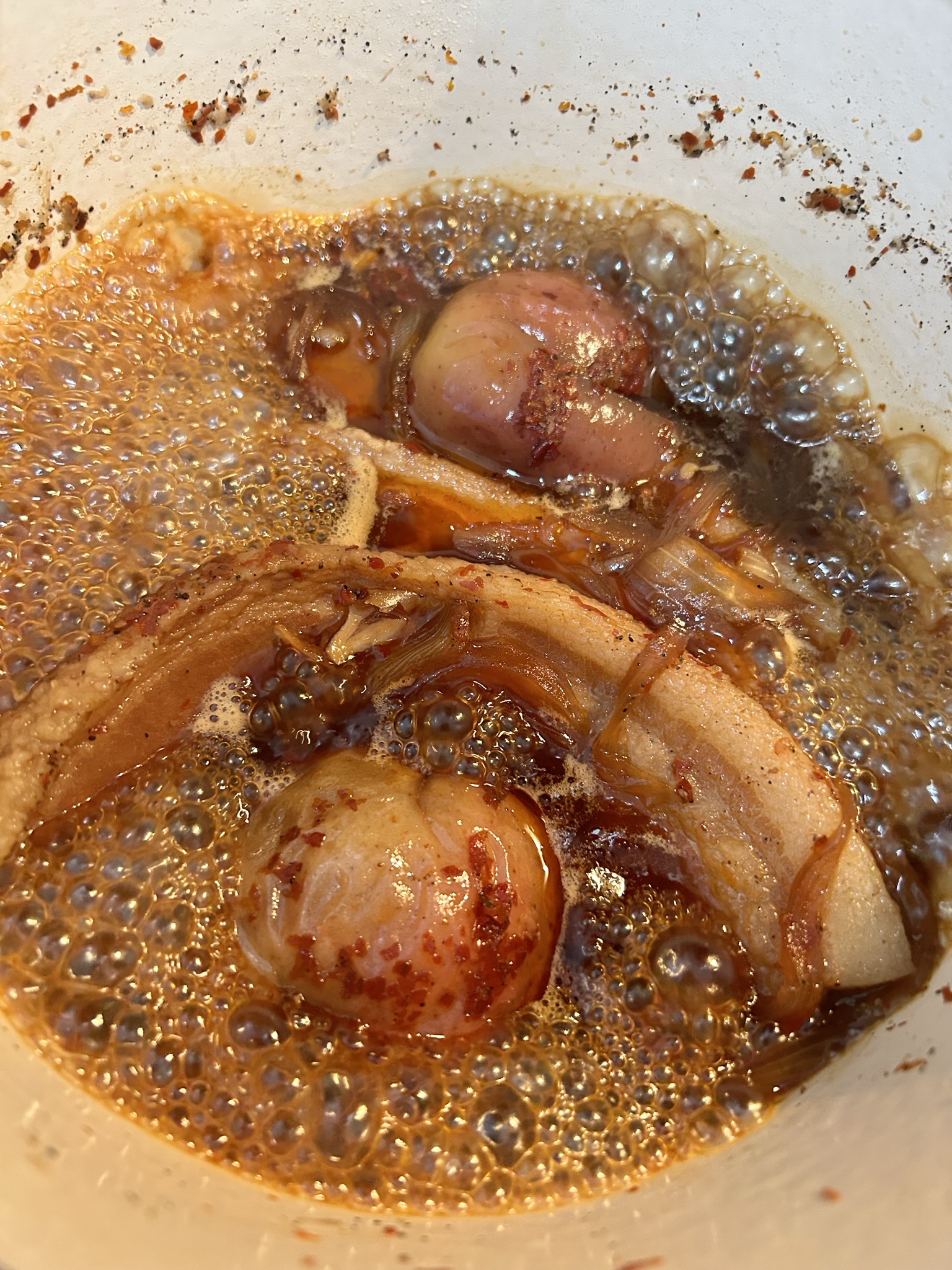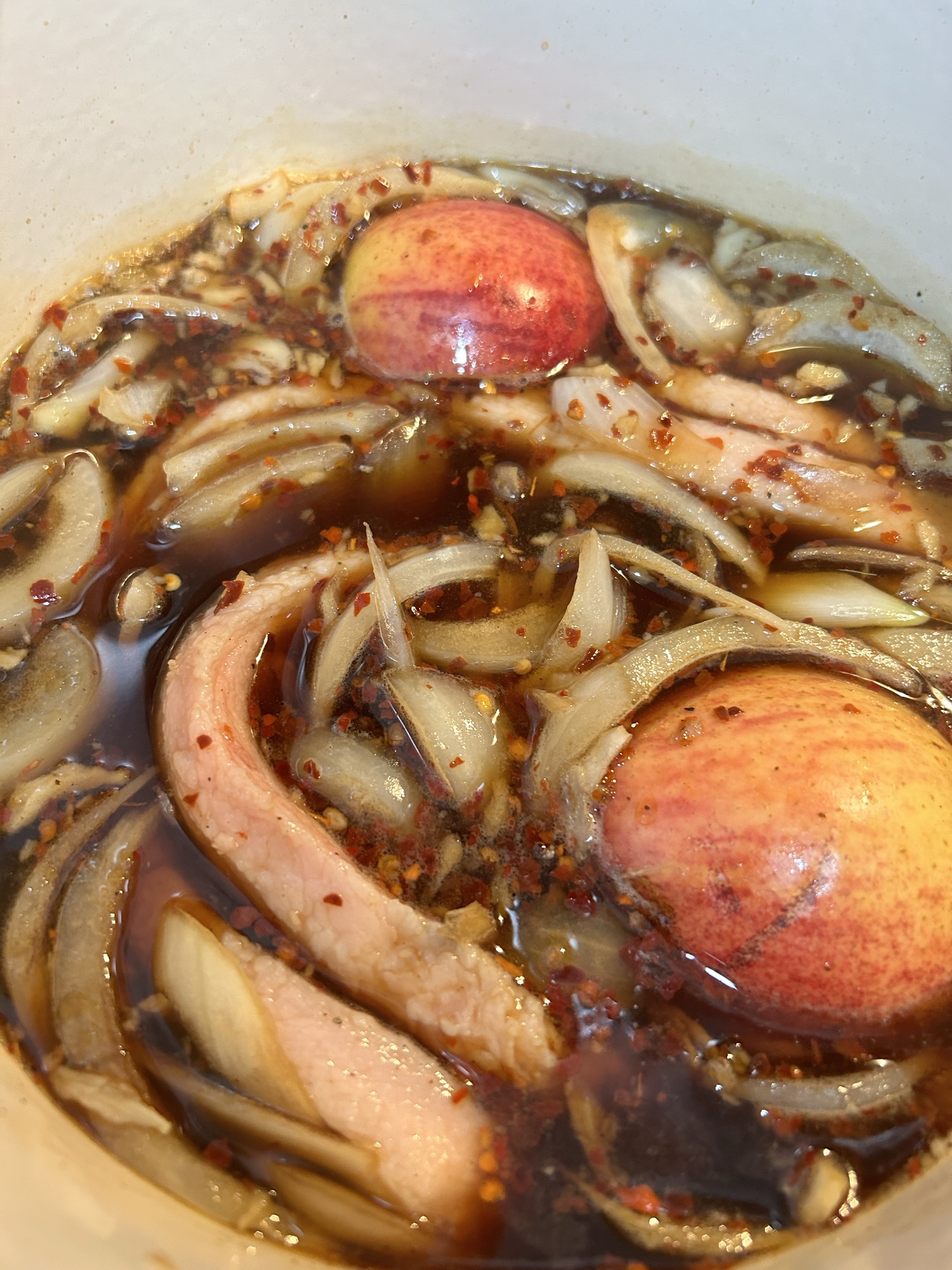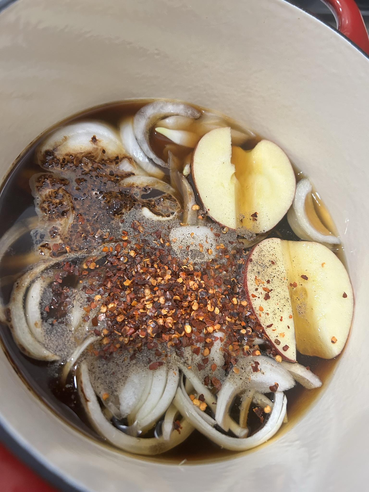 사진 보시면 사과의 모습도 그렇고 양파의 모습도 많이 쫄아든 모습을 보실 수 있습니다.