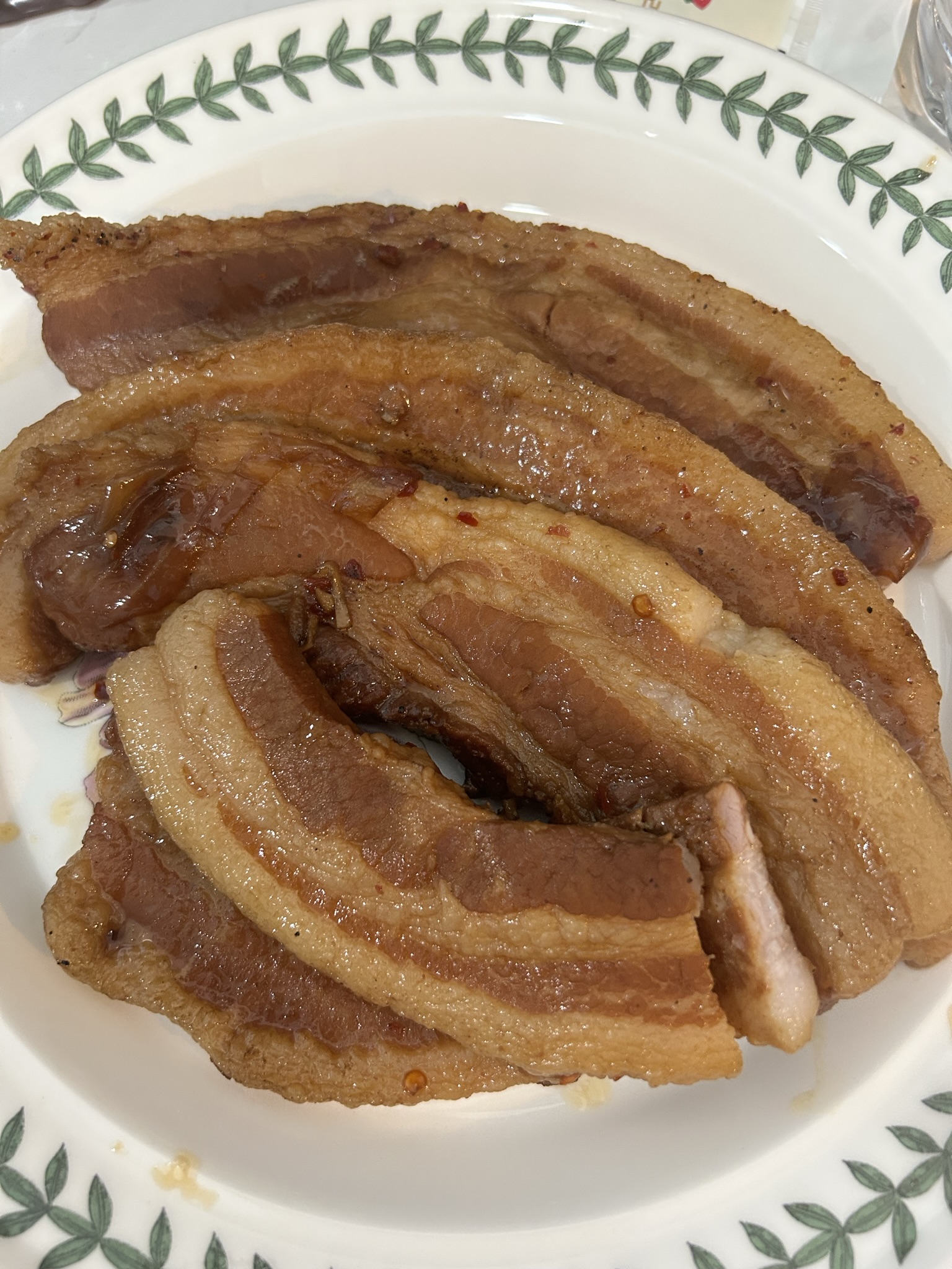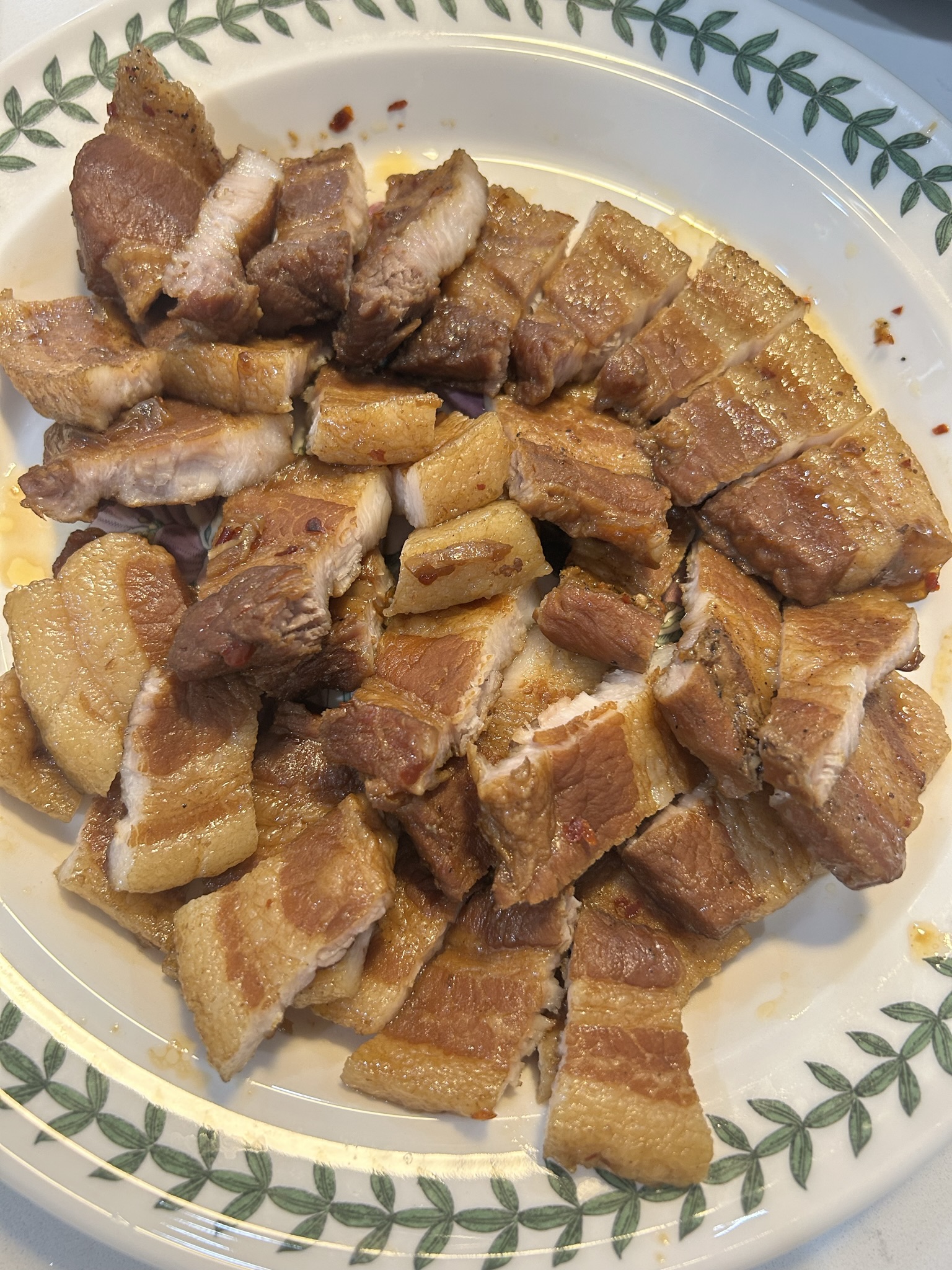 8. 잘 삶아진 삼겹살을 꺼내면 브라운색감의 고기를 확인할 수 있습니다.