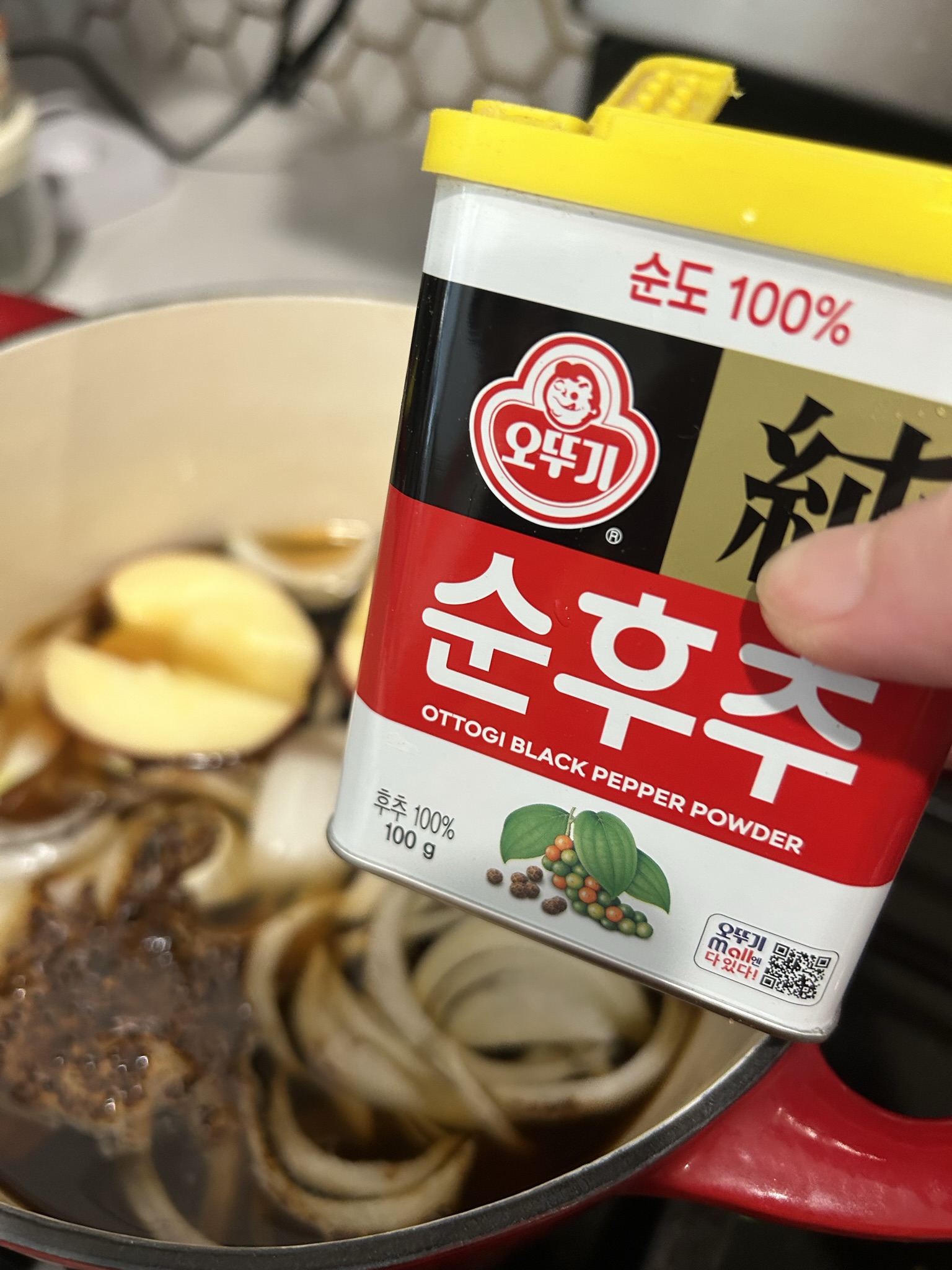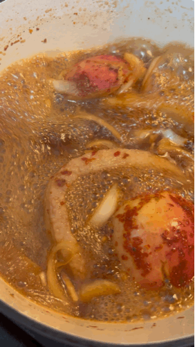 사진 보시면 사과의 모습도 그렇고 양파의 모습도 많이 쫄아든 모습을 보실 수 있습니다.
