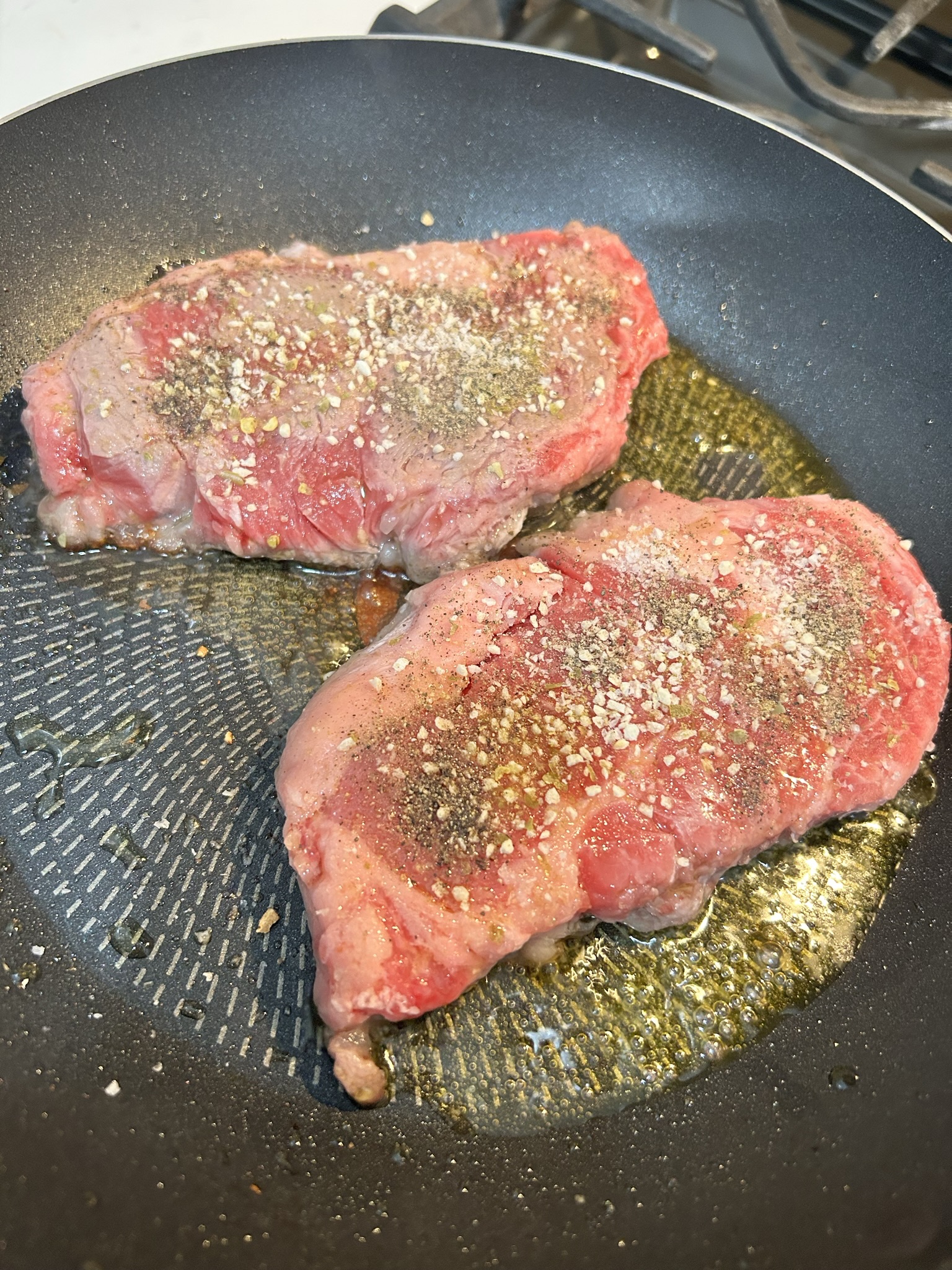 3. 한쪽면에 양념을 뿌려준다. (소금, 후추, 마늘가루, 청량가루)