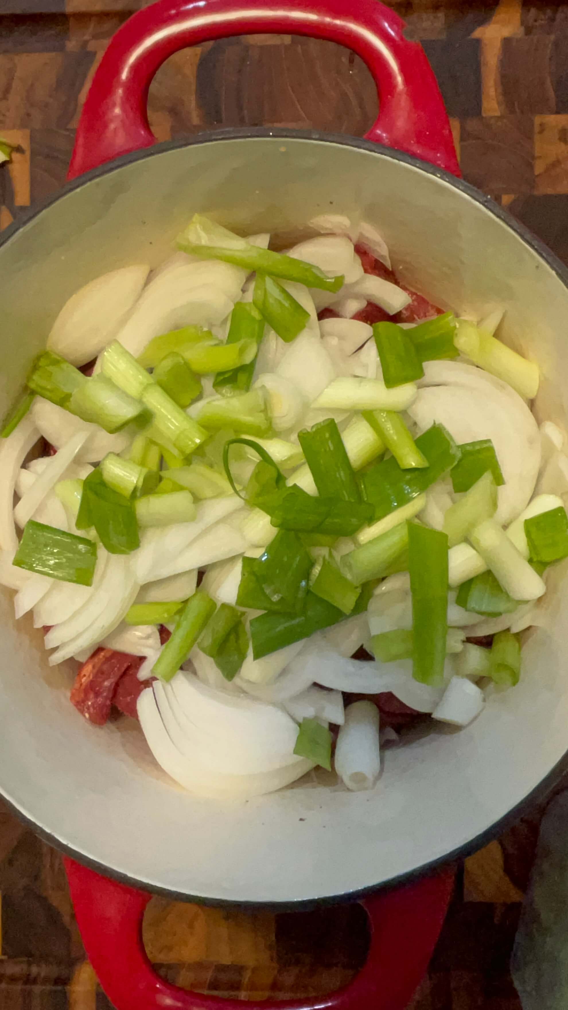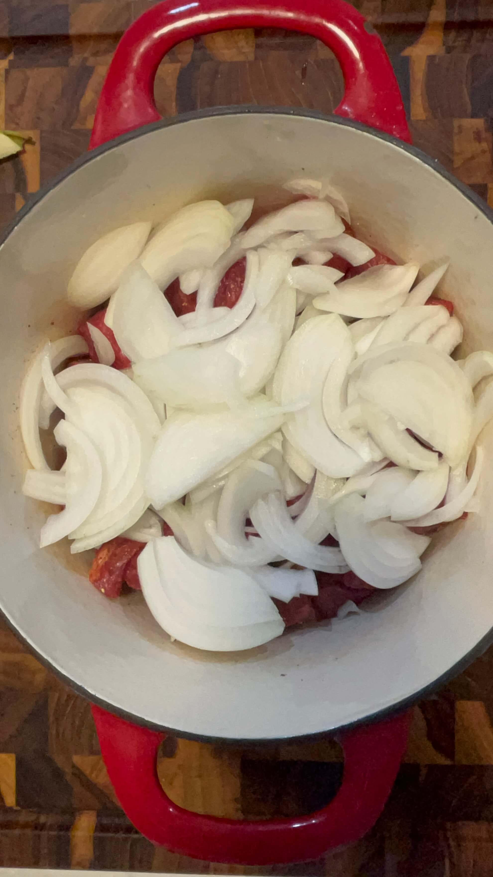 10. 고기 위에 양파와 대파를 올려줍니다.