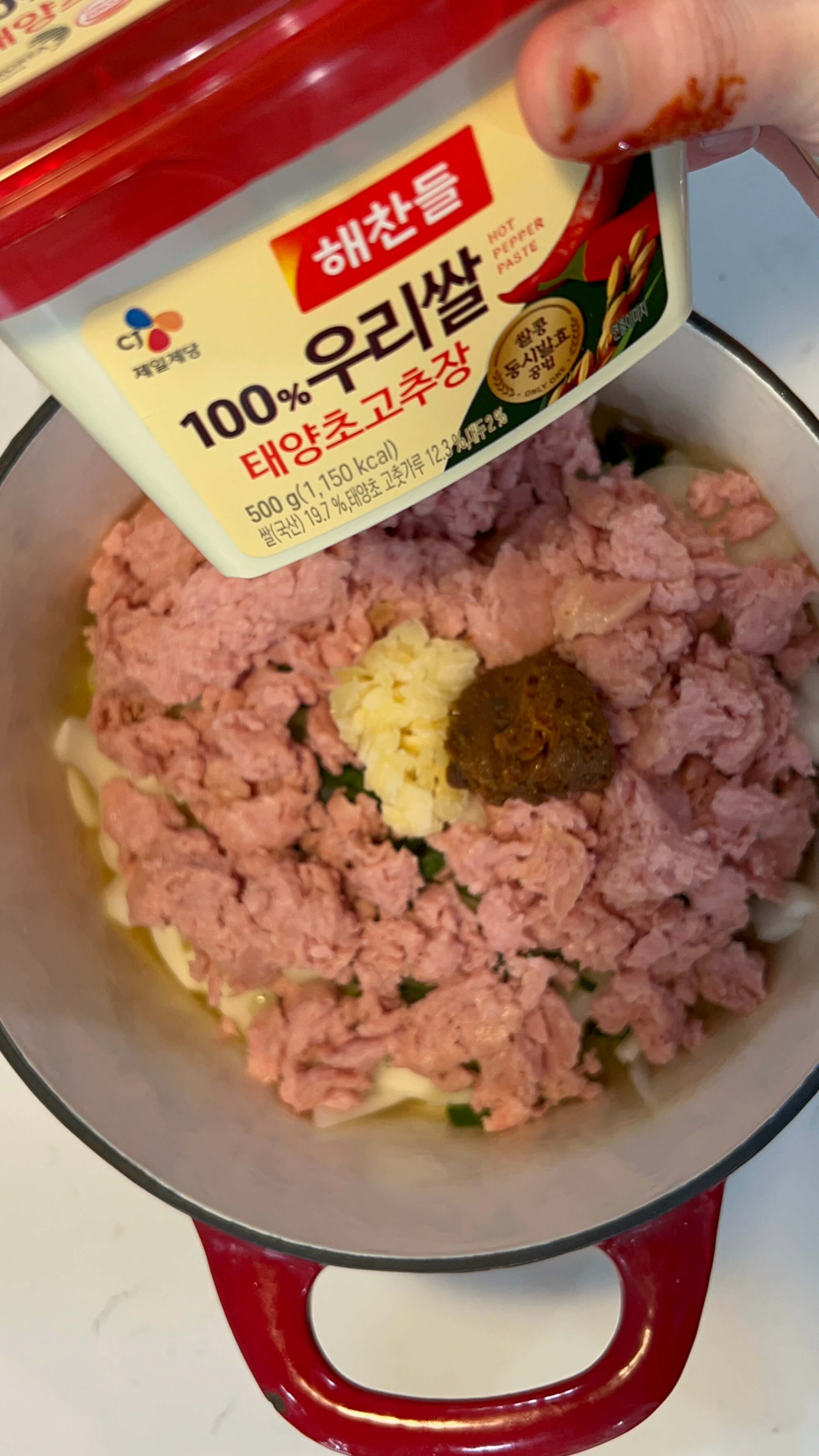 5. 다음으로 다진 마늘을 넣어줍니다.