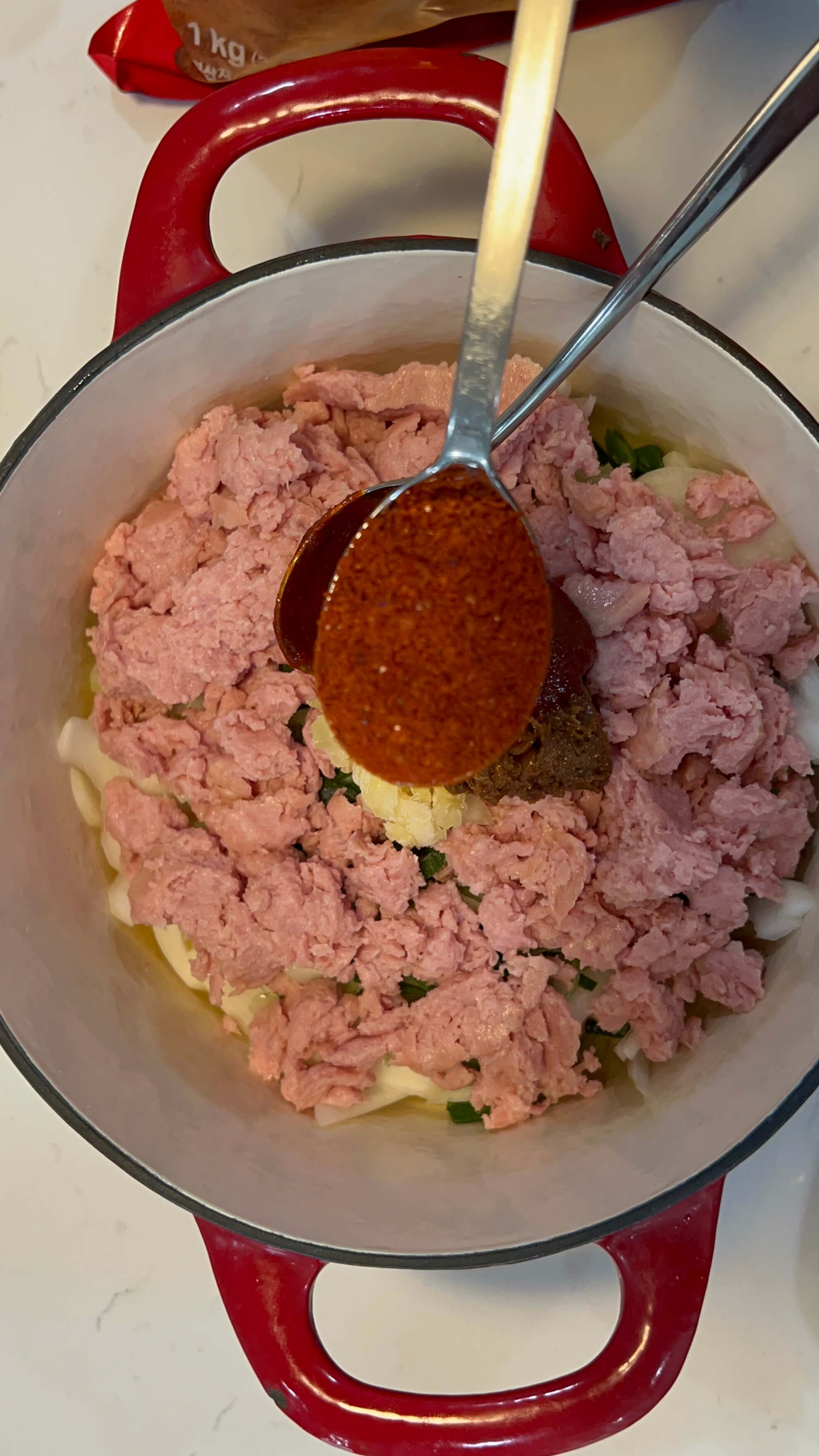 8. 고춧가루 한 숟갈을 넣어줍니다.