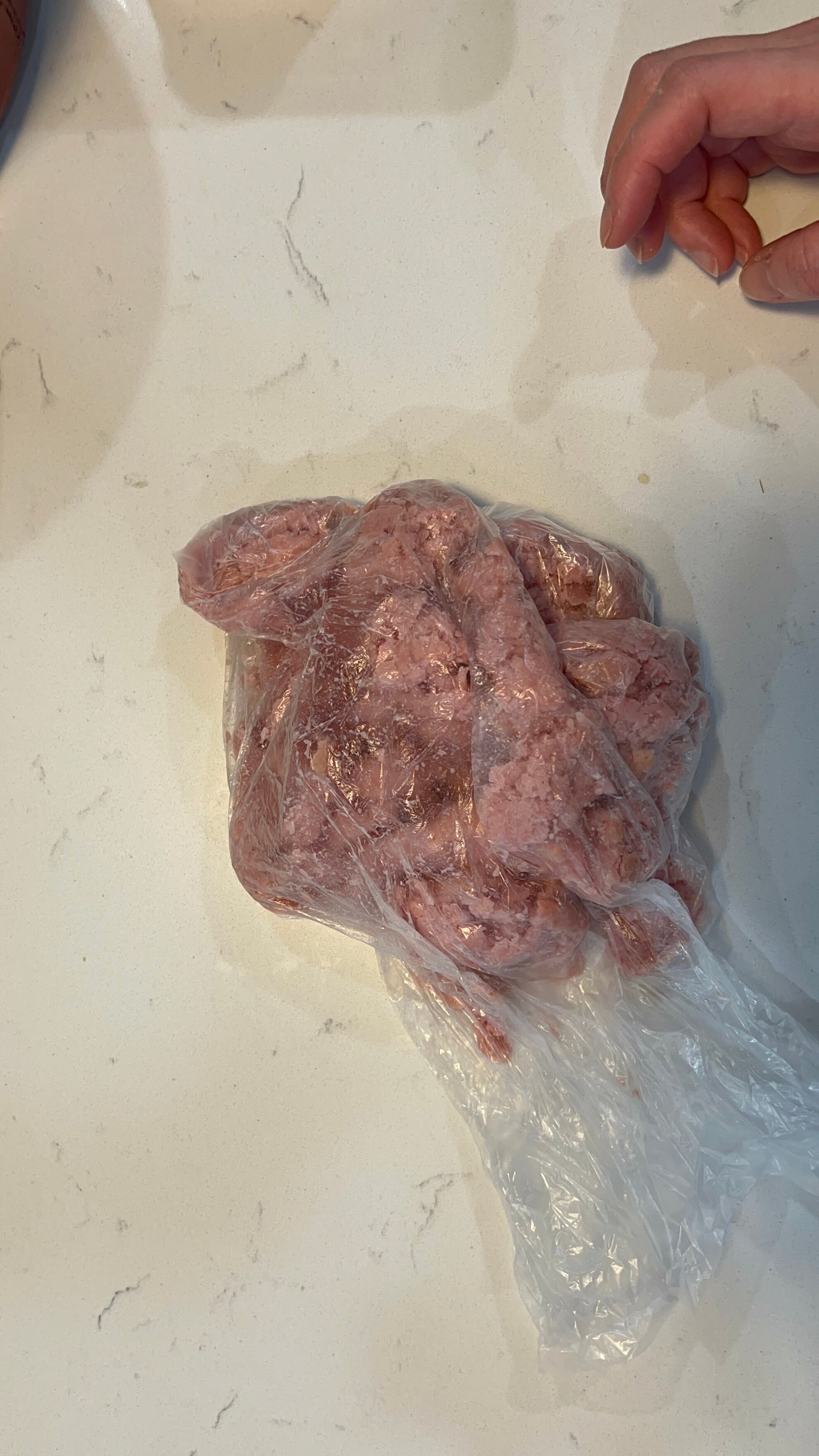 2. 스팸을 준비해서 봉지에 넣어 으깨줍니다.