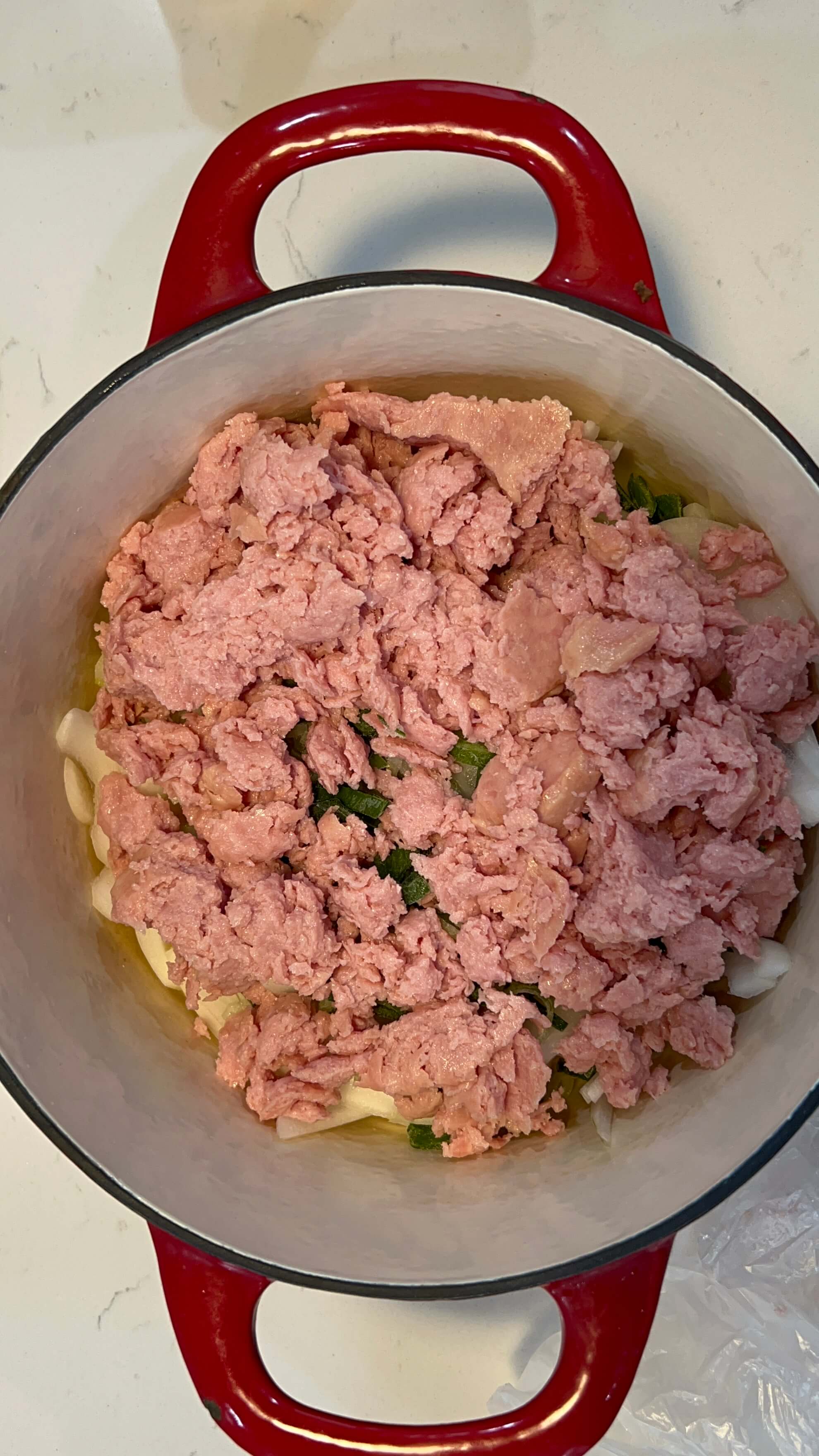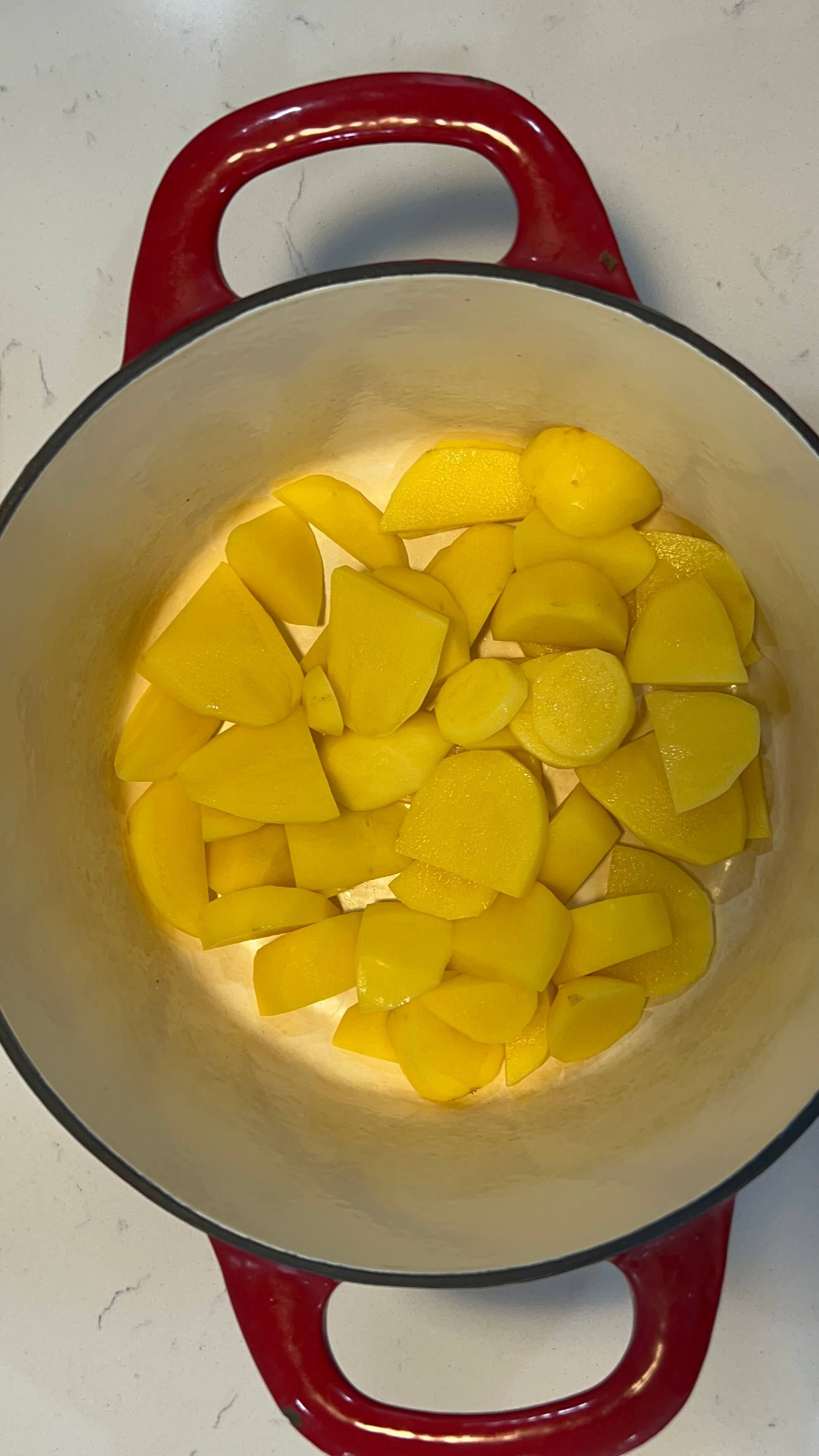 감자가 제일 푹 익어야 하기 때문에 냄비 제일 밑부분에 넣어줍니다~!