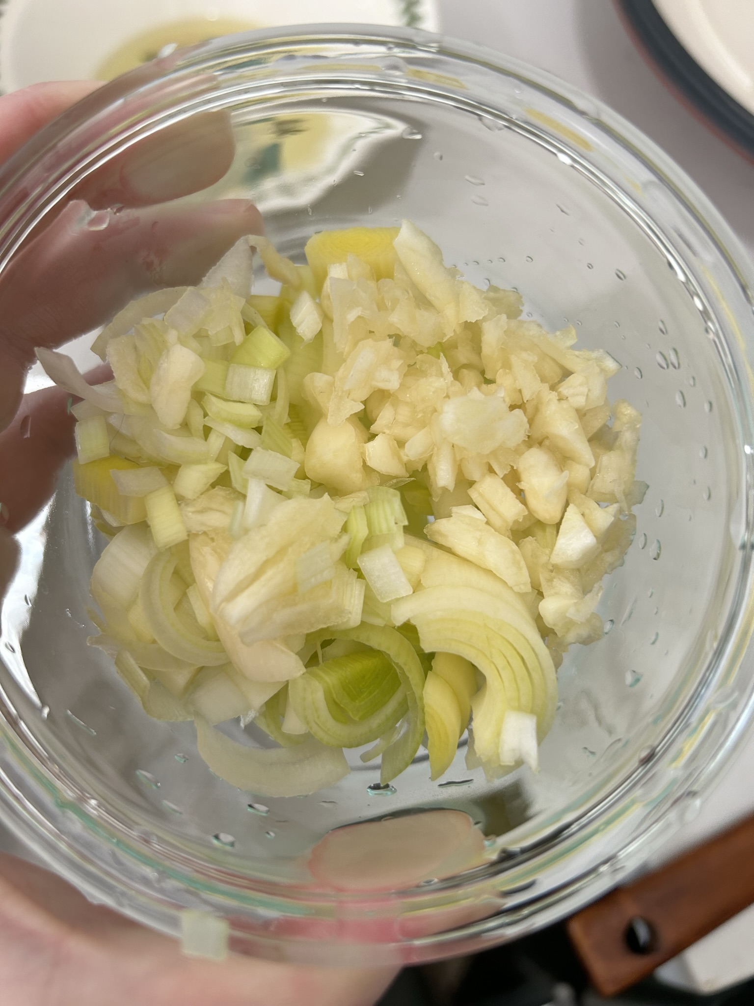 5. 대파 흰부분이랑 마늘을 준비한다.