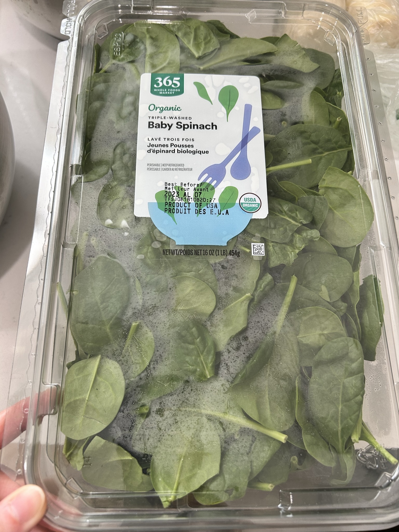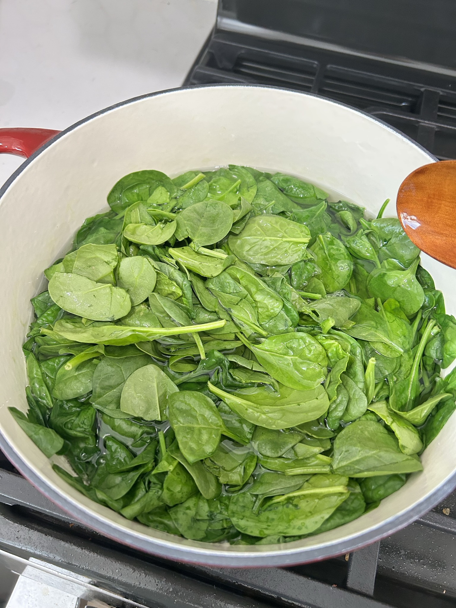 시금치 단이었으면 이렇게 시금치를 짜준뒤에 몇번 칼로 썰어주어야하는데 이 baby spanish는 자를 필요가 없다.