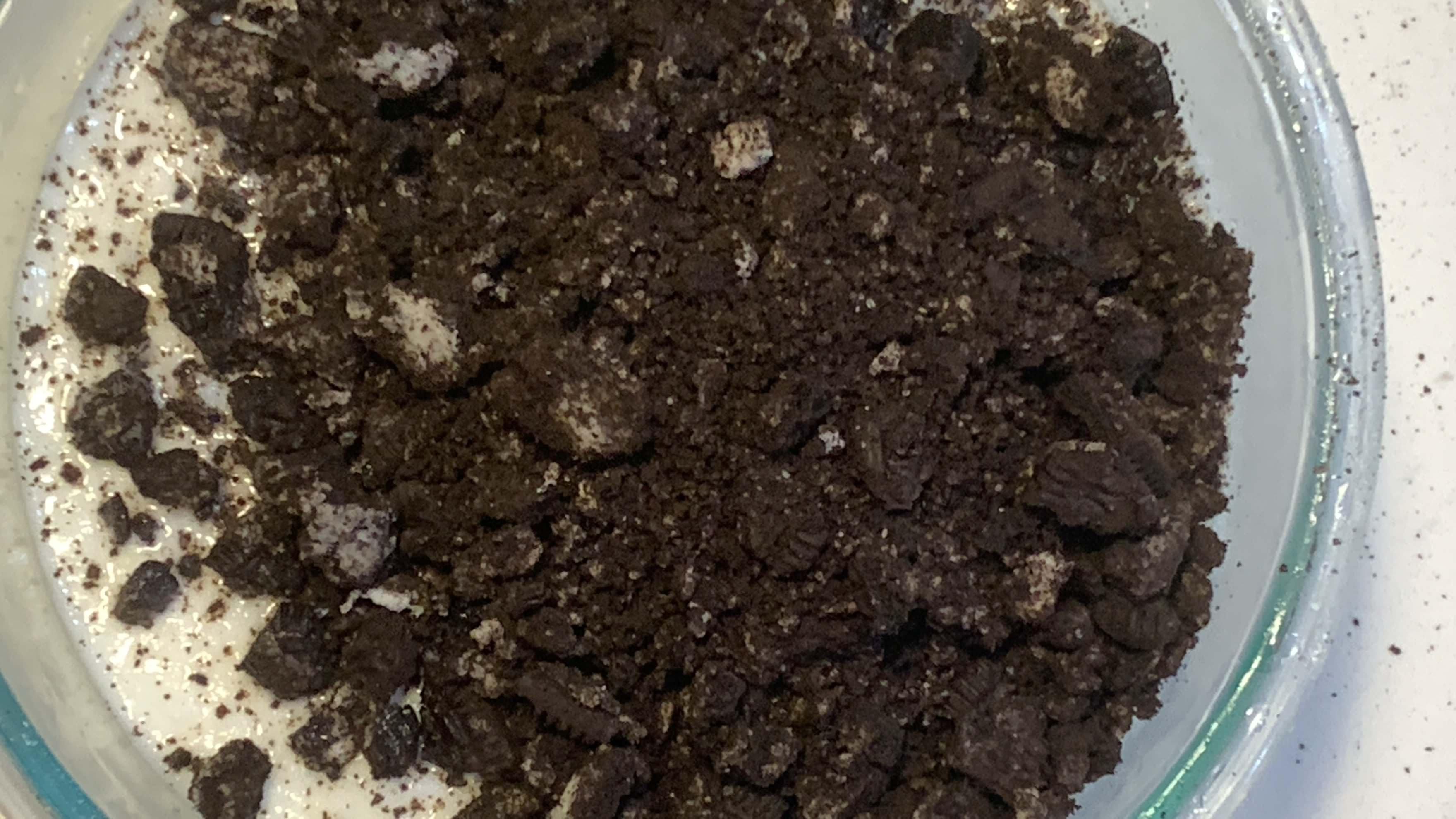 4. 슬러시된 우유에 오레오 가루를 넣어줍니다.