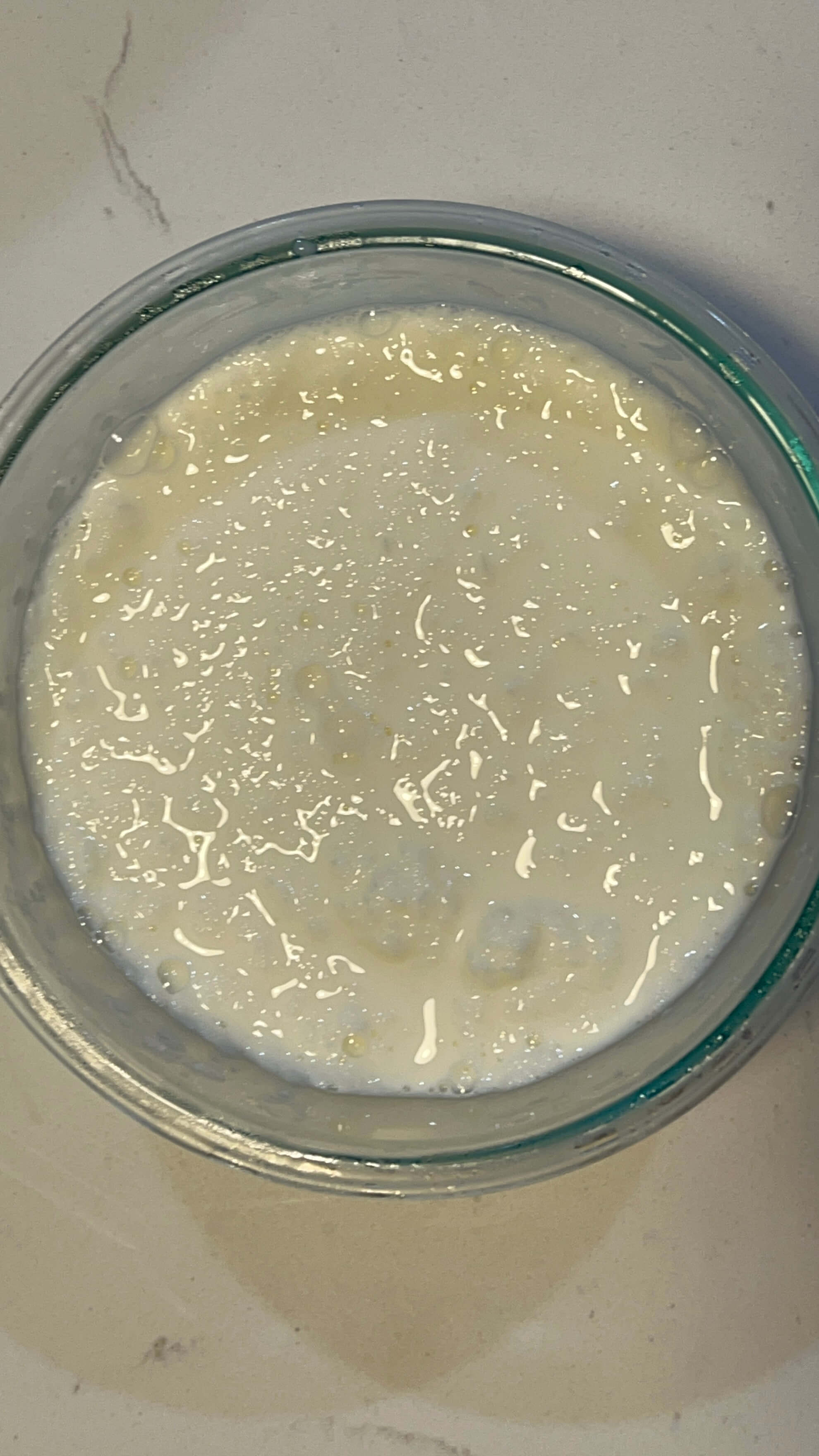 1. 냉동가능 용기에 우유를 부어 냉동실에 얼려줍니다.