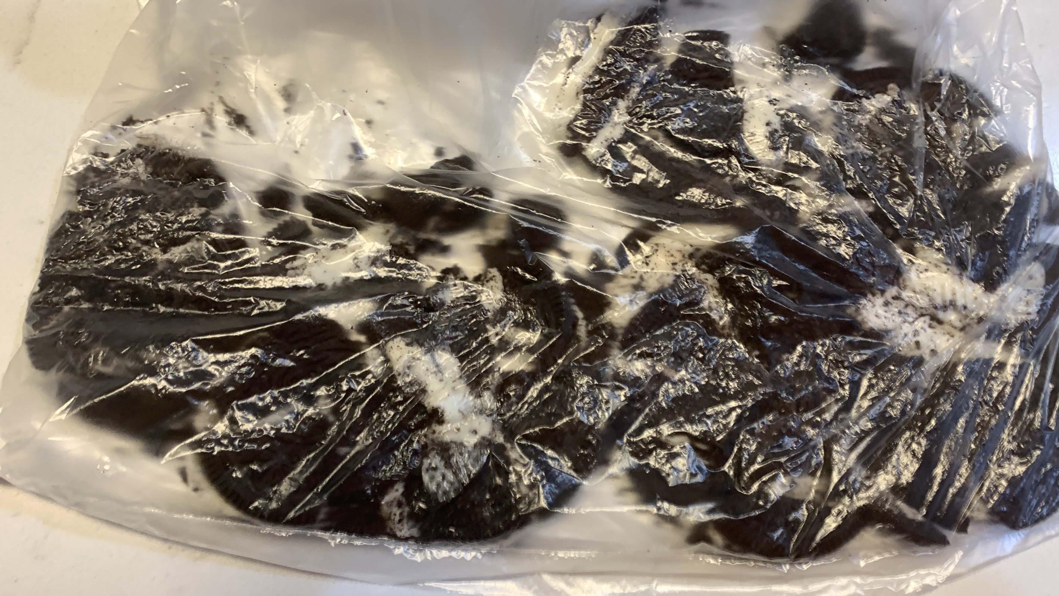 3. 오레오를 봉지에 넣고 마구 뿌셔줍니다.