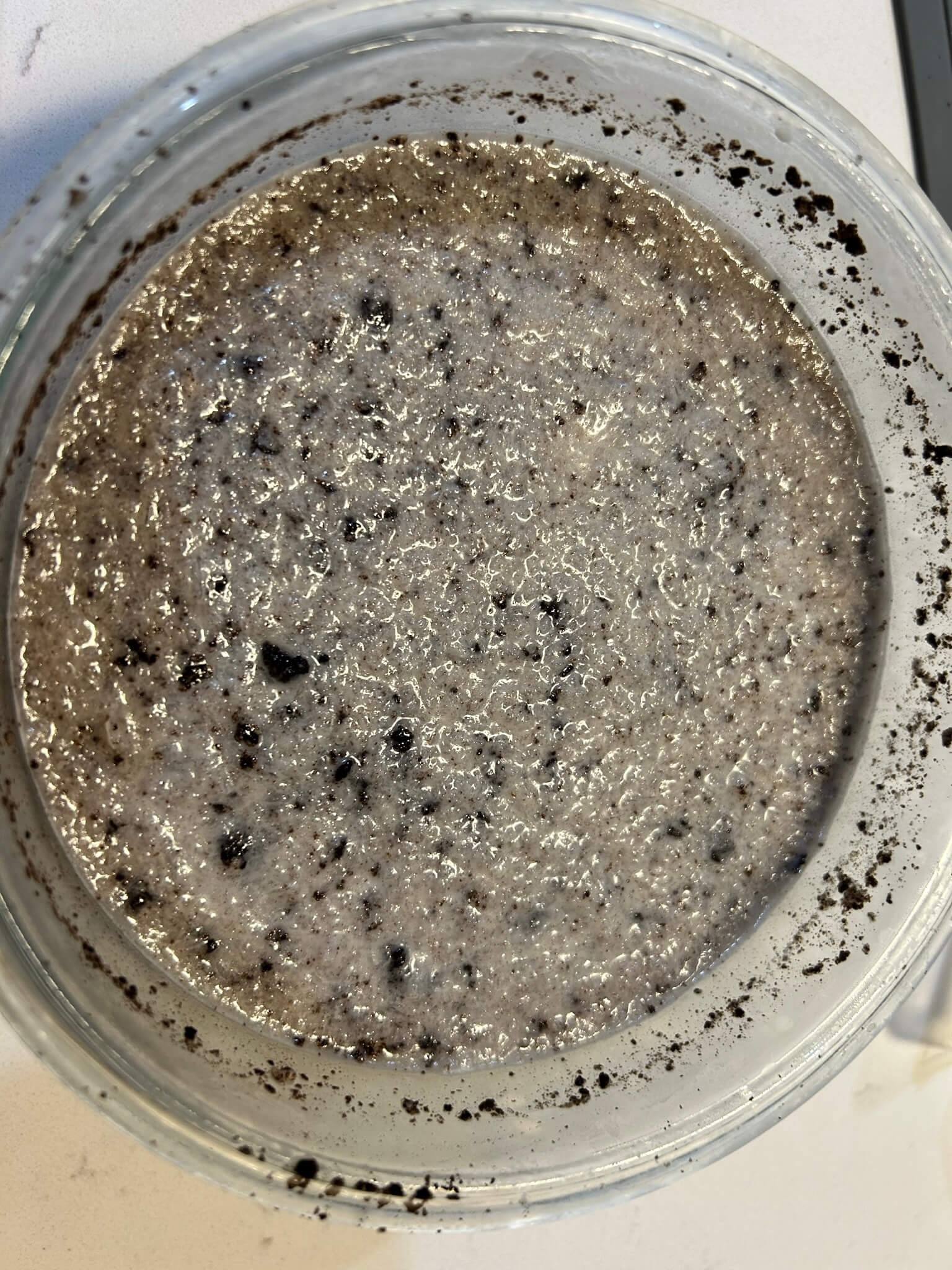 6. 오레오를 섞은 뒤 냉동에 충분히 얼려줍니다.