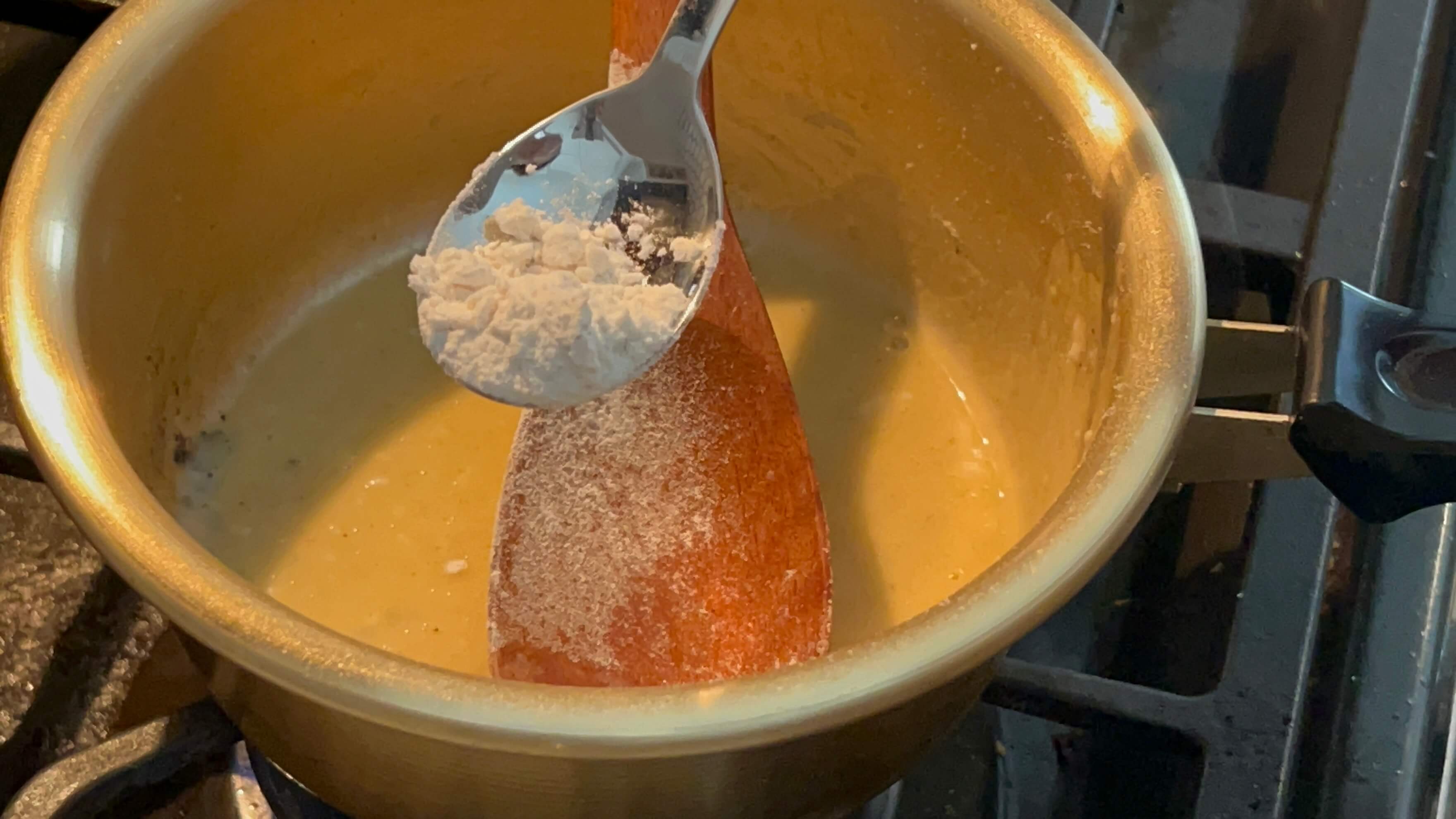 3. 밀가루 한 스푼을 넣어 루를 만들어줍니다.