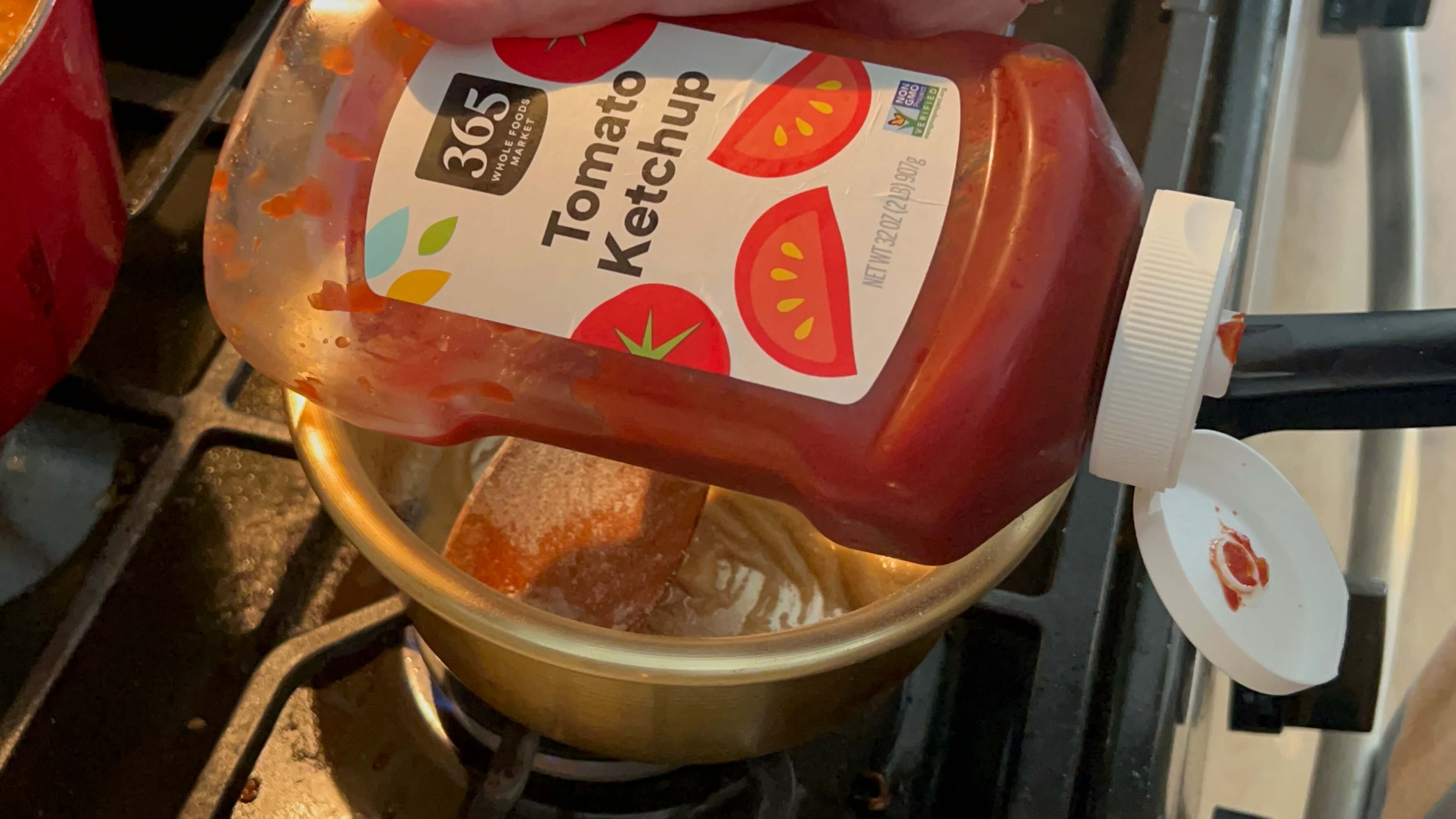 4. 토마토케첩과 스테이스 소스를 넣어줍니다.