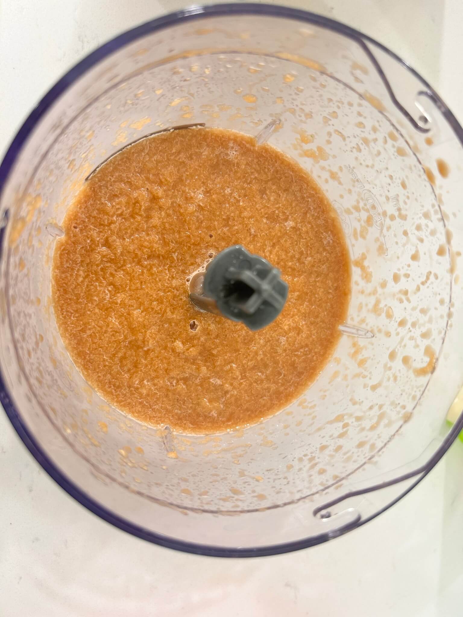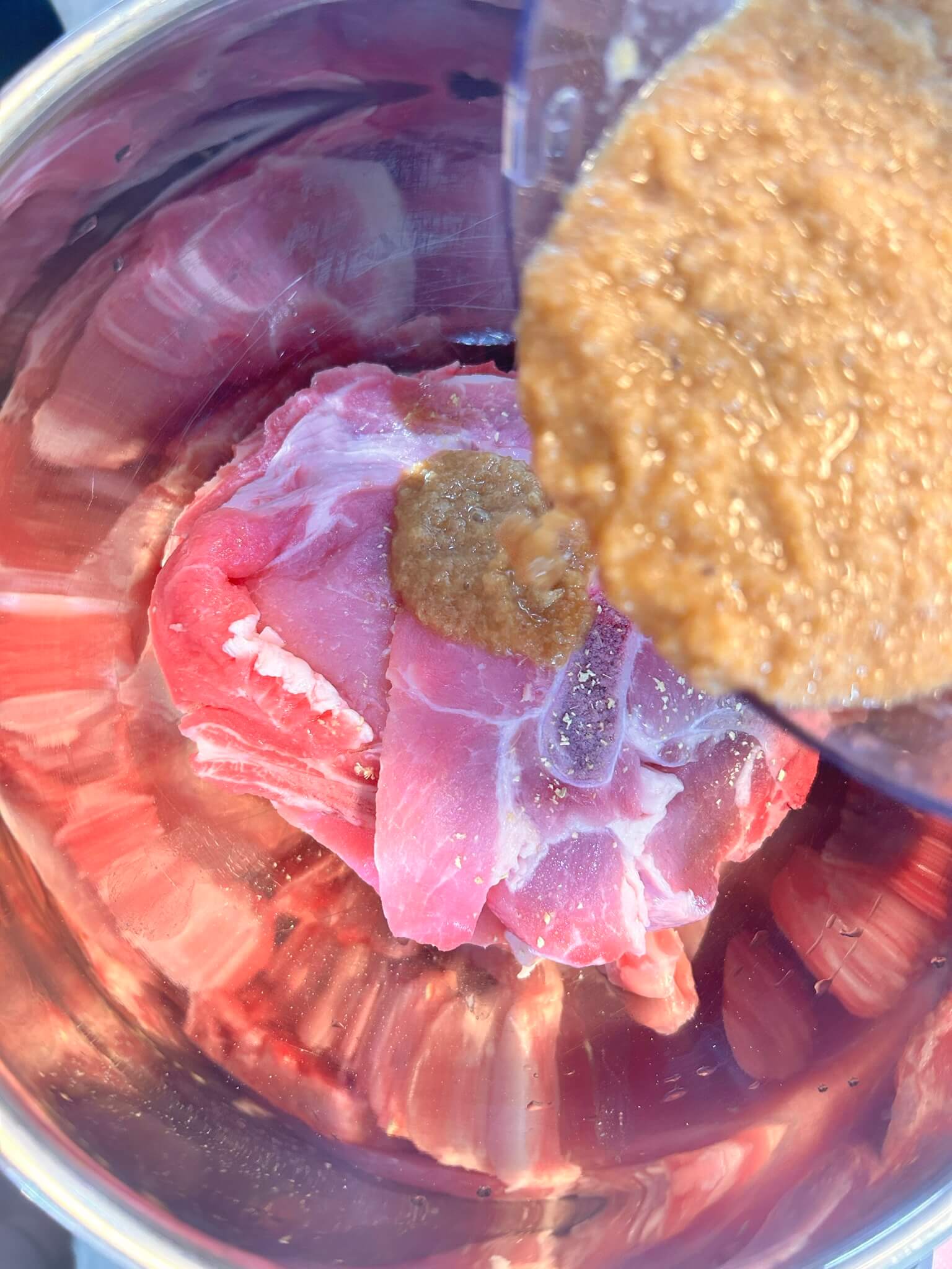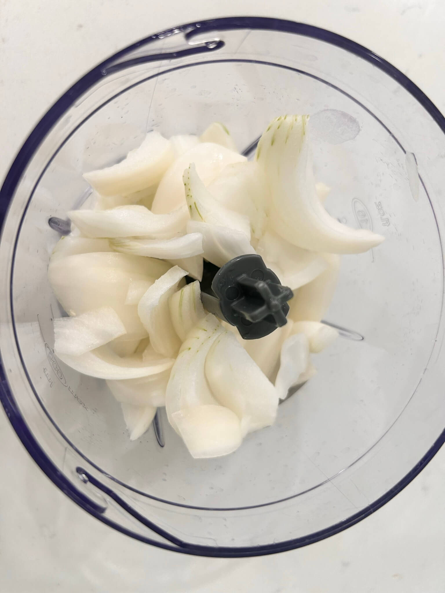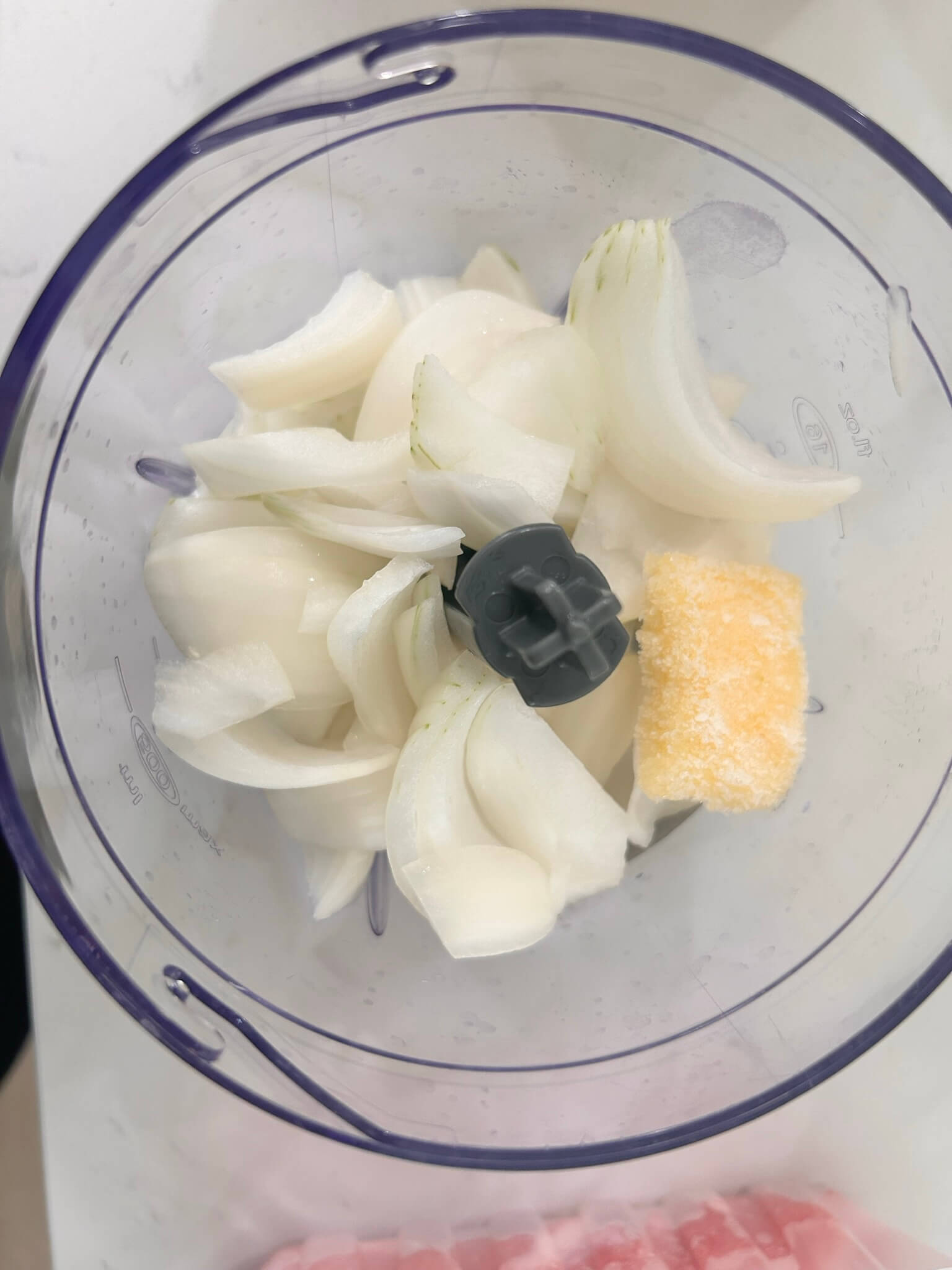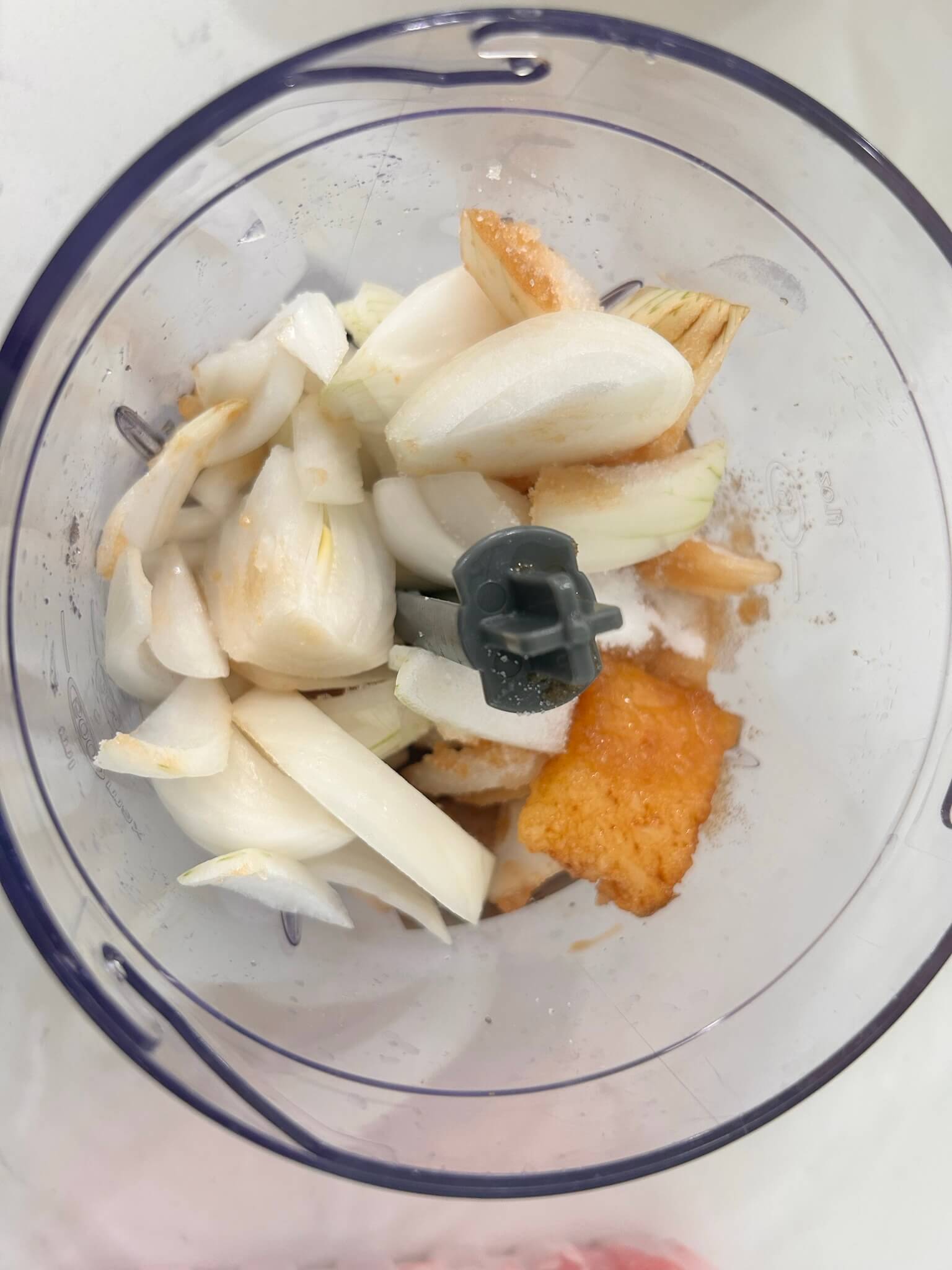 3. 간장 4, 설탕 2, 다진 마늘 1, 간양파, 참기름 1, 후추를 믹서에 같이 넣어줍니다.