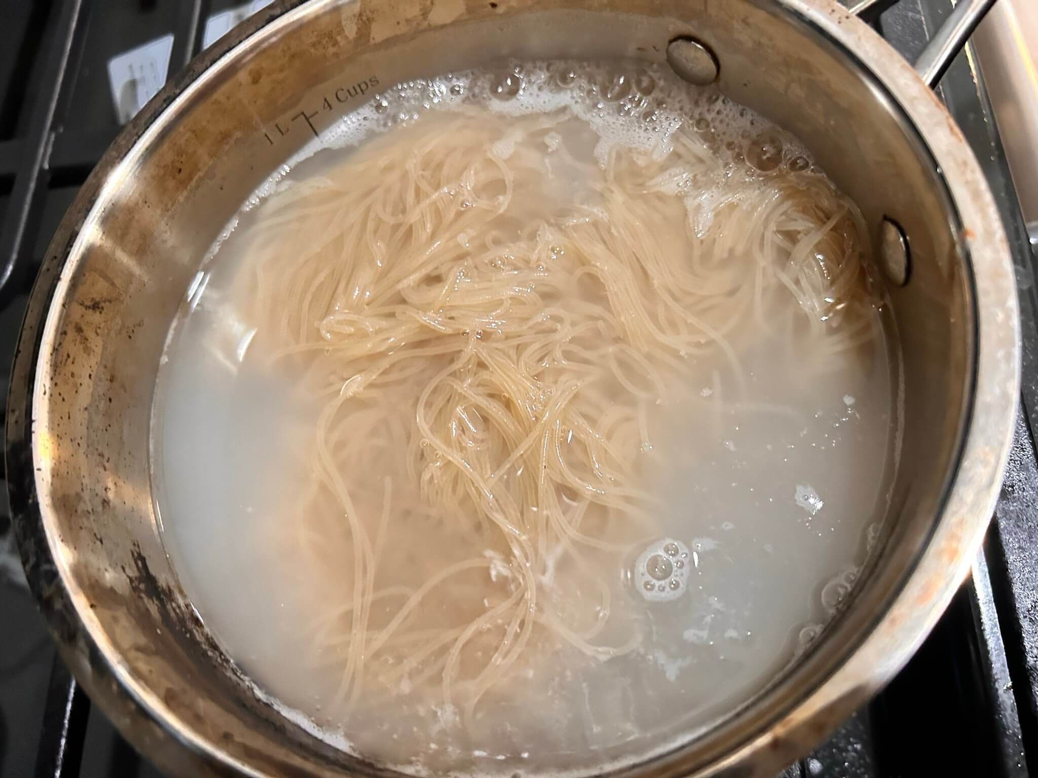 2. 냉면은 끓는 물에 1분 안쪽으로 면이 풀릴 정도만 삶아줍니다.