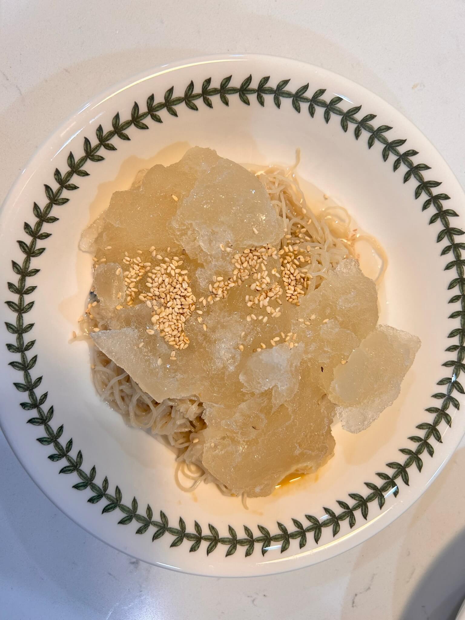 7. 두 냉면에 깨를 살살 뿌려줍니다.