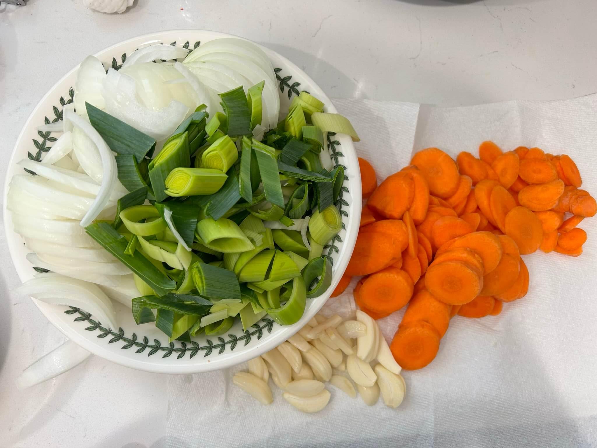 저는 양파, 대파, 당근, 마늘을 준비했습니다.