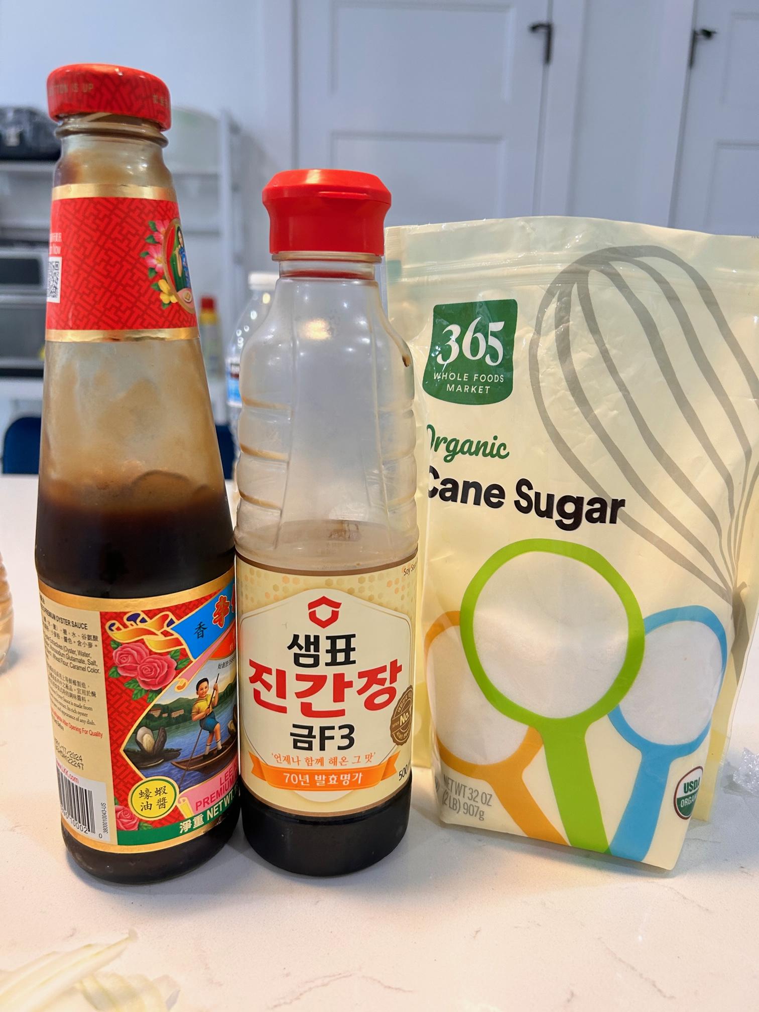 4. 간장1, 굴소스1, 설탕 1을 넣고 한번 더 볶아줍니다.