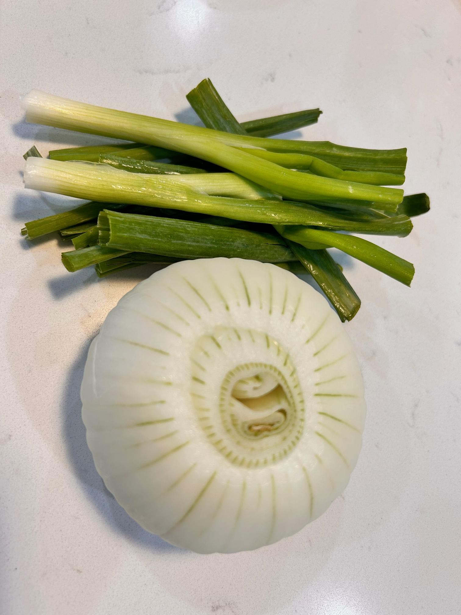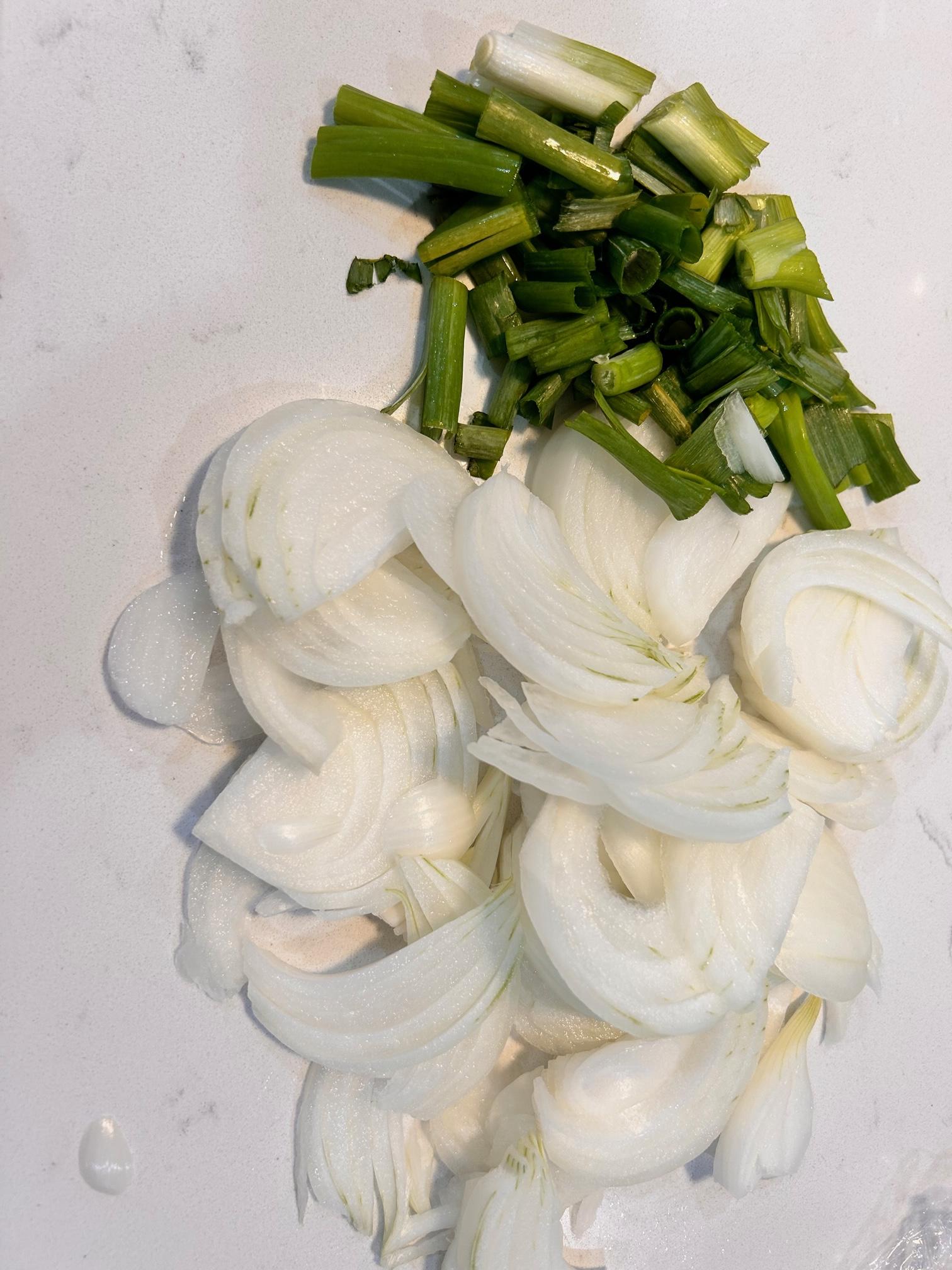 1. 양파와 대파를 적당한 크기로 잘라 준비합니다.