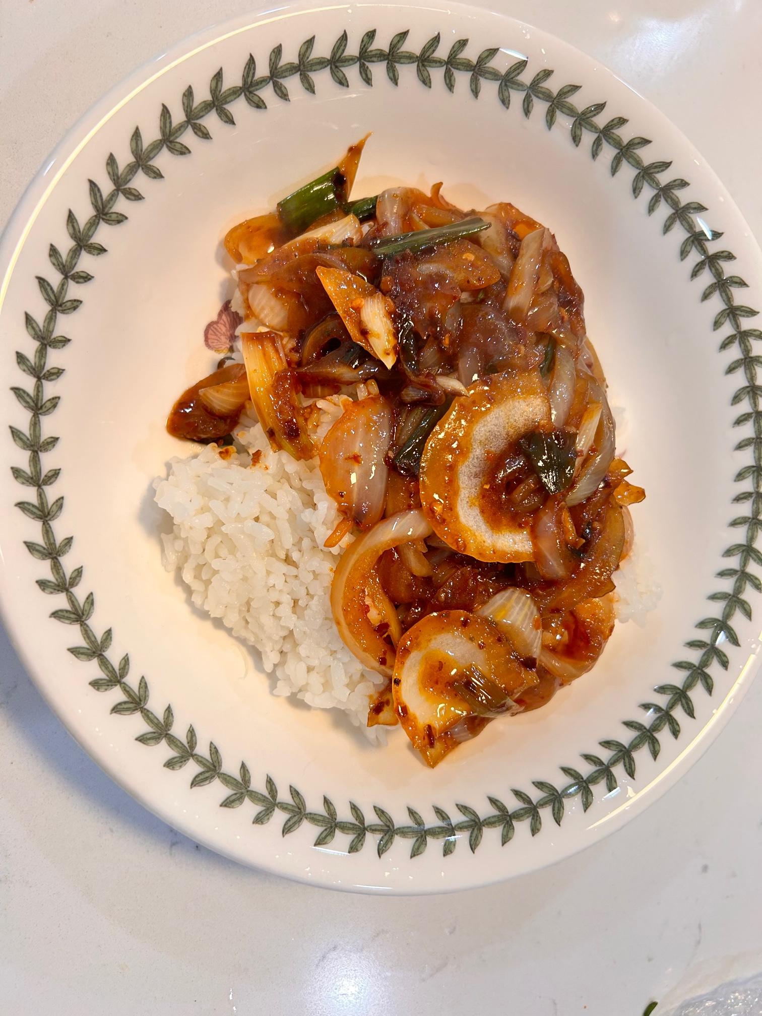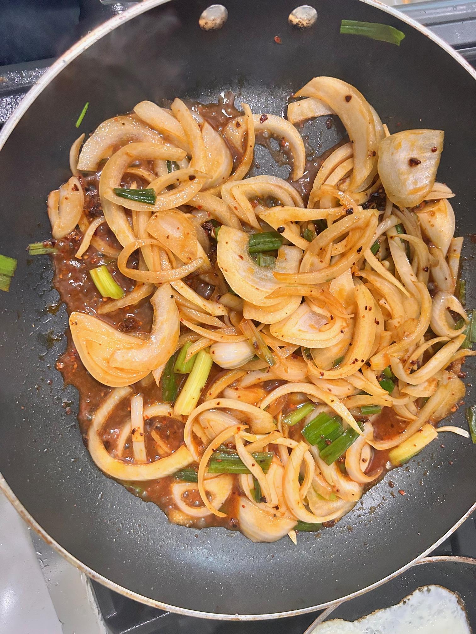 3. 양파와 대파를 넣고 같이 볶아줍니다.