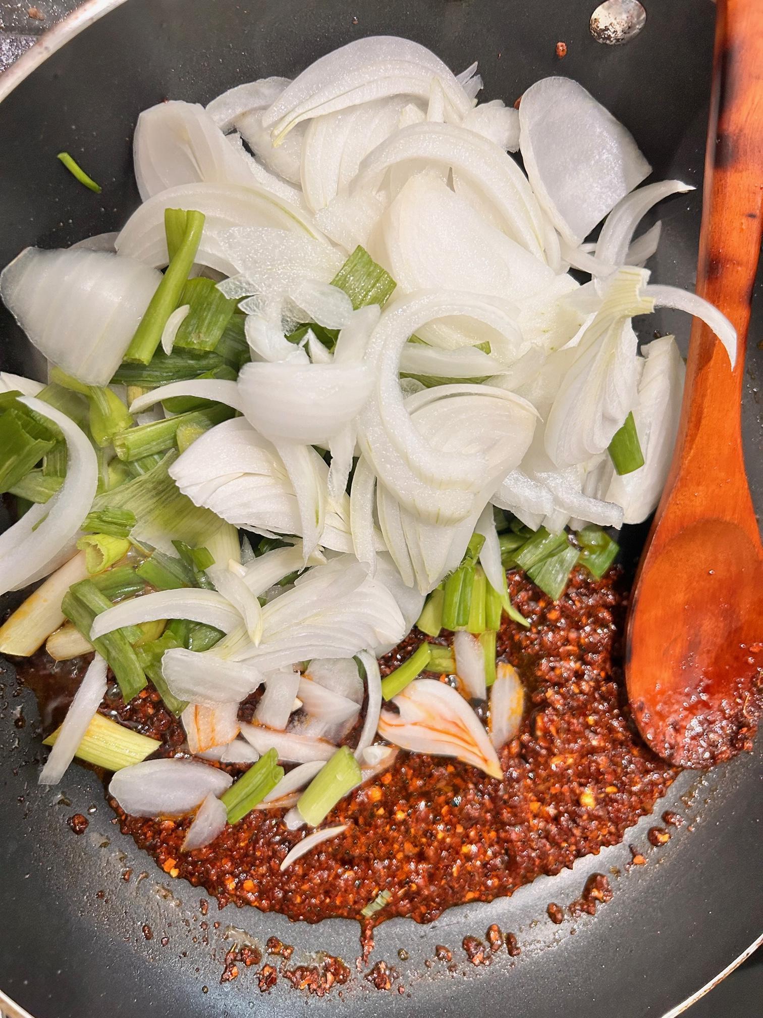 3. 양파와 대파를 넣고 같이 볶아줍니다.