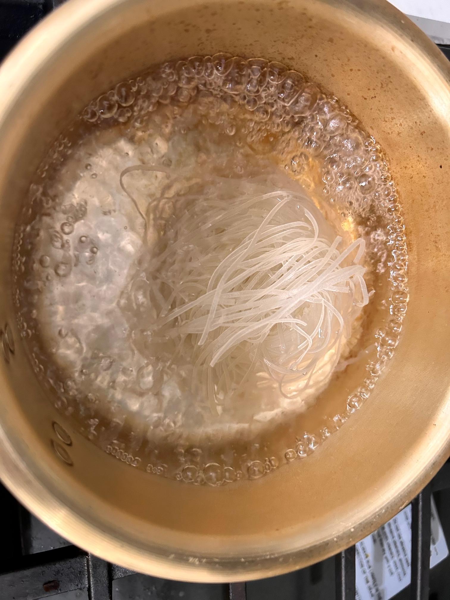 저는 쌀국수 얇은 면을 삶아서 준비했습니다. 어떤 면을 해도 맛있겠지만, 면이 얇을수록 소스가 잘 베기 때문에 더 맛있는 것 같습니다.