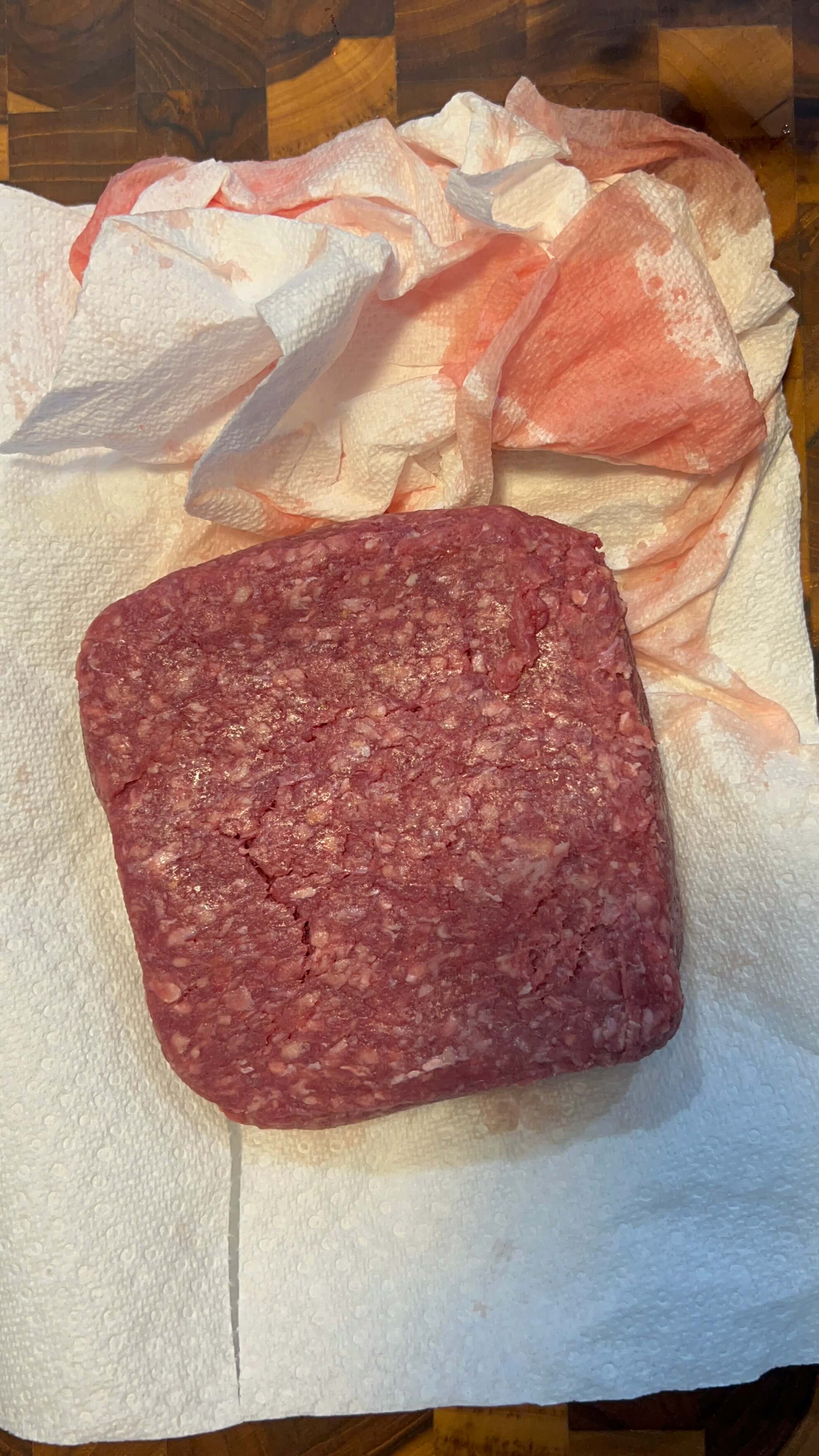3. 다진 고기는 키친타월에 핏기를 살짝 제거하고 냄비에 넣어줍니다.