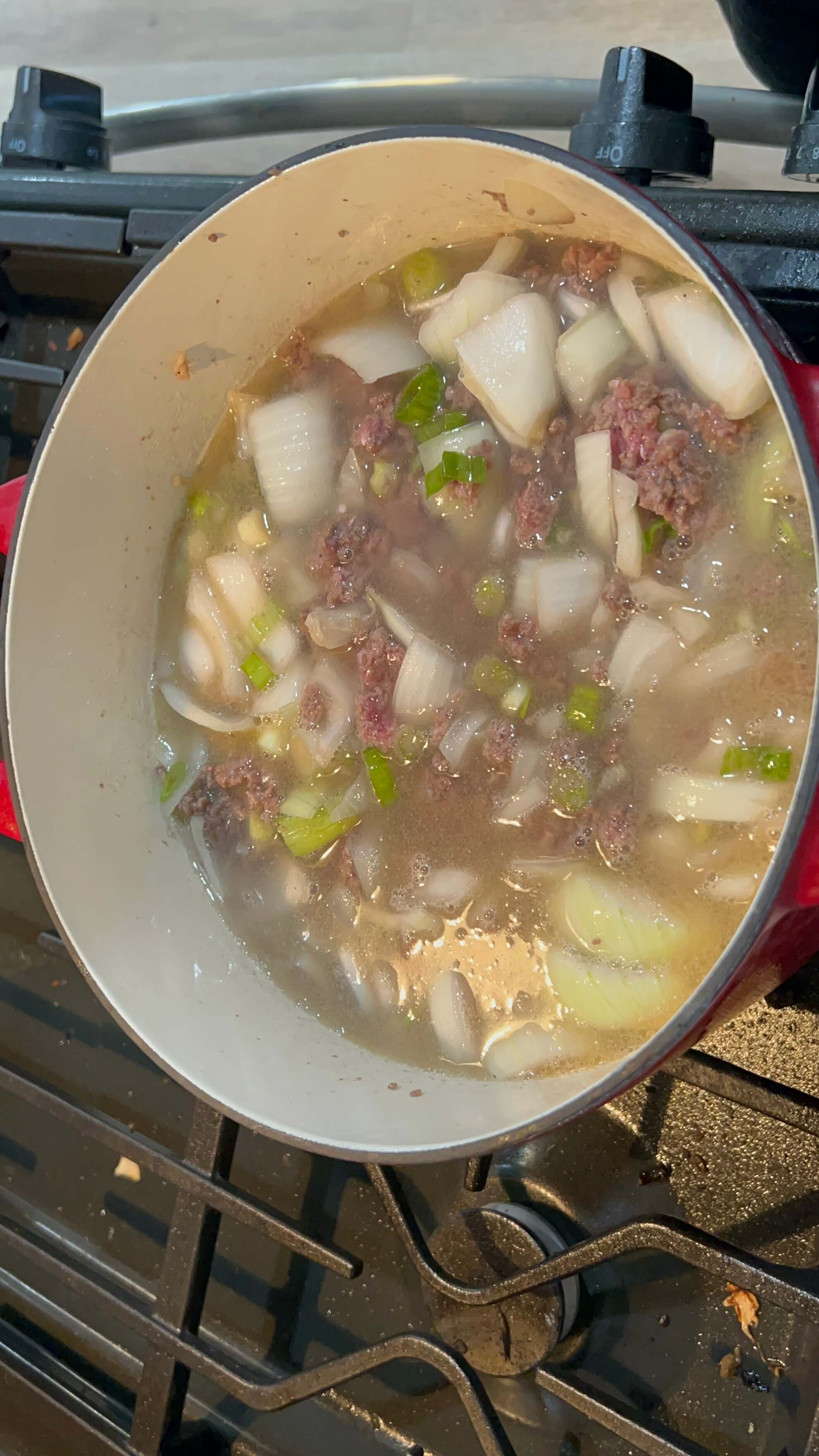 6. 고기가 거의 익었을 때쯤, 물을 부어 잘 익혀줍니다.