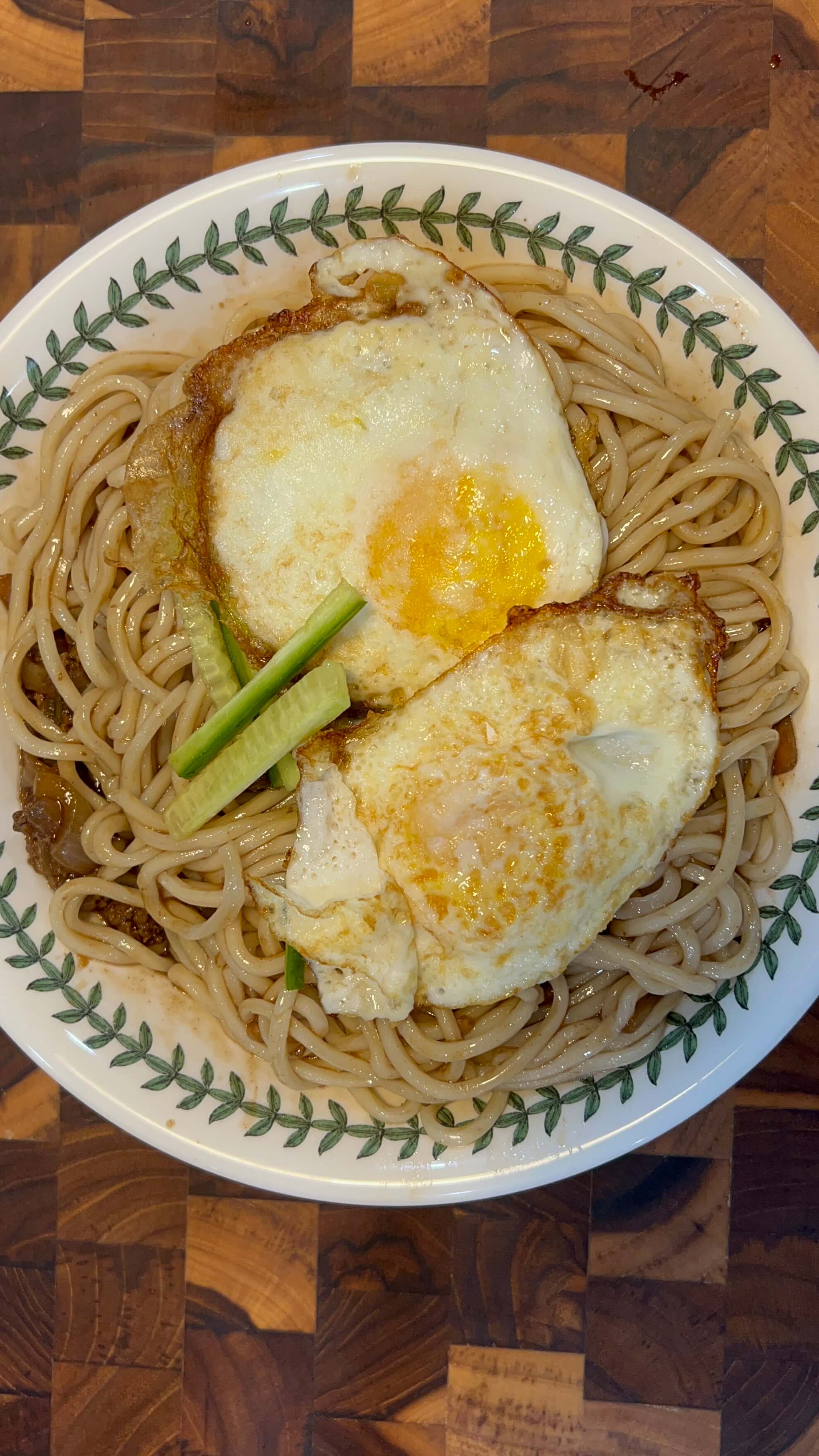 12. 준비된 면 위에 소스를 부어주고 계란프라이와 오이를 올려주면 완벽한 짜장면입니다~!!!
