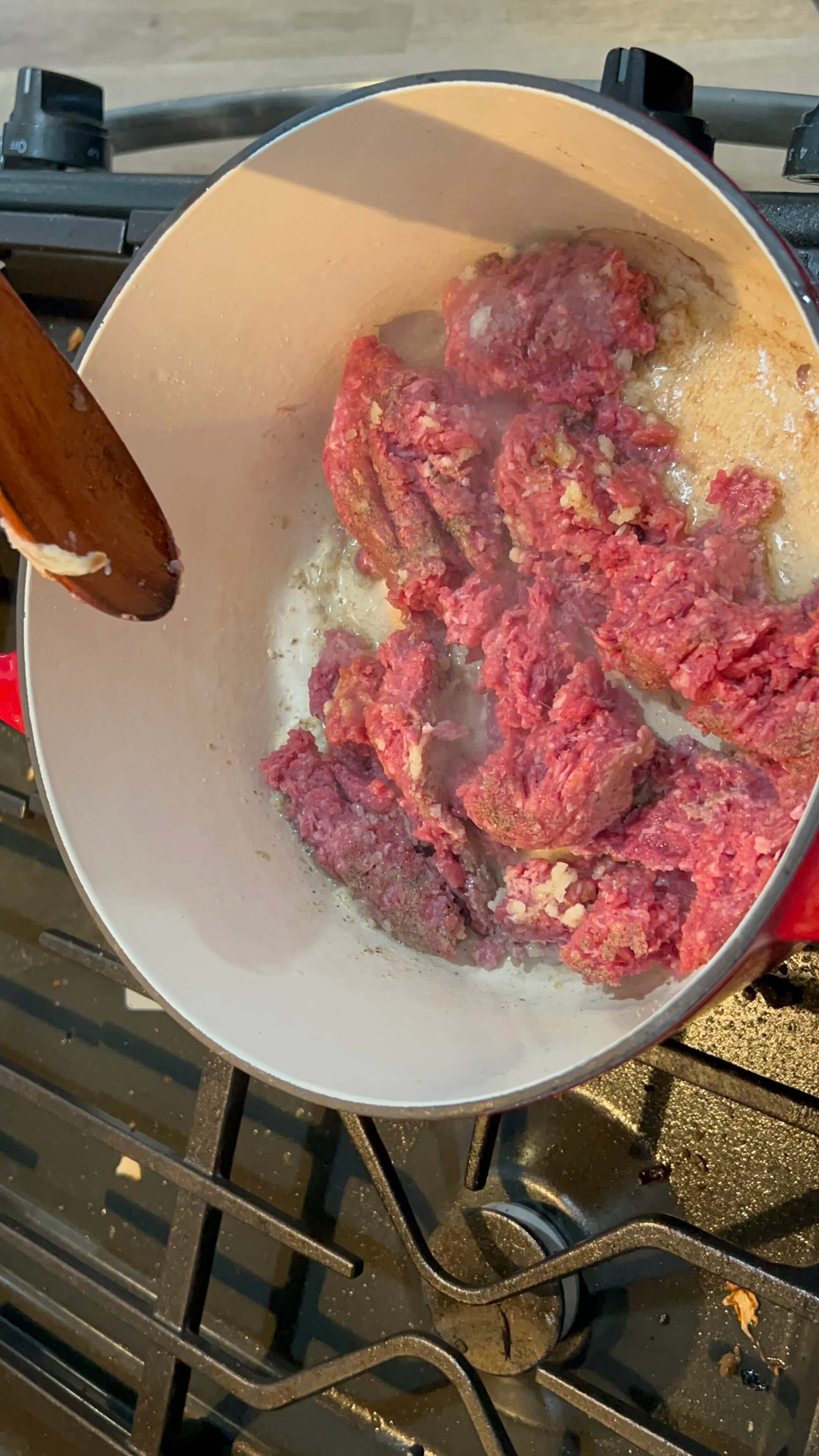 3. 다진 고기는 키친타월에 핏기를 살짝 제거하고 냄비에 넣어줍니다.