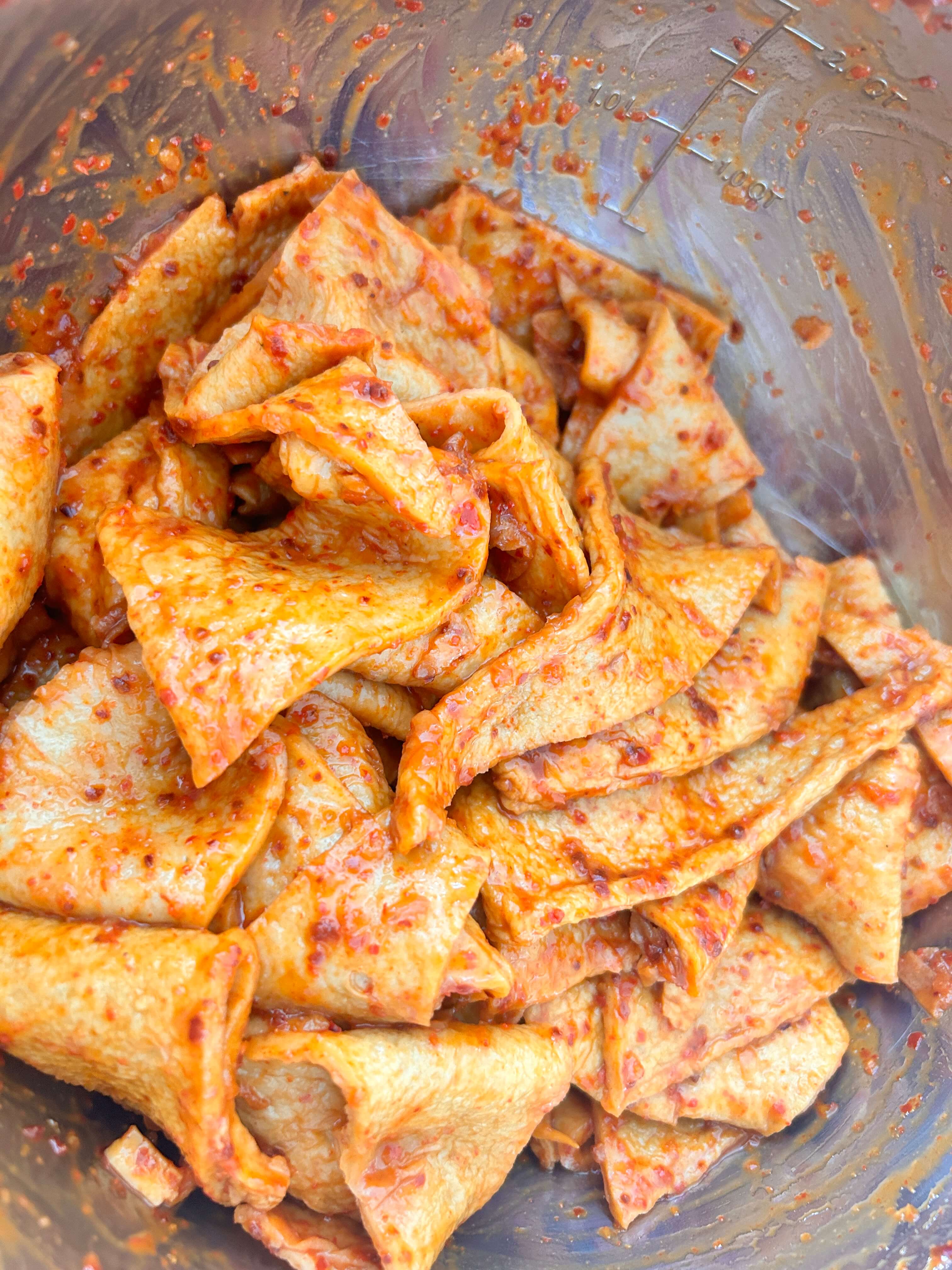 6. 어묵과 오징어채 (진미채)를 양념에 잘 버무려 줍니다.