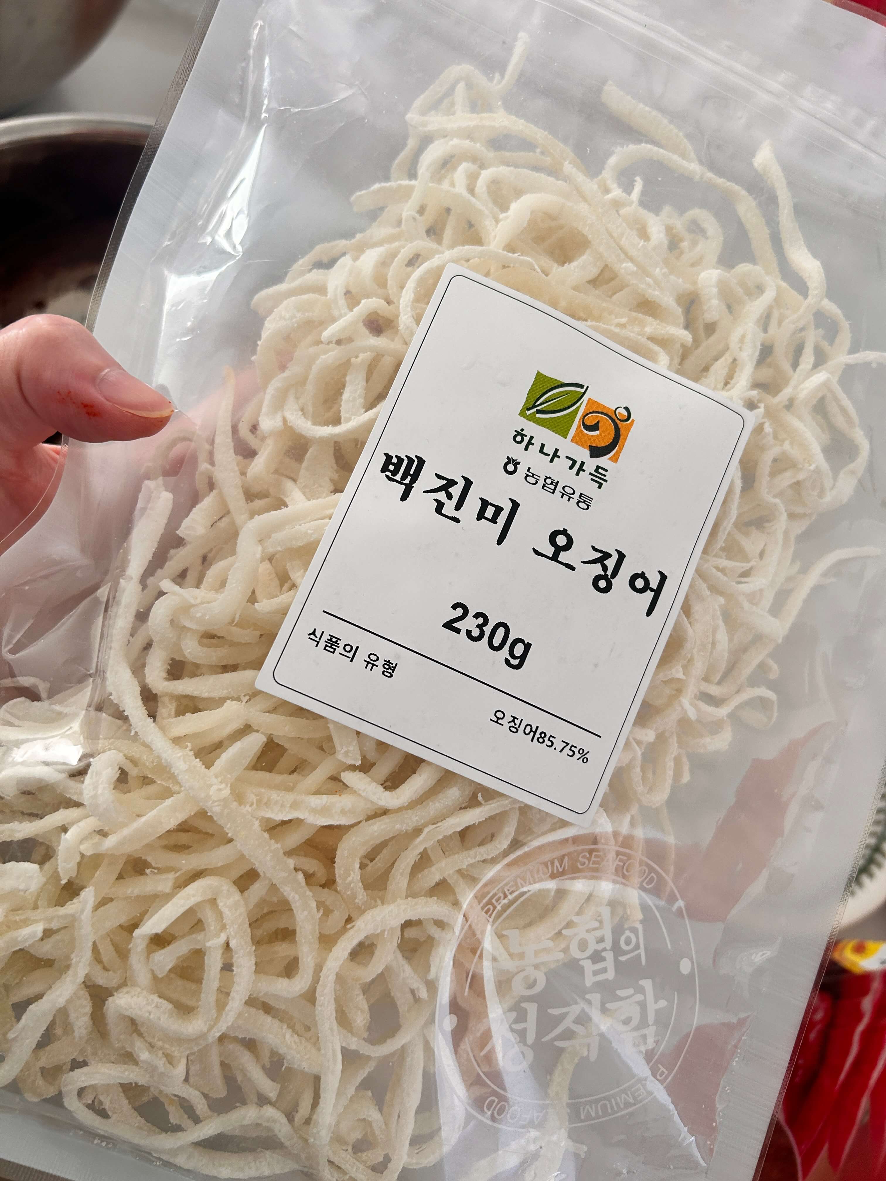 오징어로 무치기엔 좀 더 손이 가기도 하고, 오징어를 쉽게 못 사는 탓에 오징어 채로 대신했습니다.