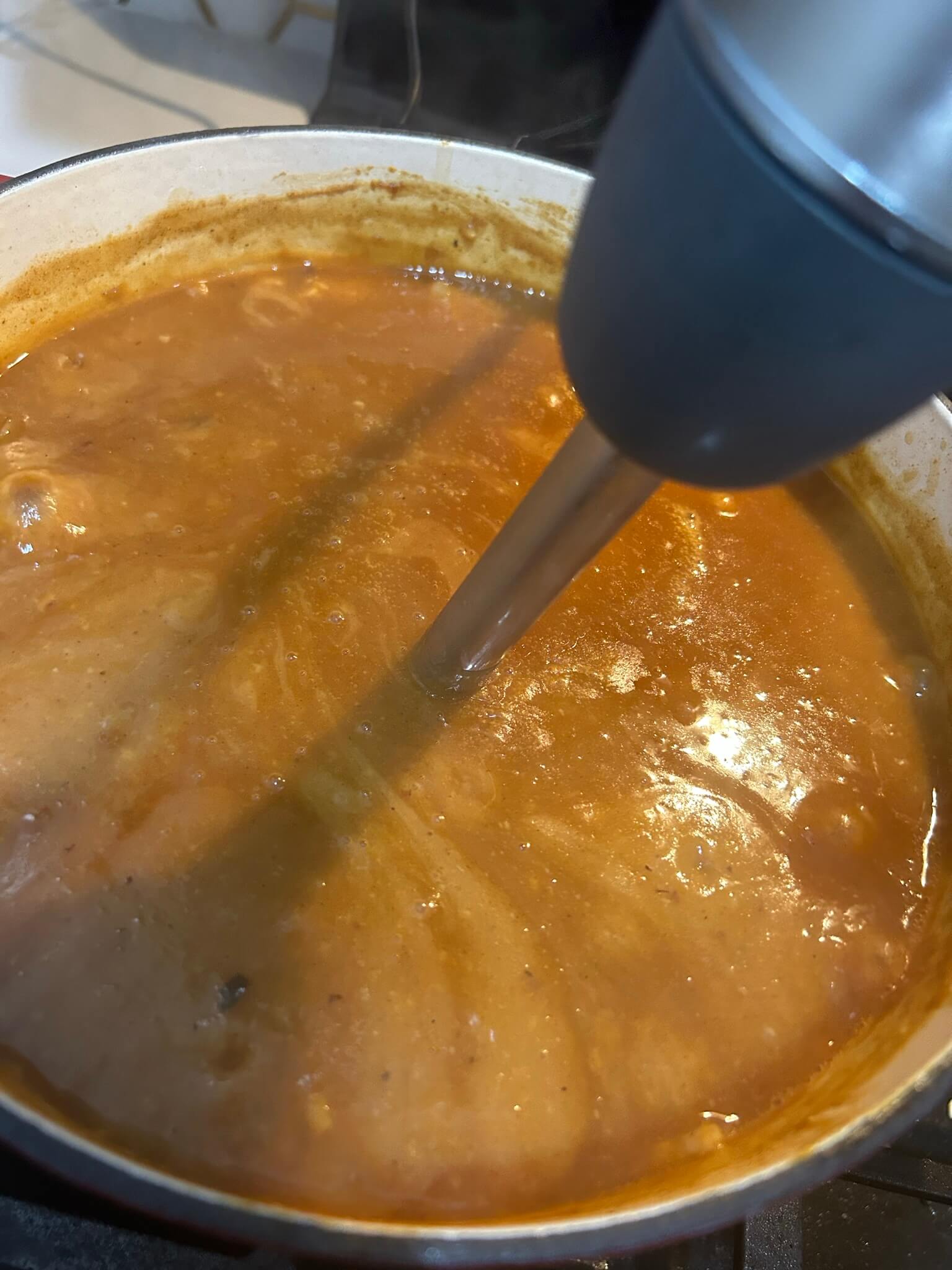 12. 카레가 충분히 끓여졌을 때, 믹서기를 이용해서 갈아주시면 됩니다.